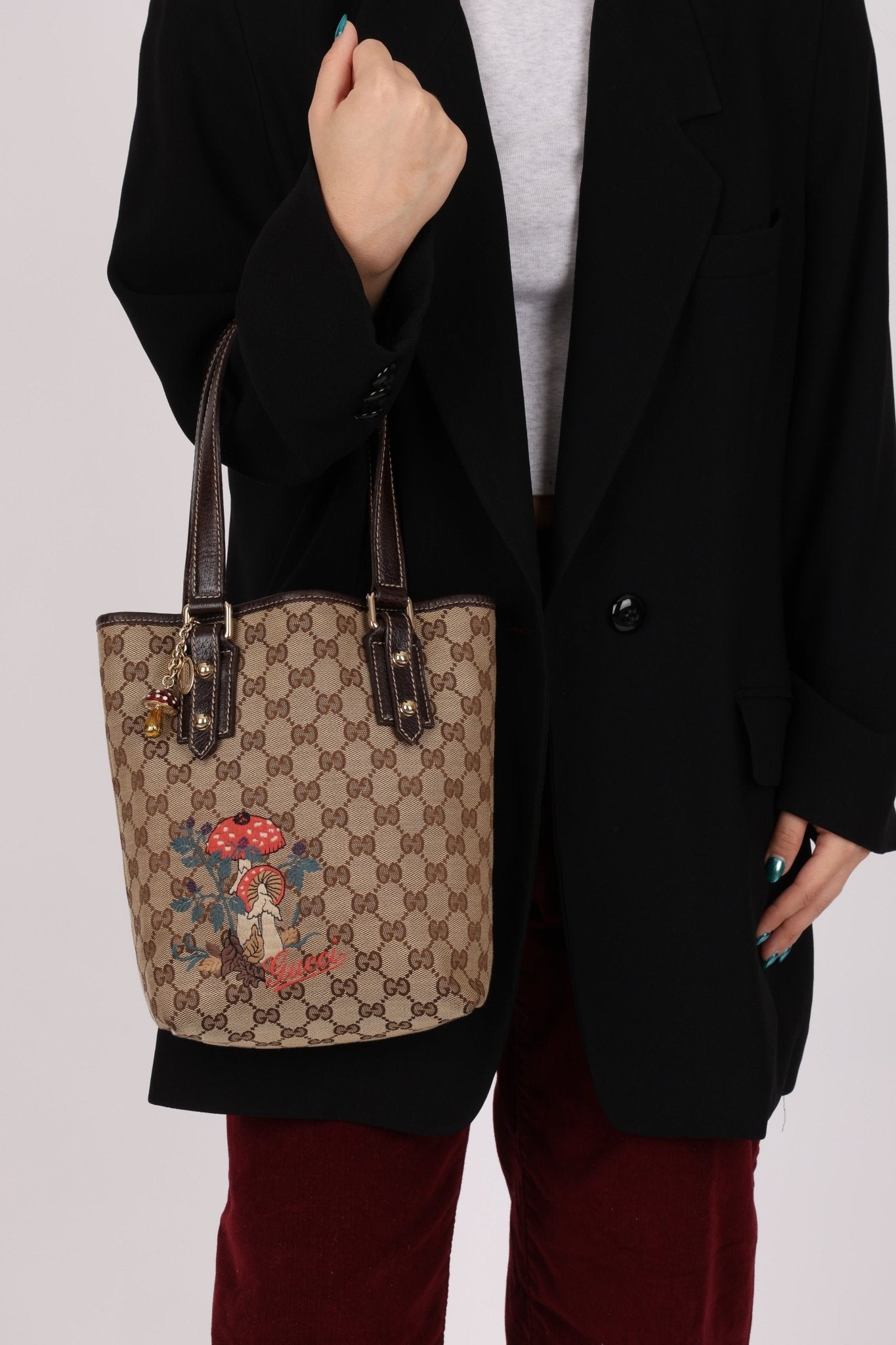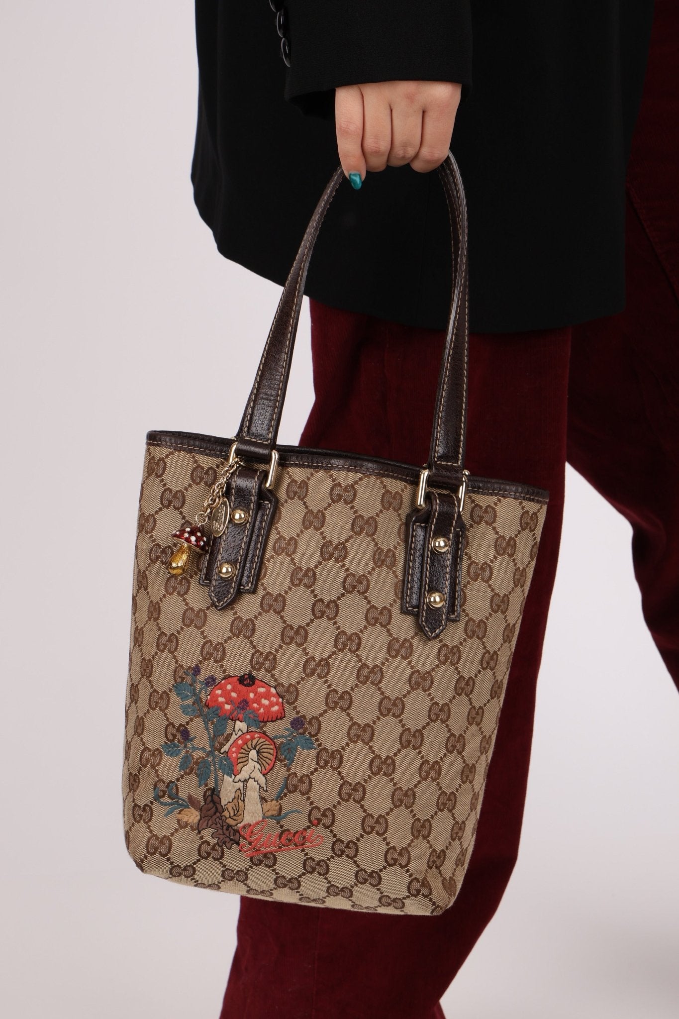 Gucci Monogram Canvas Mushroom Embroidered Tote - FashioNica