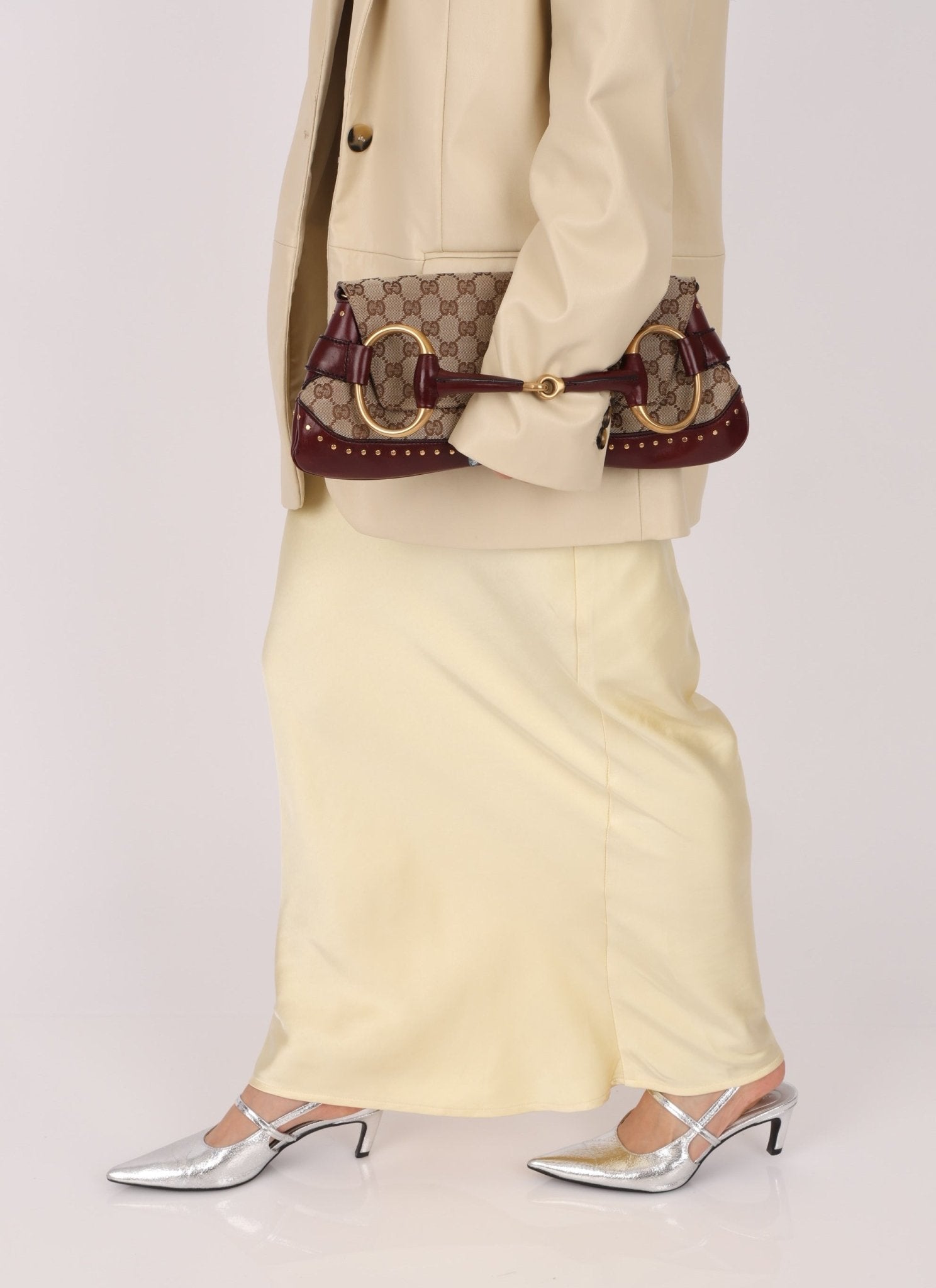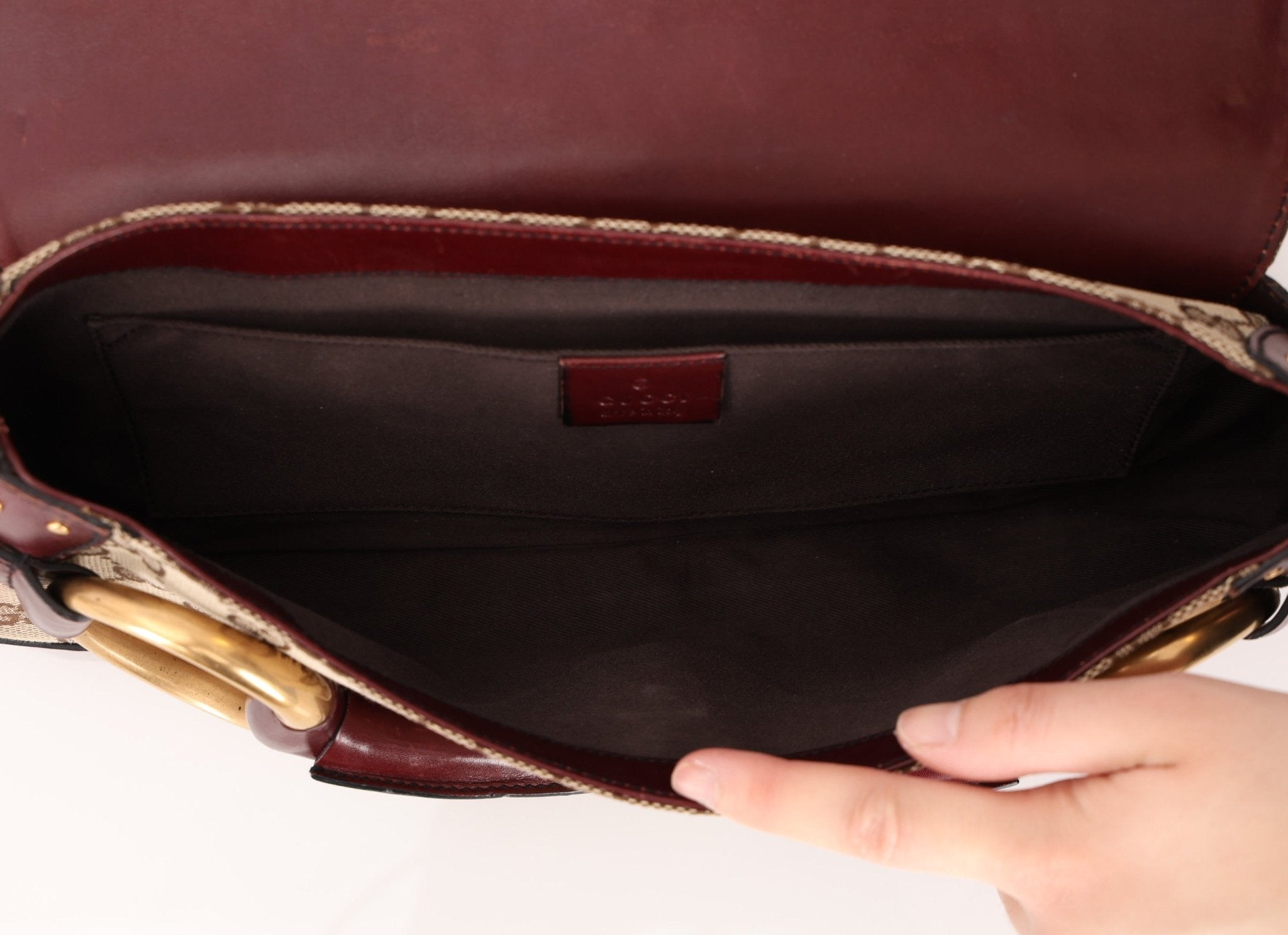 Gucci Monogram Bordeaux Horsebit Pochette - FashioNica