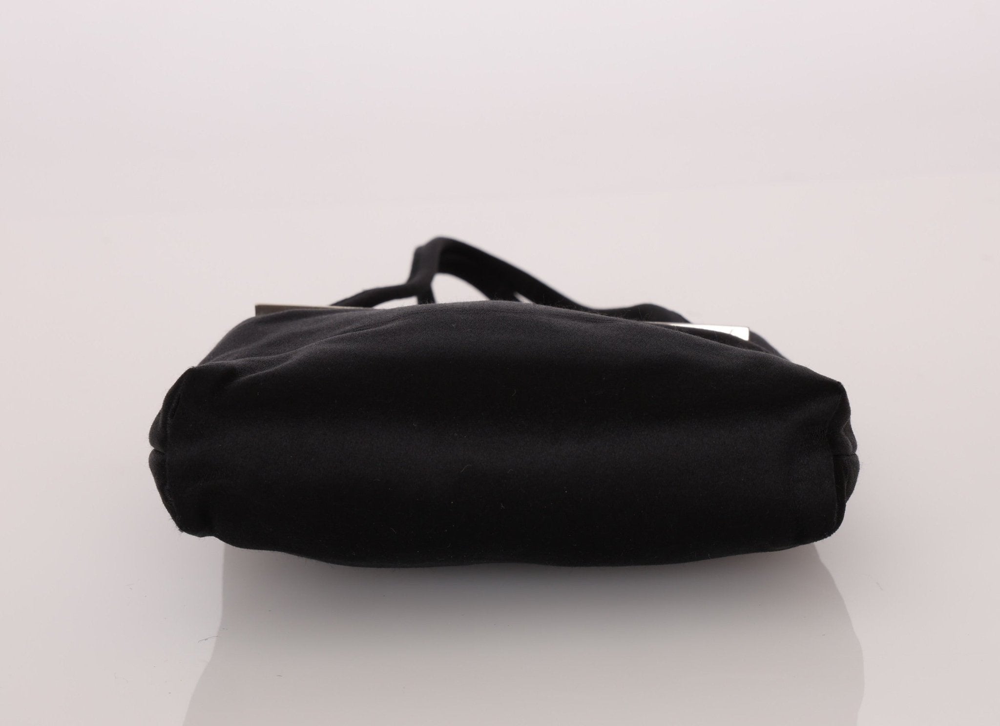 This rare dainty evening bag of black satin and luminescent pearl titles is a great compliment to any formal attire!