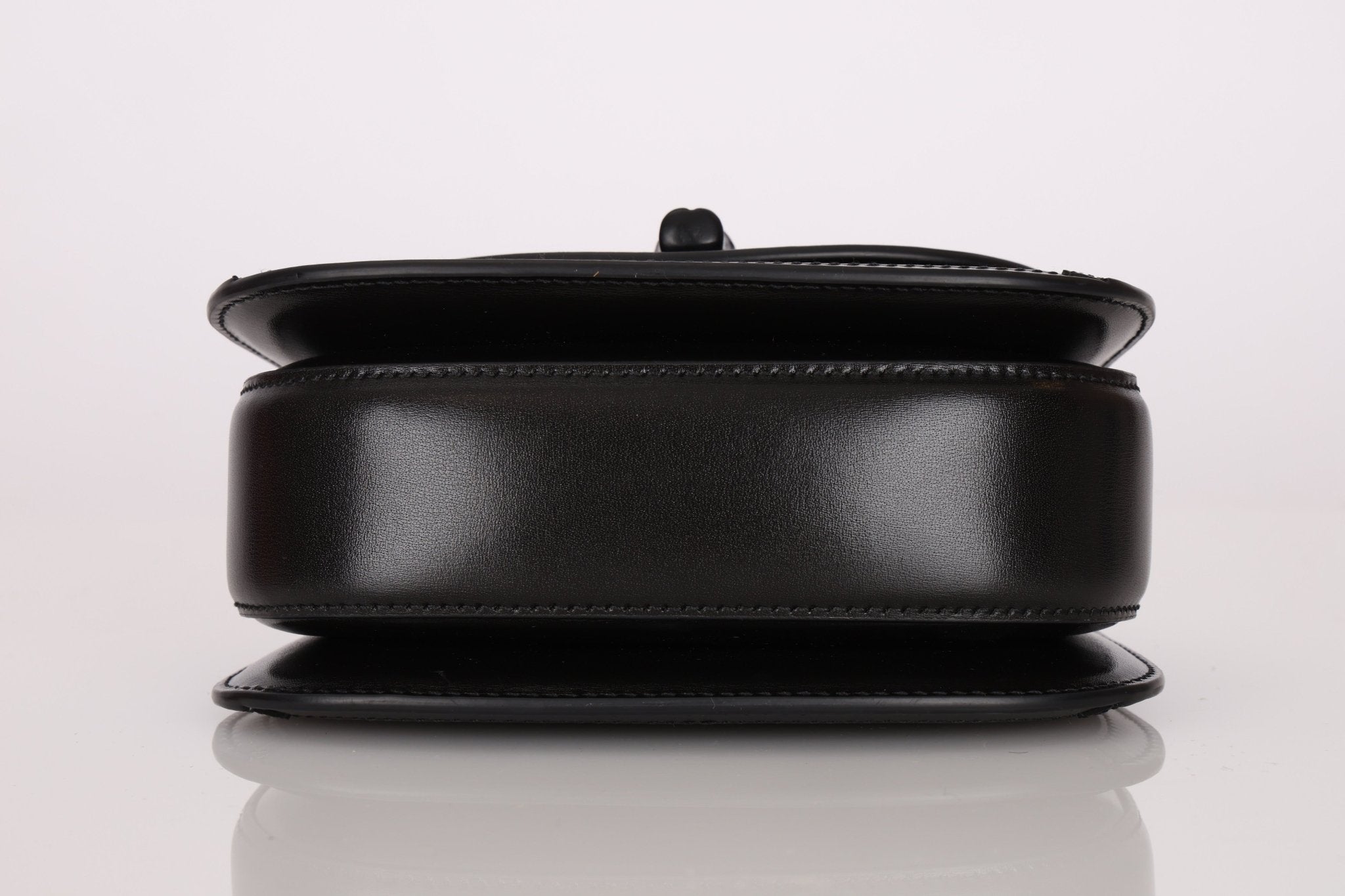 Gucci gives its iconic 1947 Mini Bag a makeover with sleek all-black bamboo and a crystal-studded monogram that shimmers in the light. A stealthy stunner, this rare edition redefines the classic silhouette with a modern, high-glam twist..