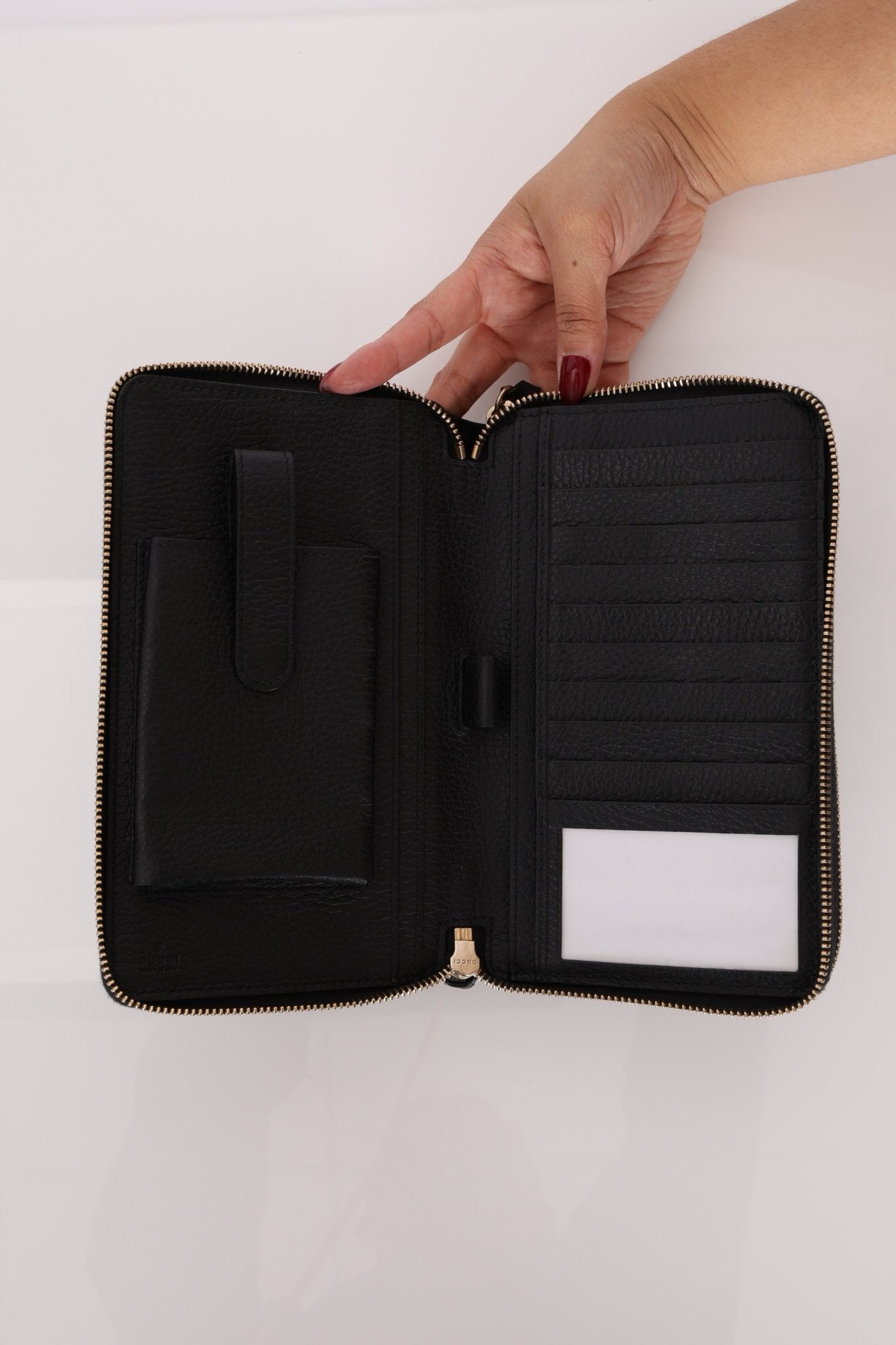 This Gucci Swing travel organizer is a great piece to stay on top of your travel itineraries in style! Made of two zipper compartments, you can conveniently carry all your important travel necessities with its included top handle strap.