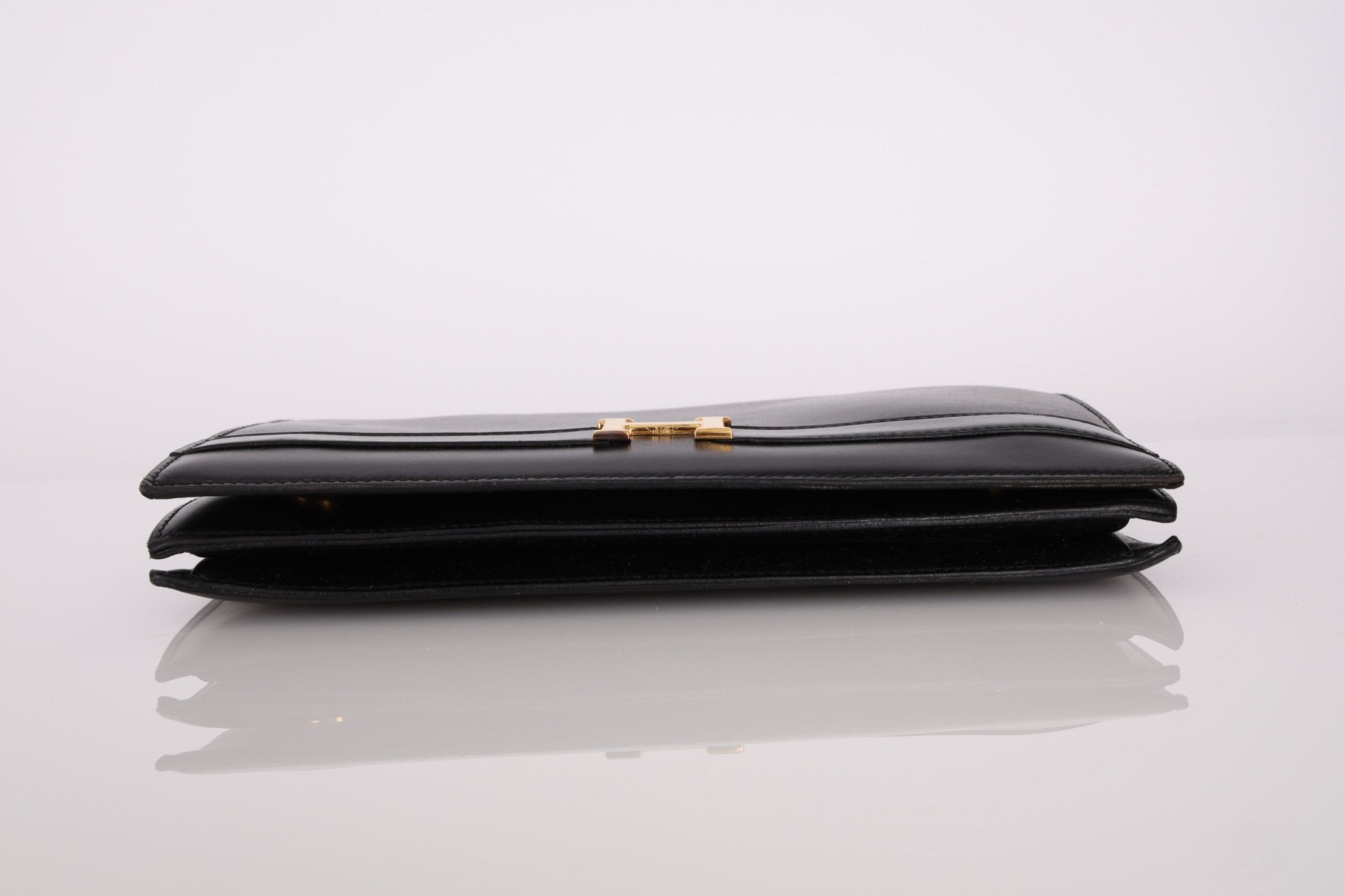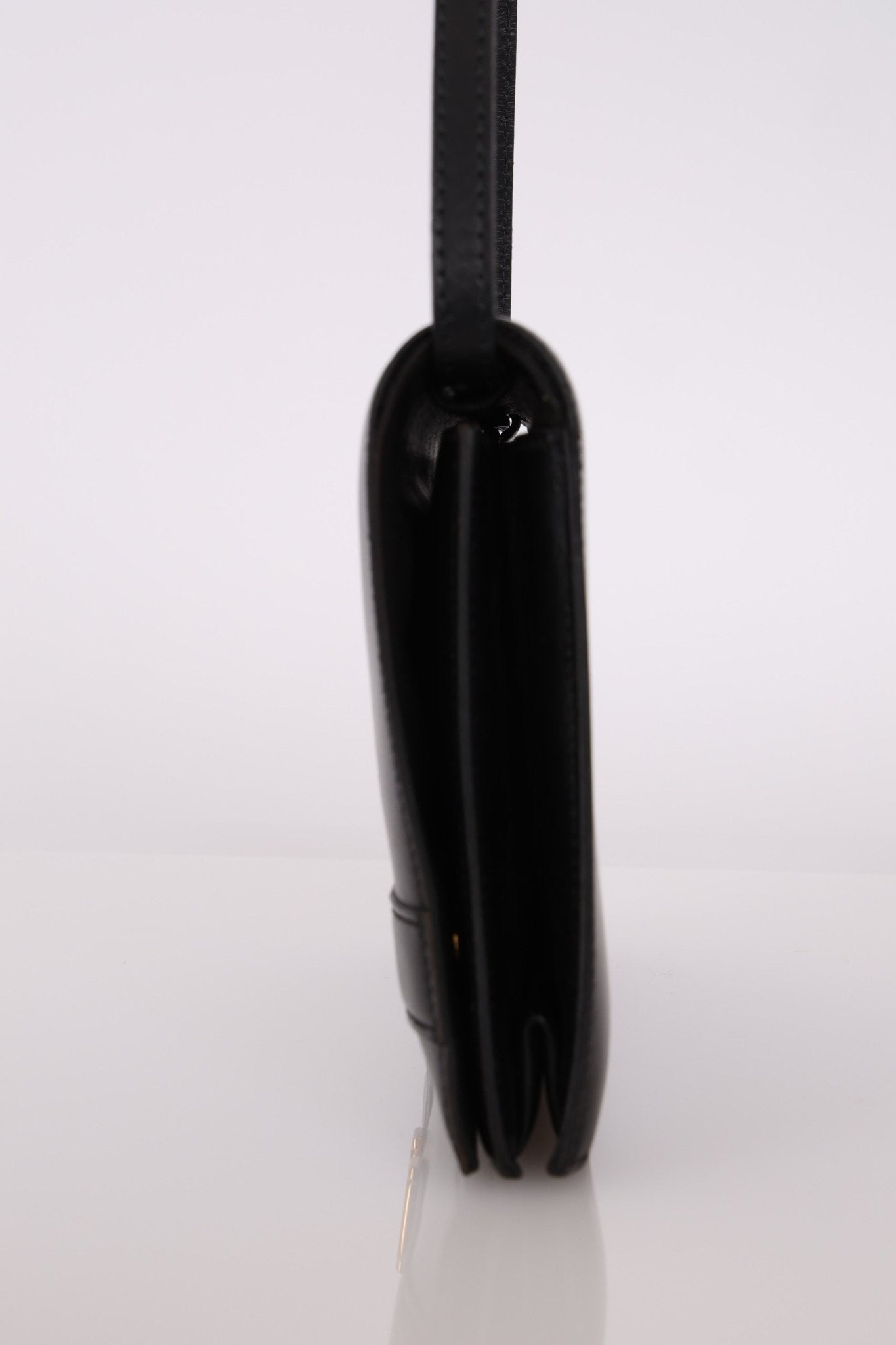The Hermès 1985 Annie Boxcalf Shoulder Bag is a timeless little black bag that will easily be your go-to piece. The rectangular shape mimics a wallet on chain style to wear over the shoulder, or remove the strap to transform into a classy evening clutch.