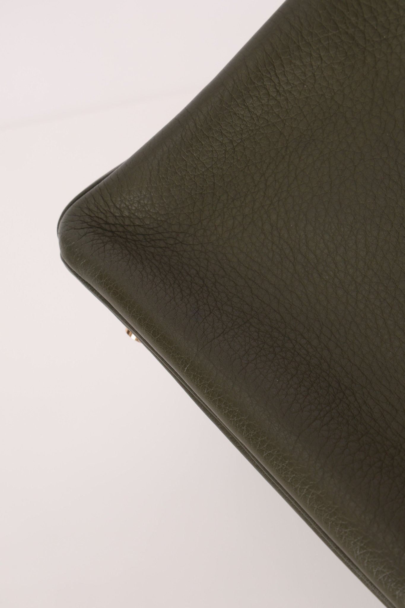 Ultra-rare and highly coveted, this Hermès x Margiela 2000 Khaki Togo Retourne Birkin 35 with gold hardware epitomizes the understated refinement that collectors revere. Under Margiela’s direction, Hermès pieces became synonymous with pared-back minimalism, subtle innovation, and timeless restraint—qualities that continue to define their allure. This Khaki colorway was personally introduced by Margiela and produced exclusively during his tenure, while the contrasting stitching makes it even more exceptional, having been crafted for just a single year in 2000.