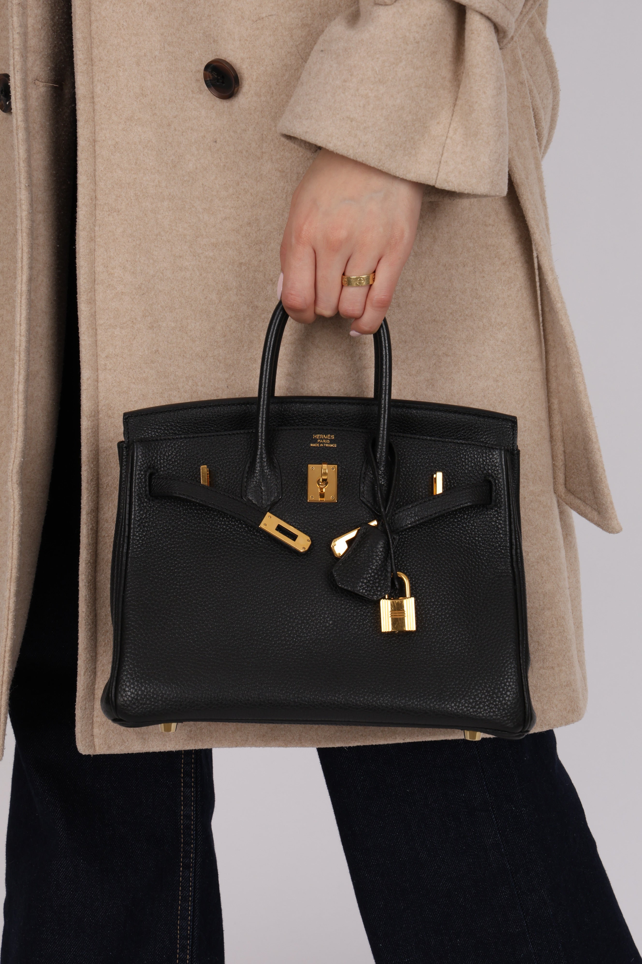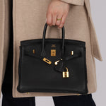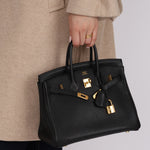 Meet the Hermès 2009 Birkin 25 in Noir Togo with Gold Hardware. Noir, the most popular color, consistently outperforms all others on resale, making this Birkin, in the smallest size, an impeccable choice for both style and investment.