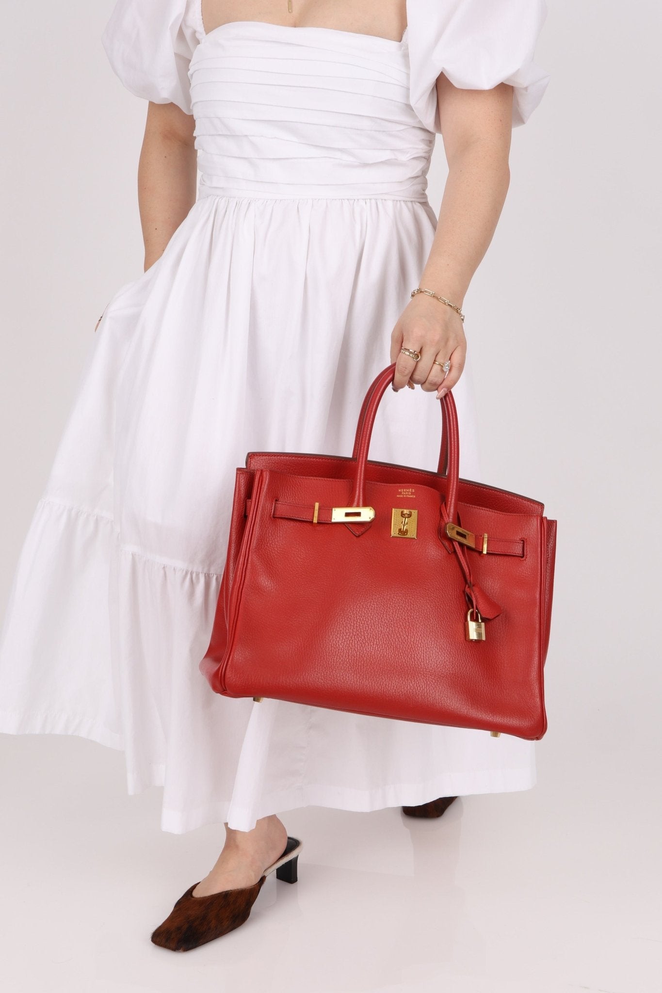 Hermès 1997 Retourne Rouge Vif Ardennes Birkin 35 GHW - FashioNica