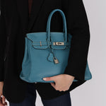 Hermès 2007 Bleu Jean Clemence Birkin 35 Retourne PHW