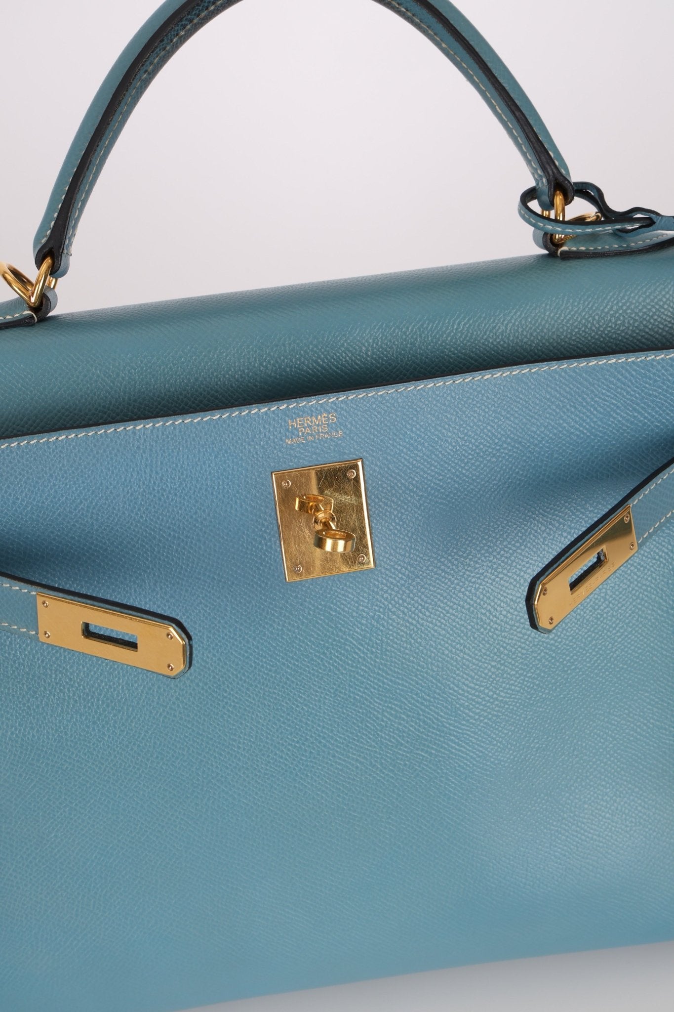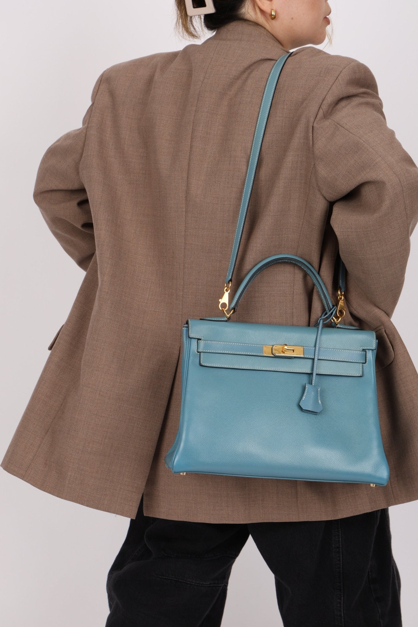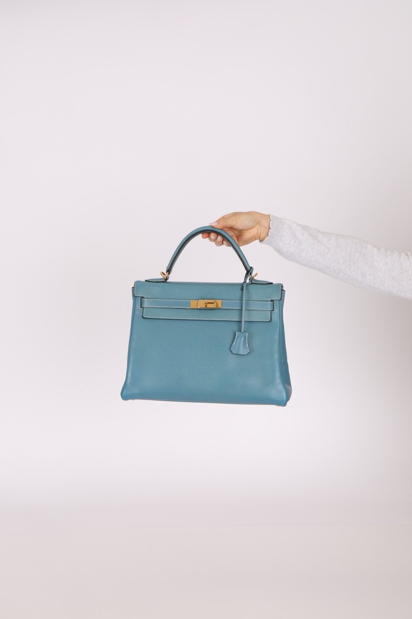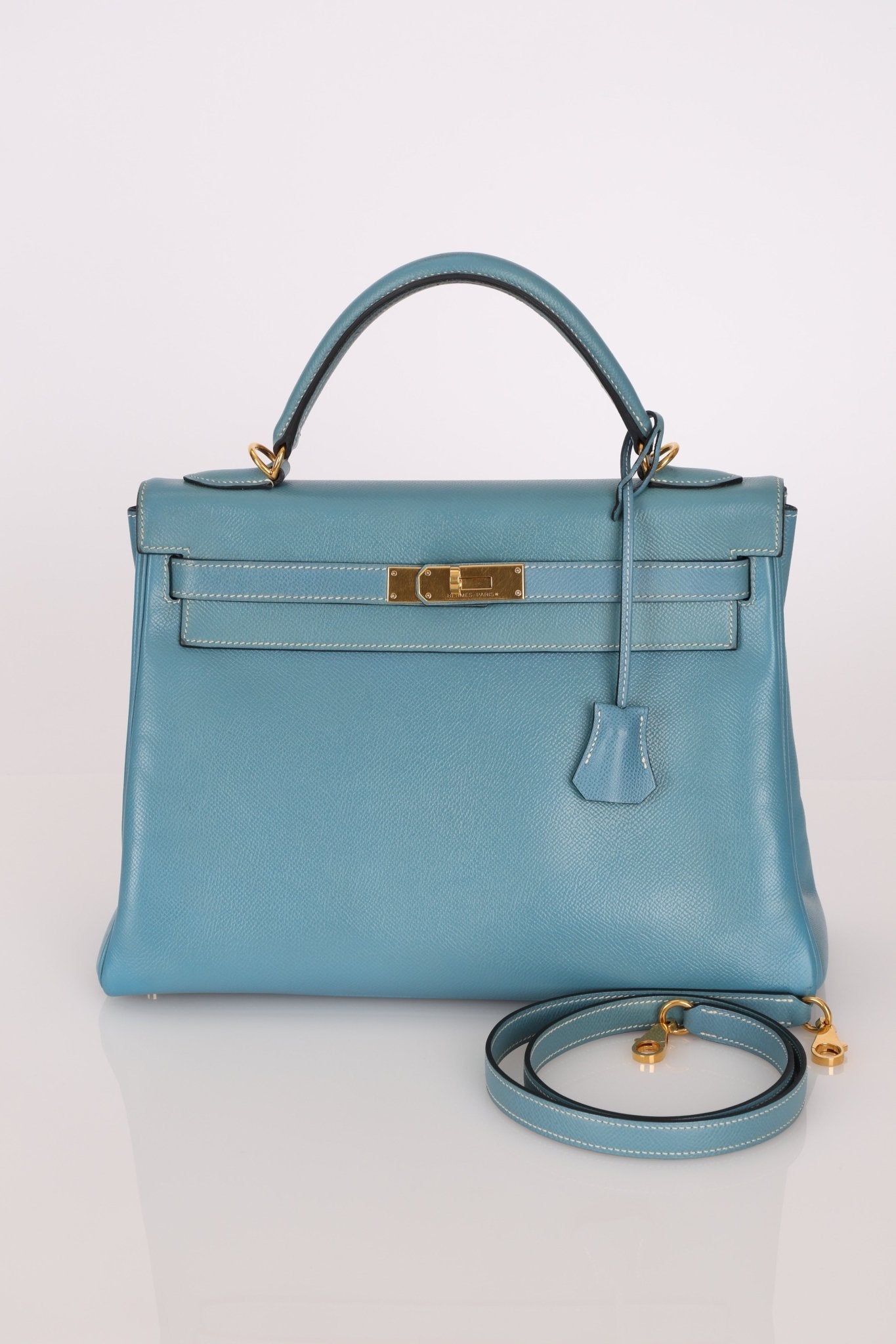 Hermès 2005 Bleu Jean Epsom Retourne Kelly 32 GHW - FashioNica