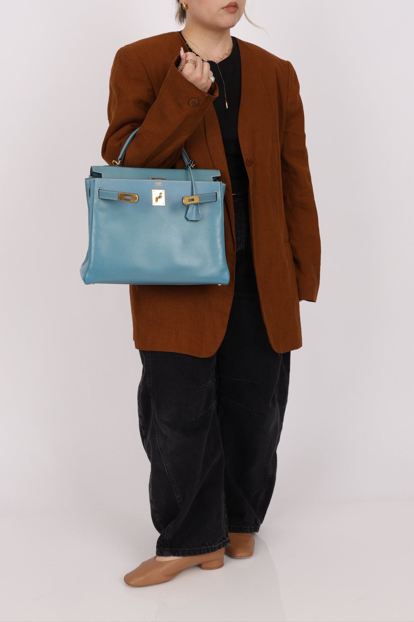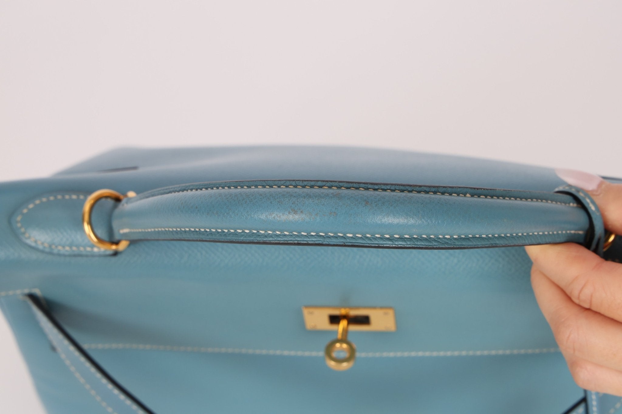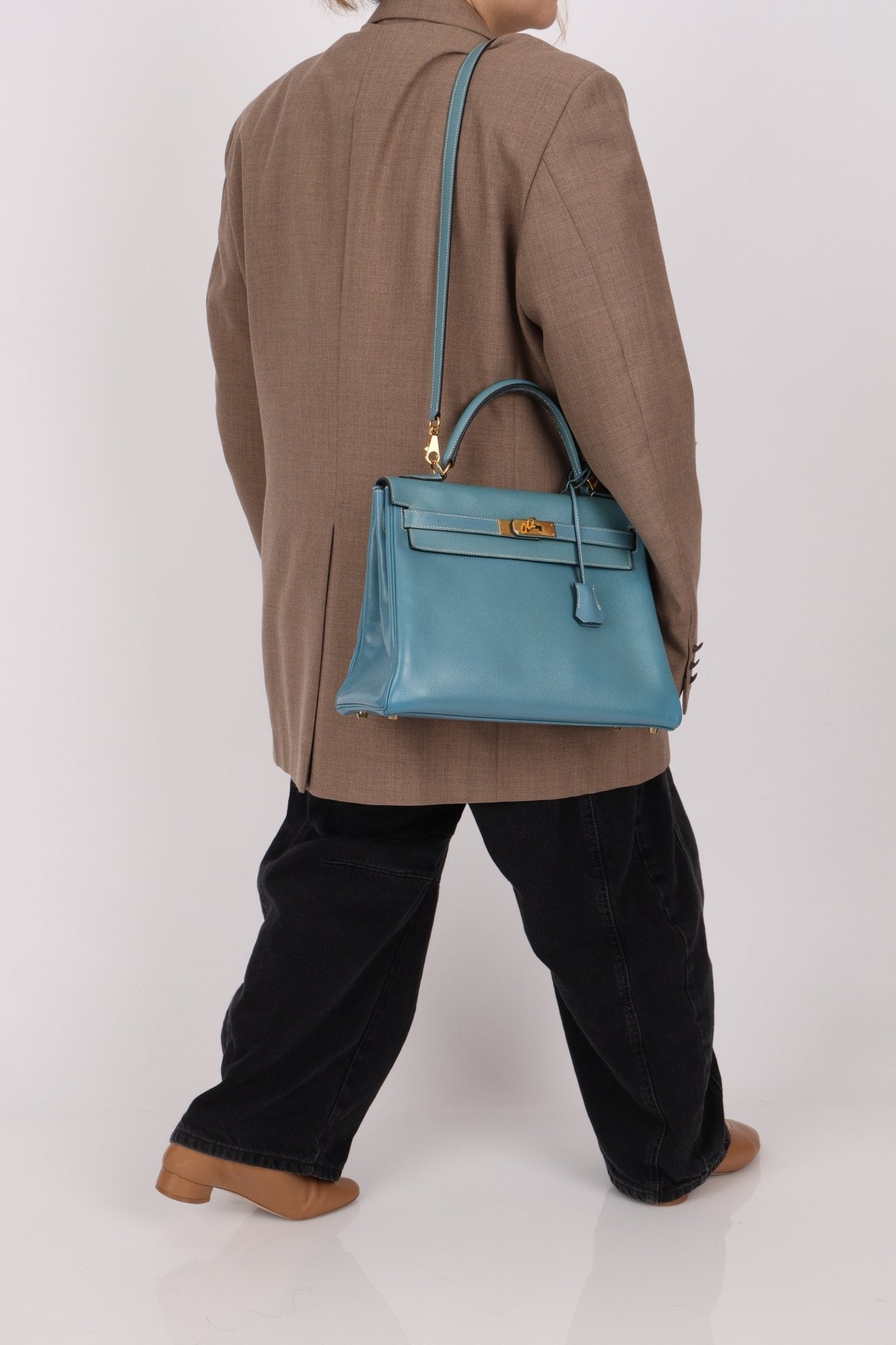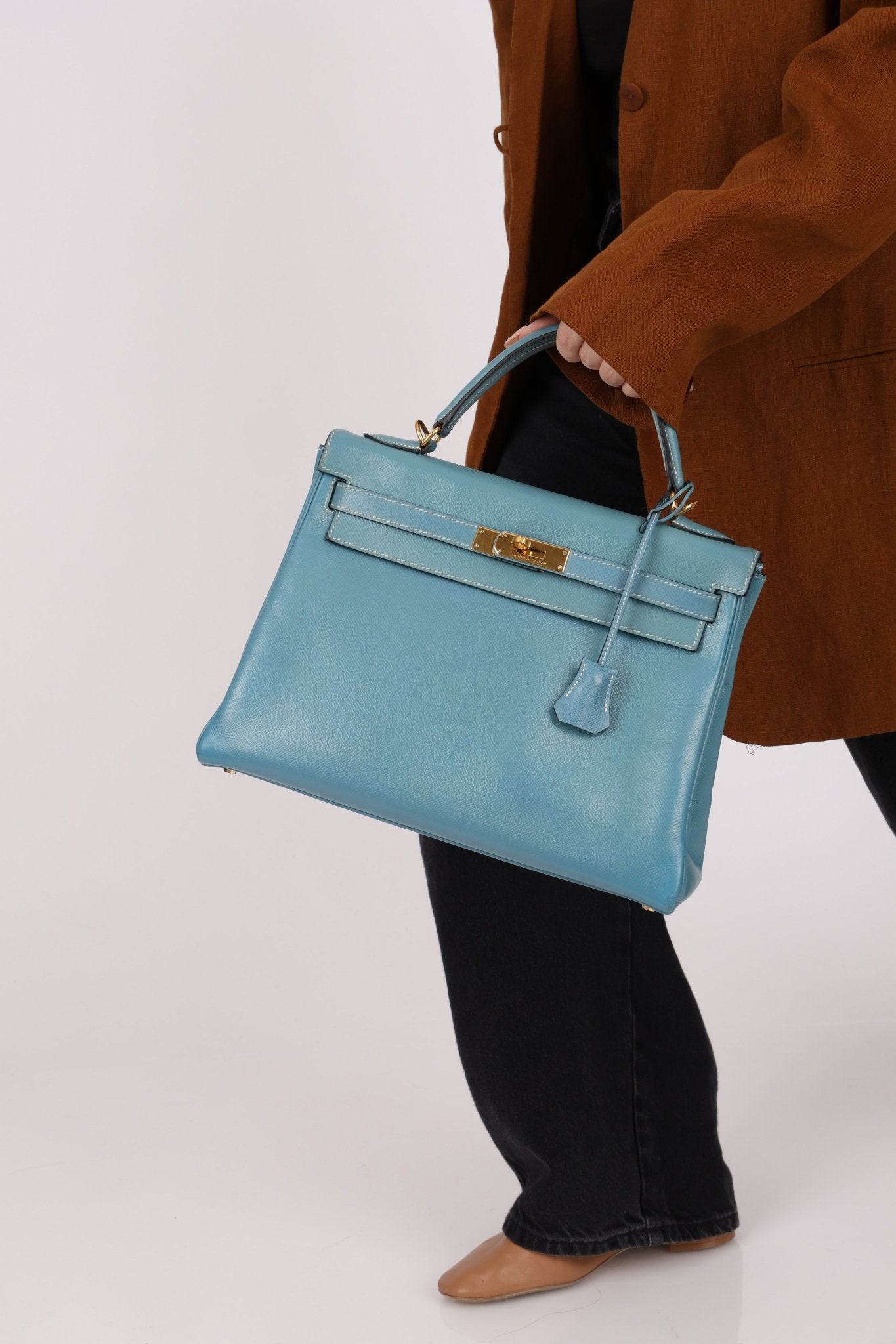 Hermès 2005 Bleu Jean Epsom Retourne Kelly 32 GHW - FashioNica