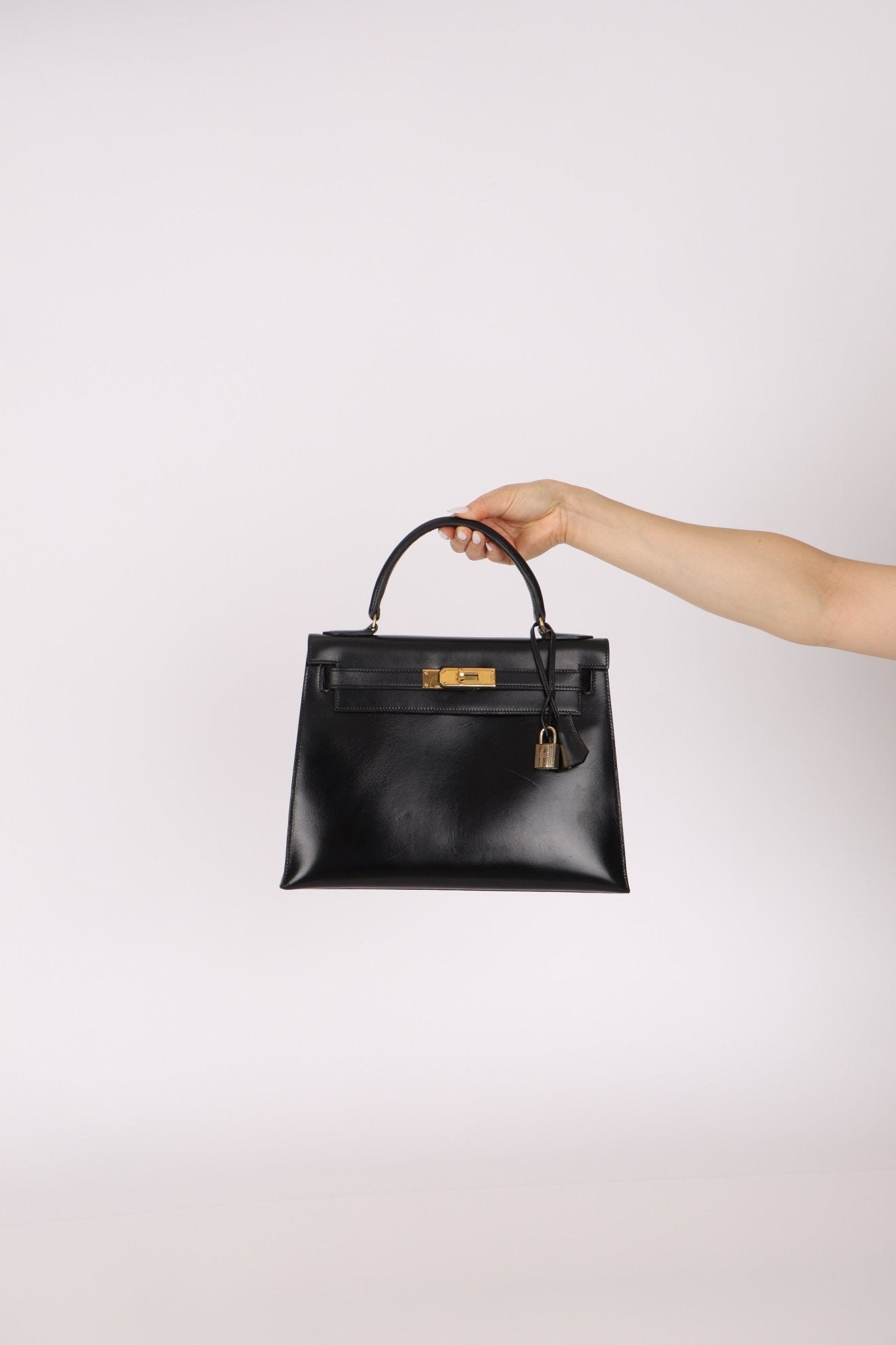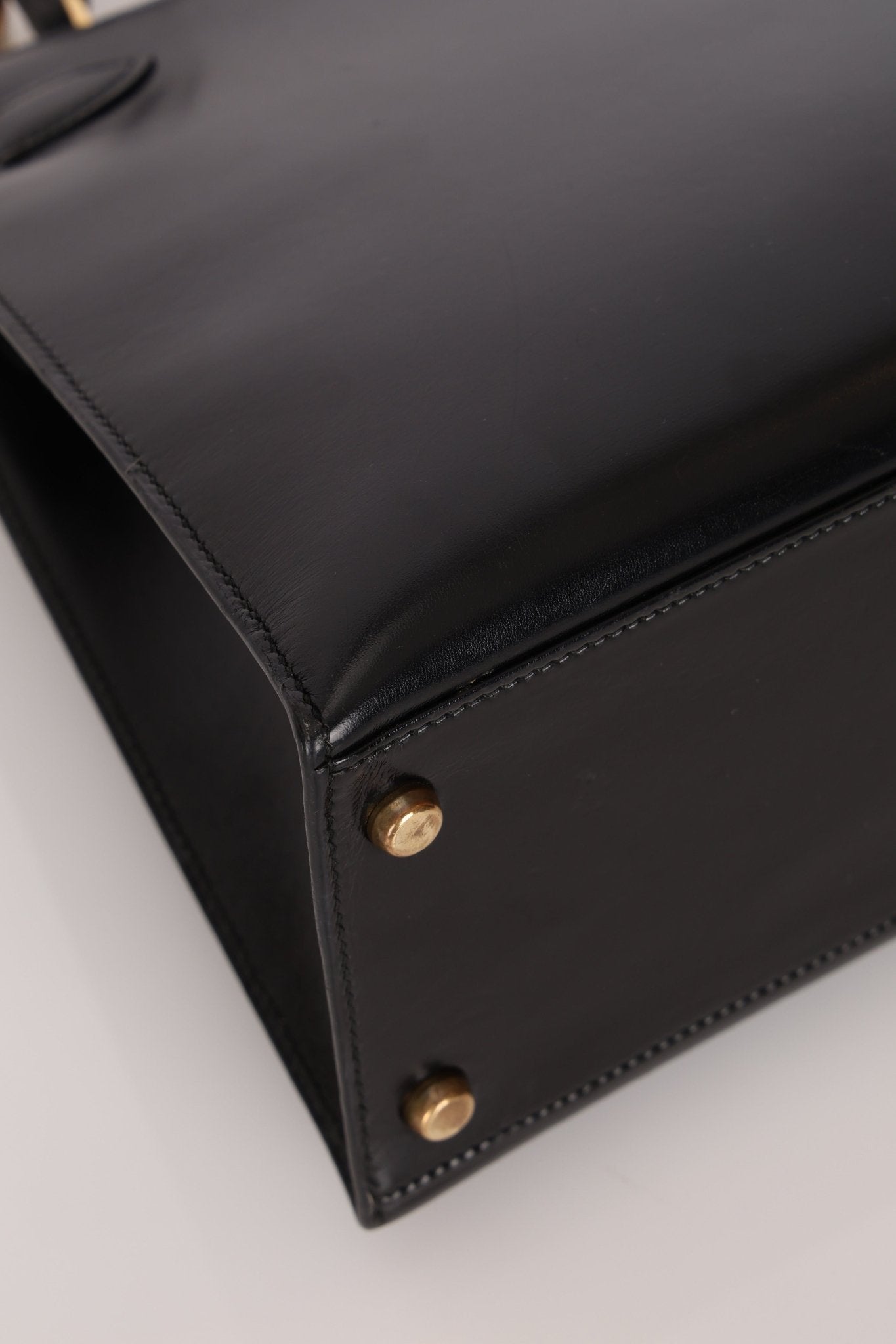 Hermès 1986 Noir Box Kelly 28 Sellier GHW - FashioNica