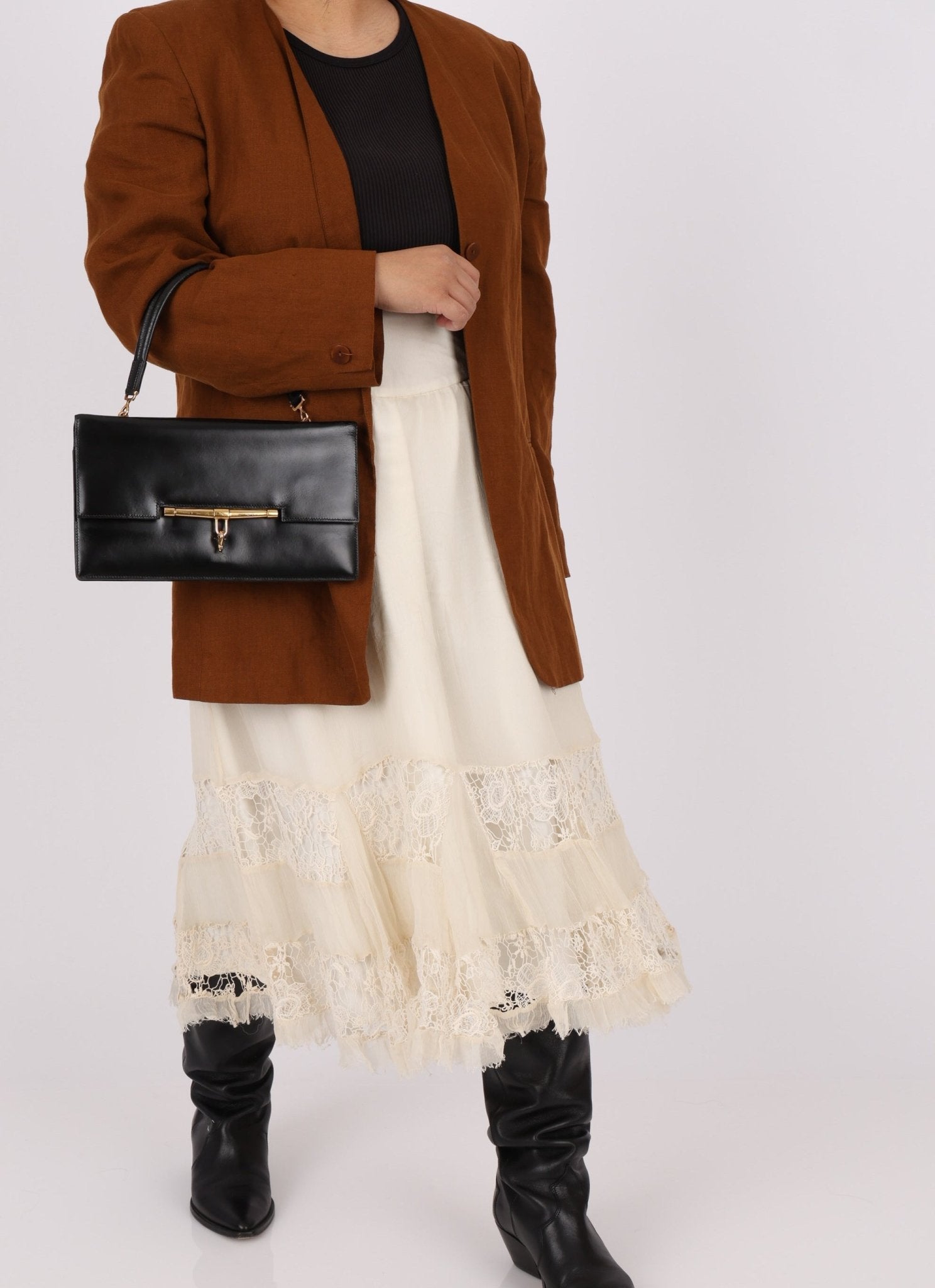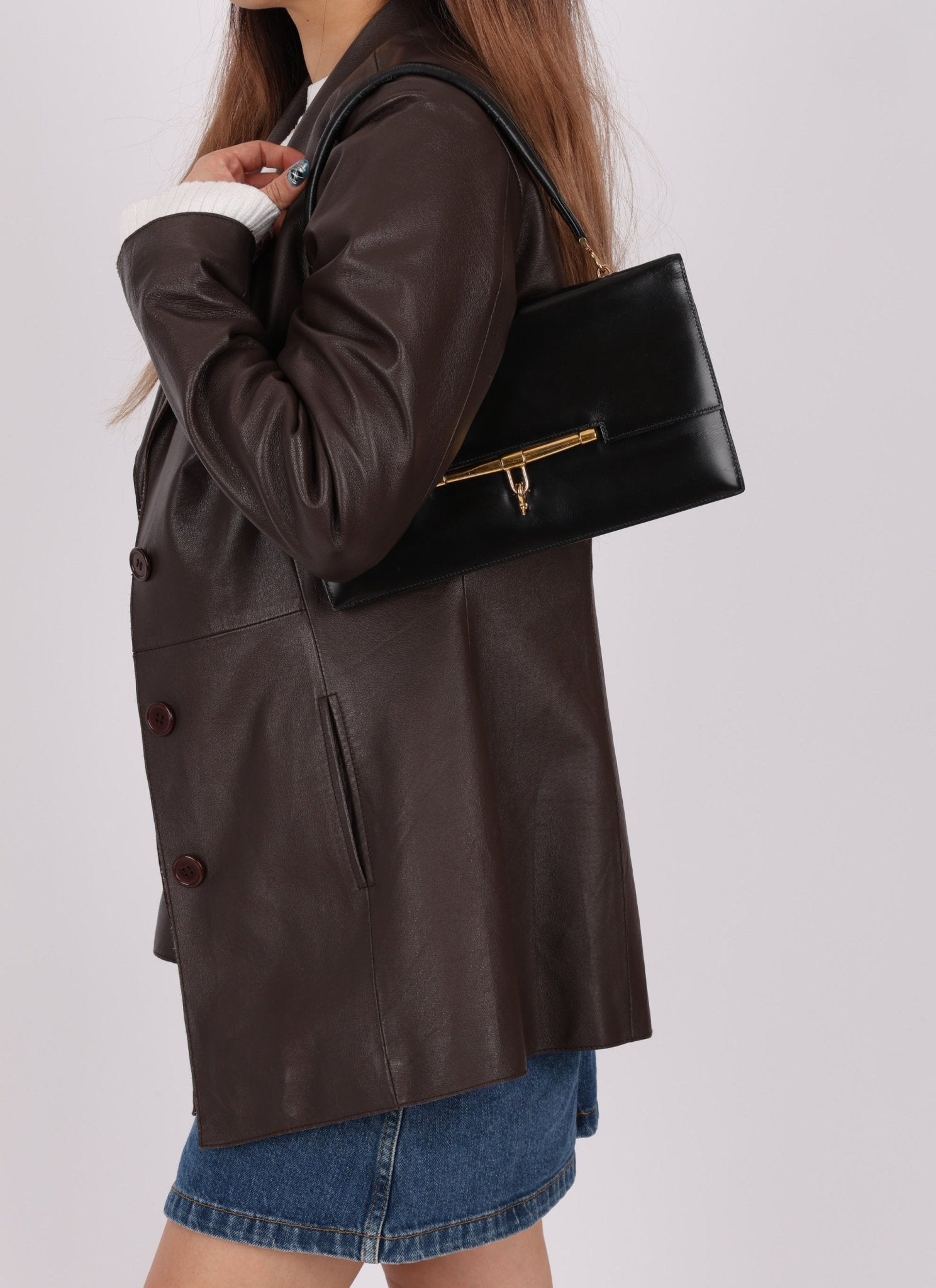 The Hermès Palonnier in Box Leather is a true vintage gem, perfect for those who appreciate sleek, structured elegance. Wear it on your arm or wrist to effortlessly elevate any sophisticated evening look.