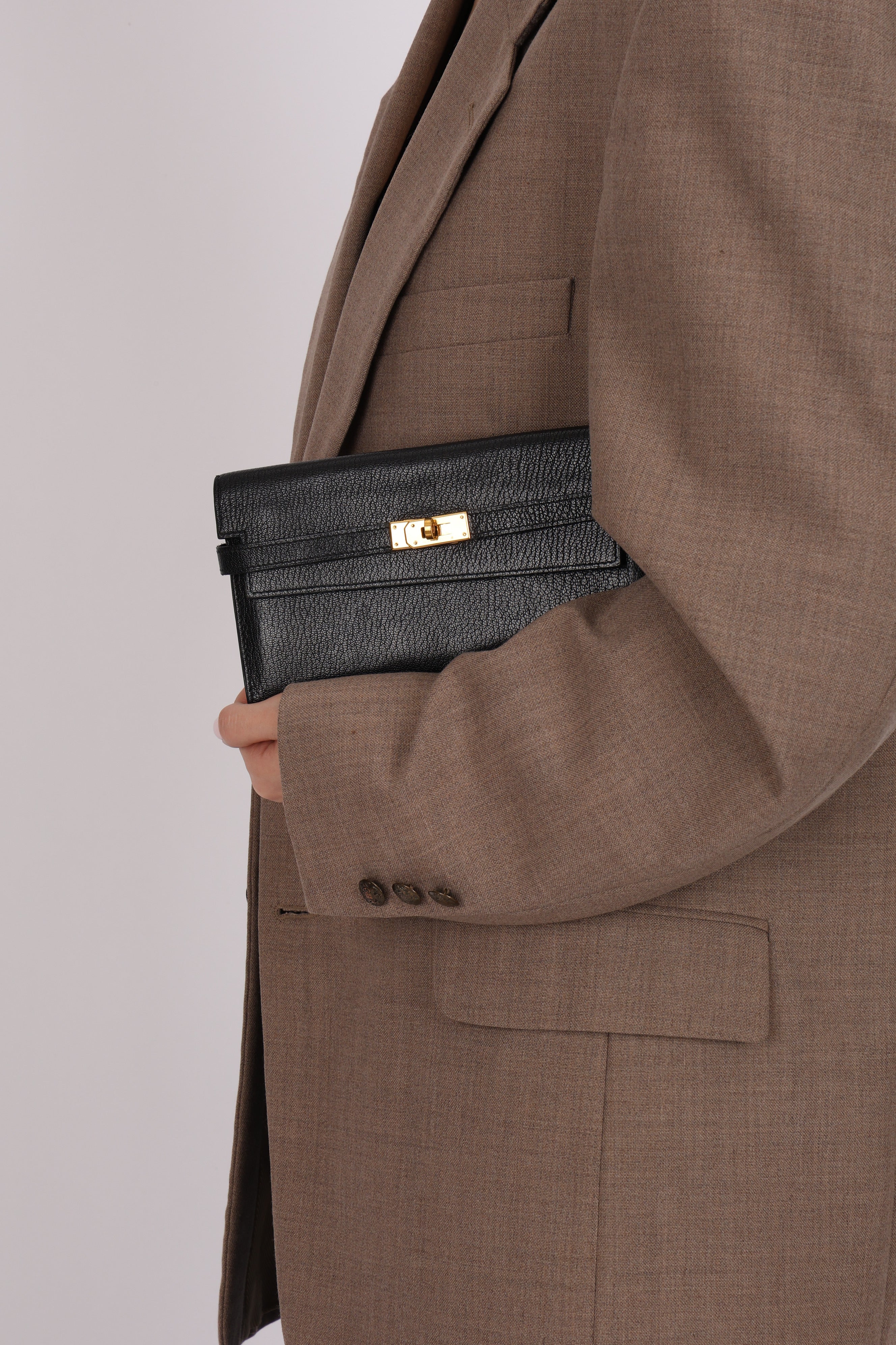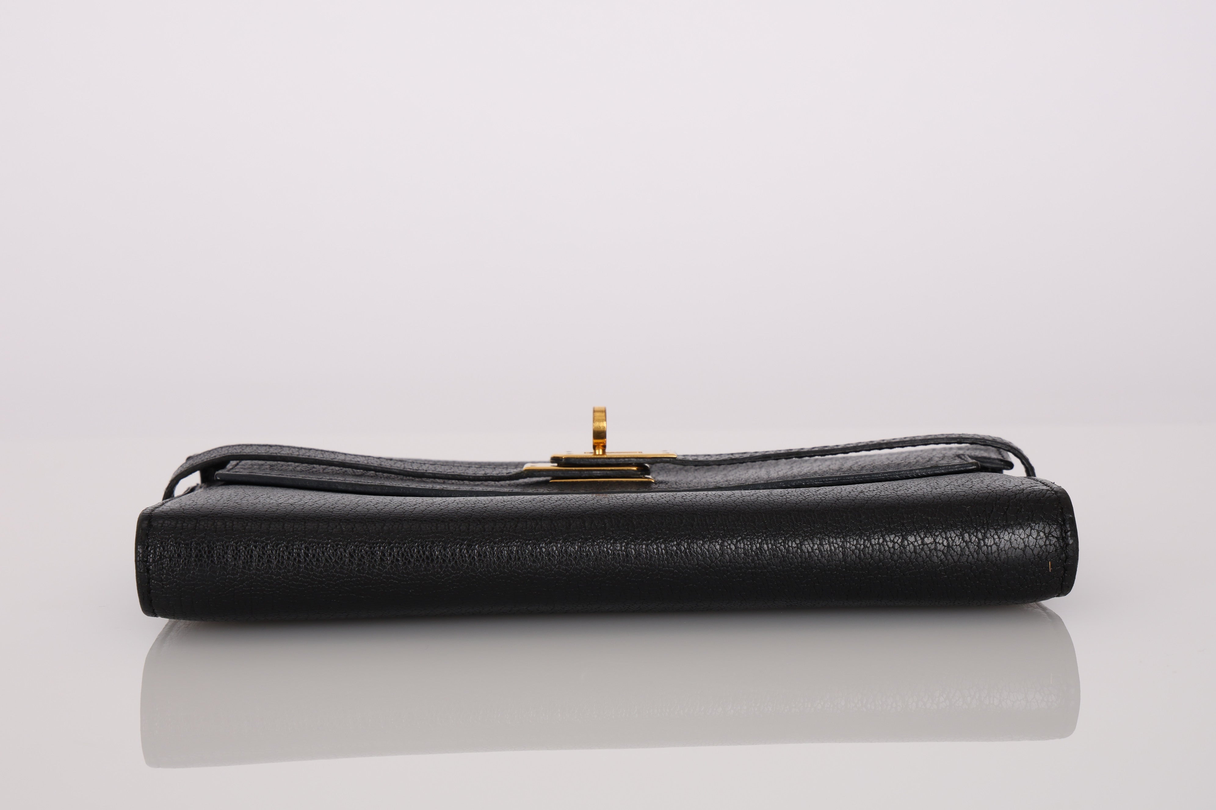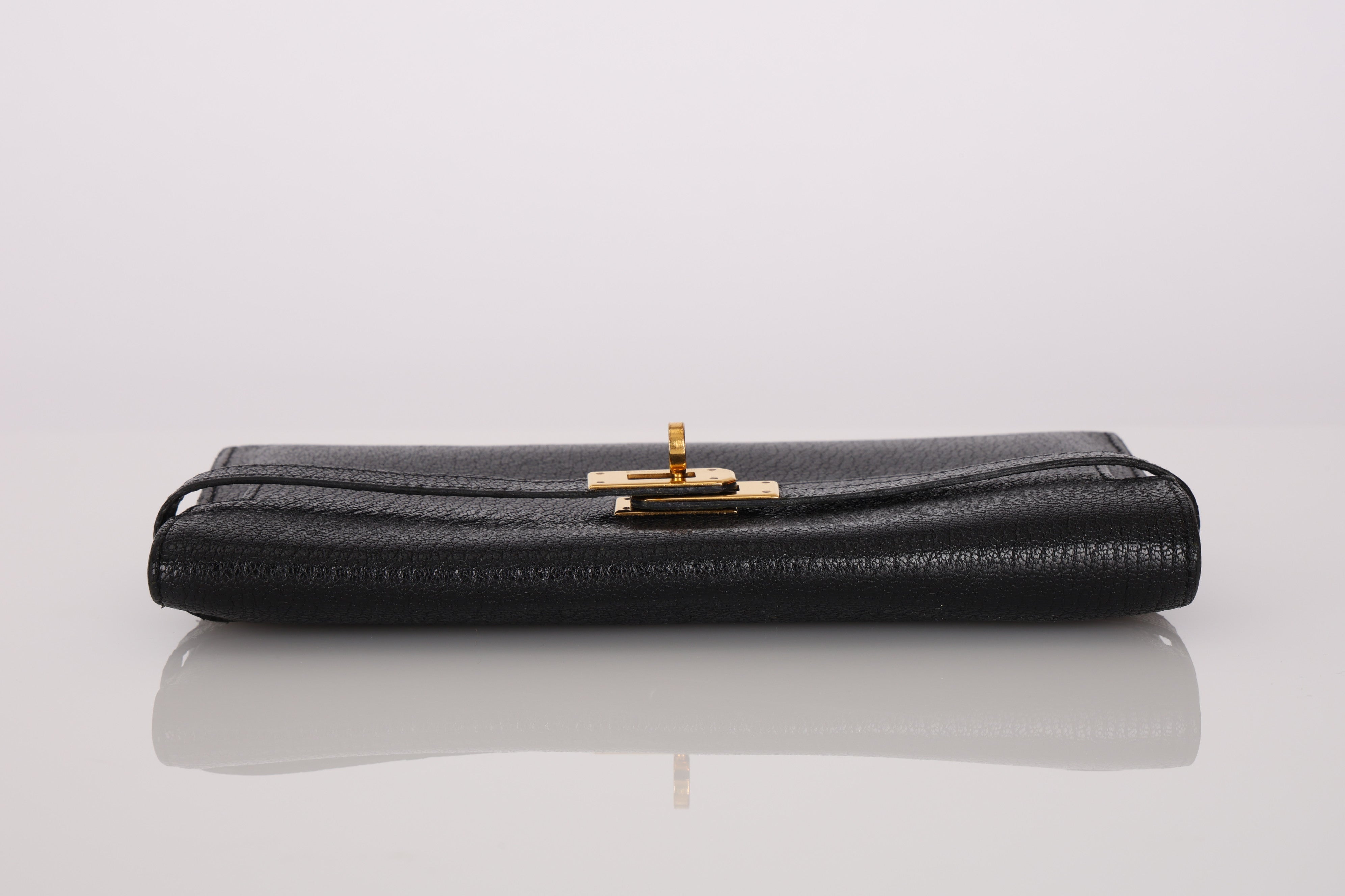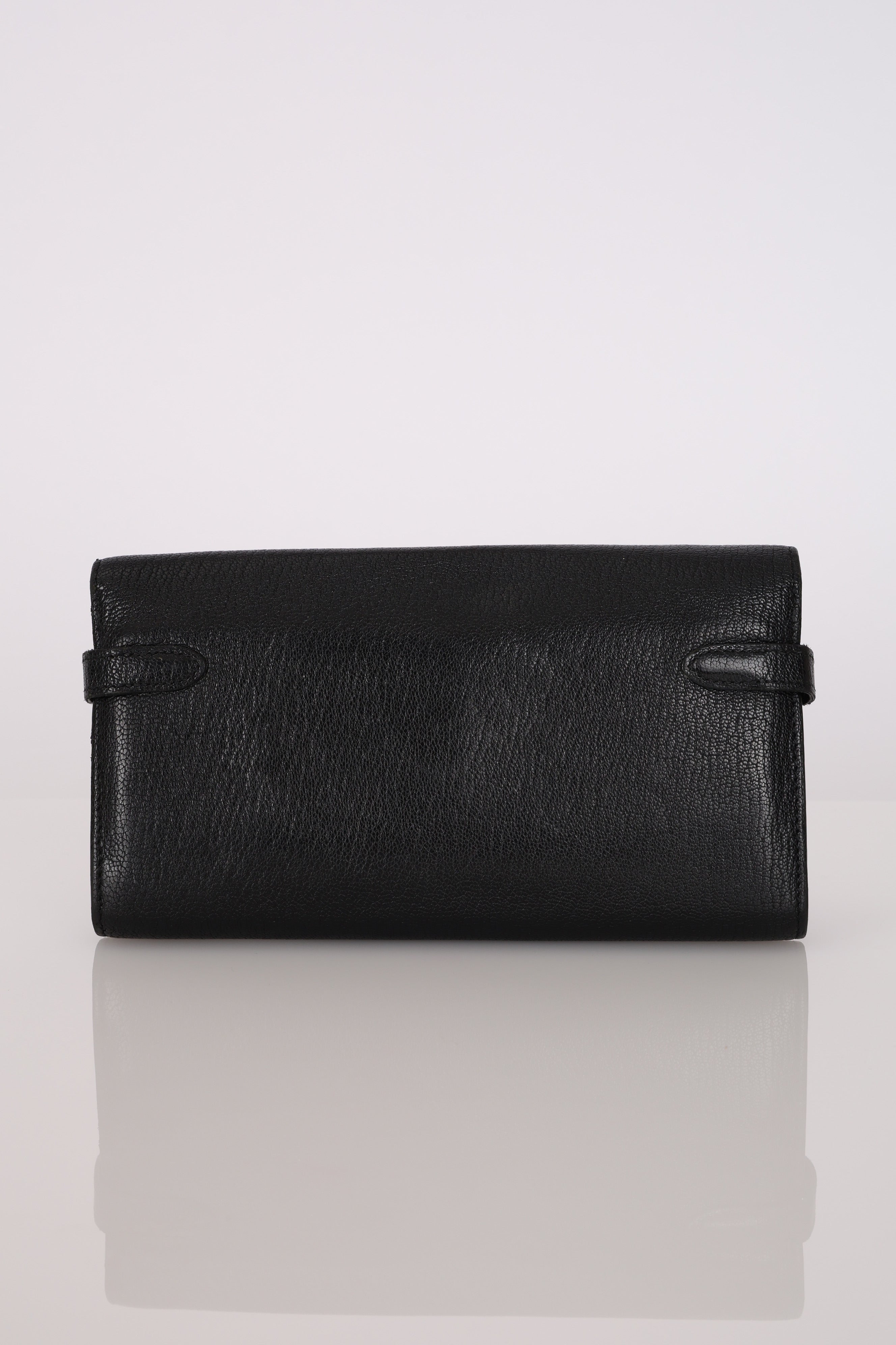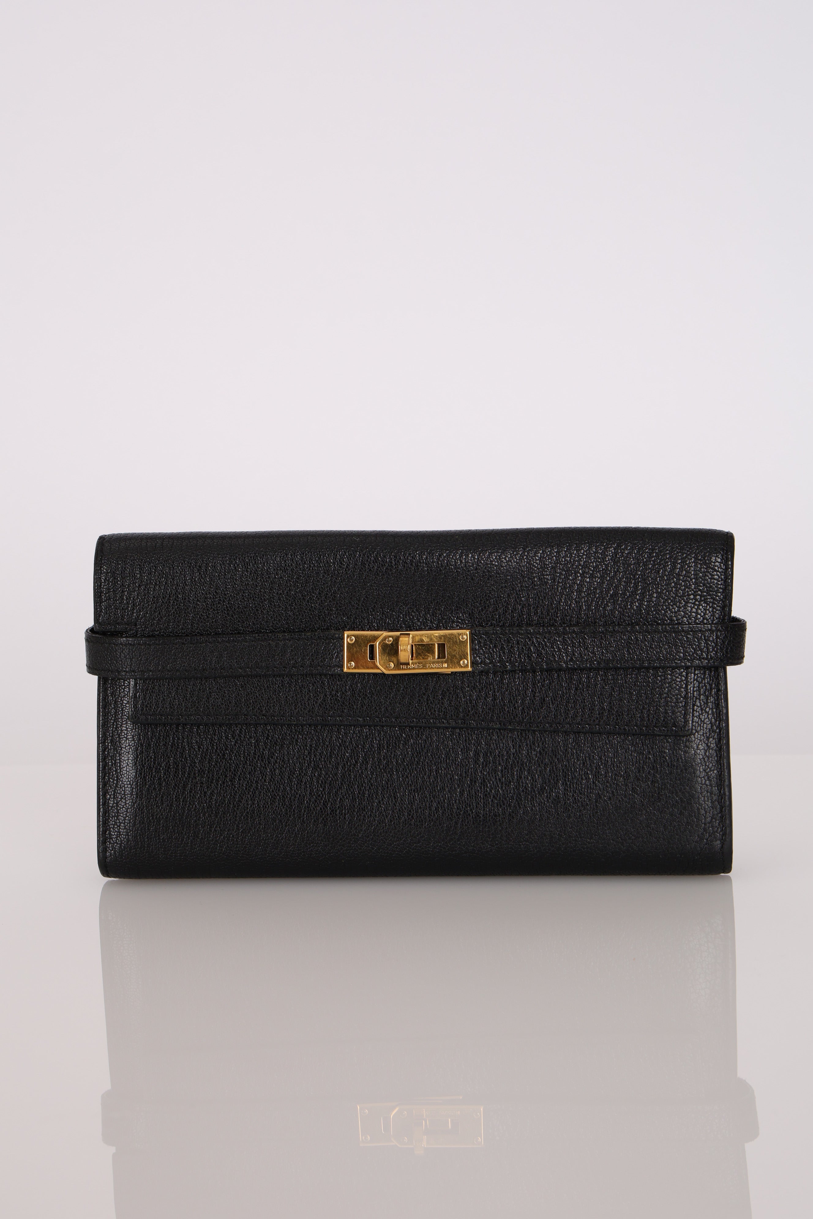 This chic Hermes 2011 Chevre Mysore Kelly Long Wallet GHW is crafted from stunning Chevre Mysore leather and can be used as a clutch or an everyday wallet.