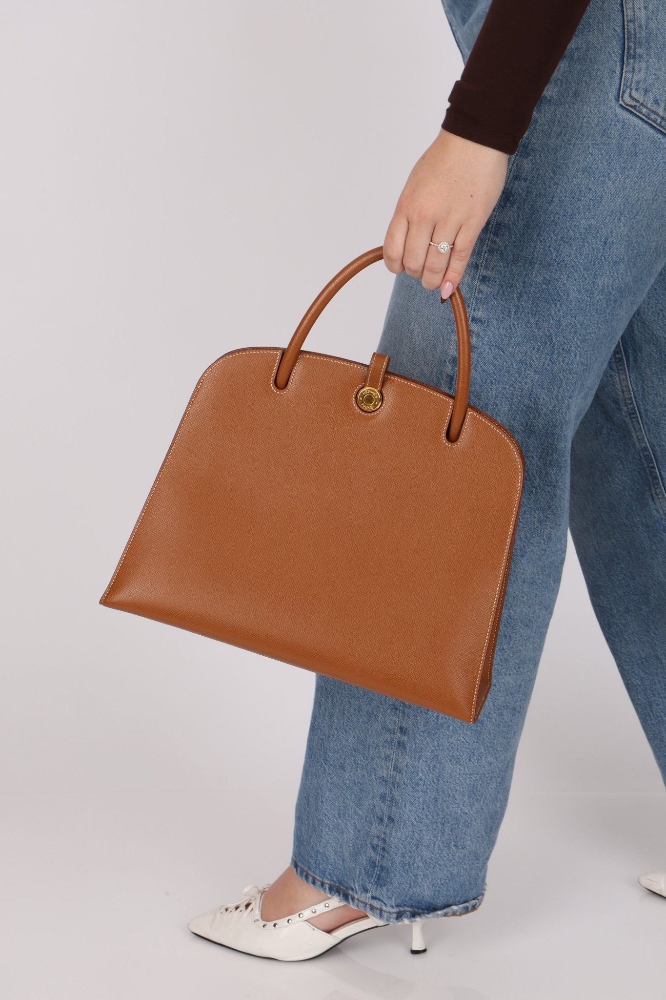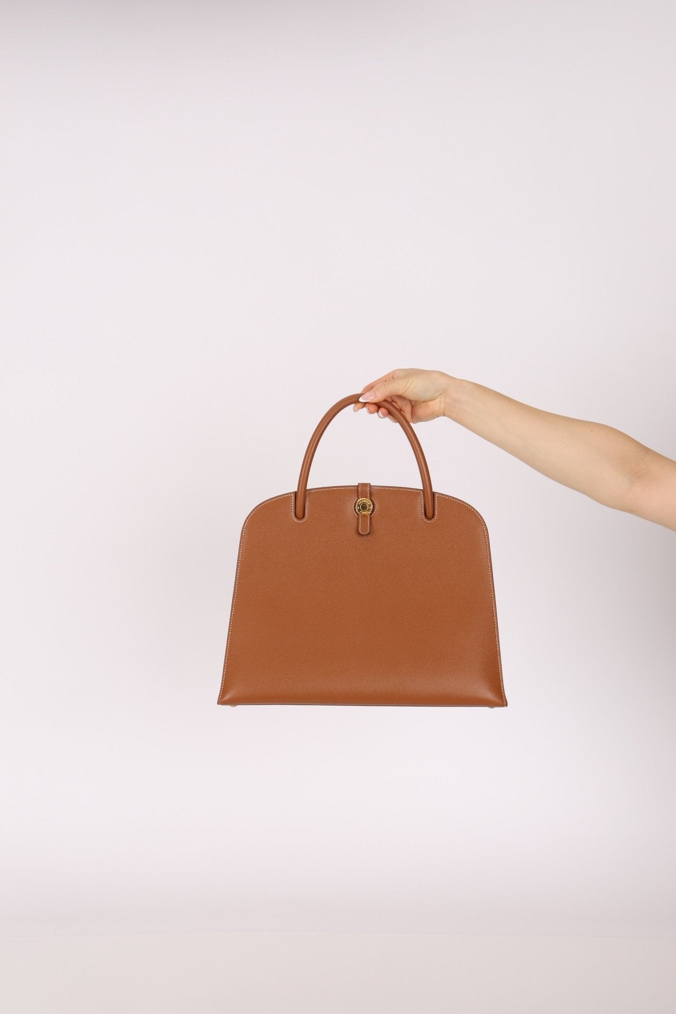 Dropping this chic Hermès Dalvy top handle in the shop! Similar to a Kelly, this bag features a structured frame and singular top handle strap. This is the perfect bag for those who carry alot, but want to have a chic Hermès quiet luxe look.