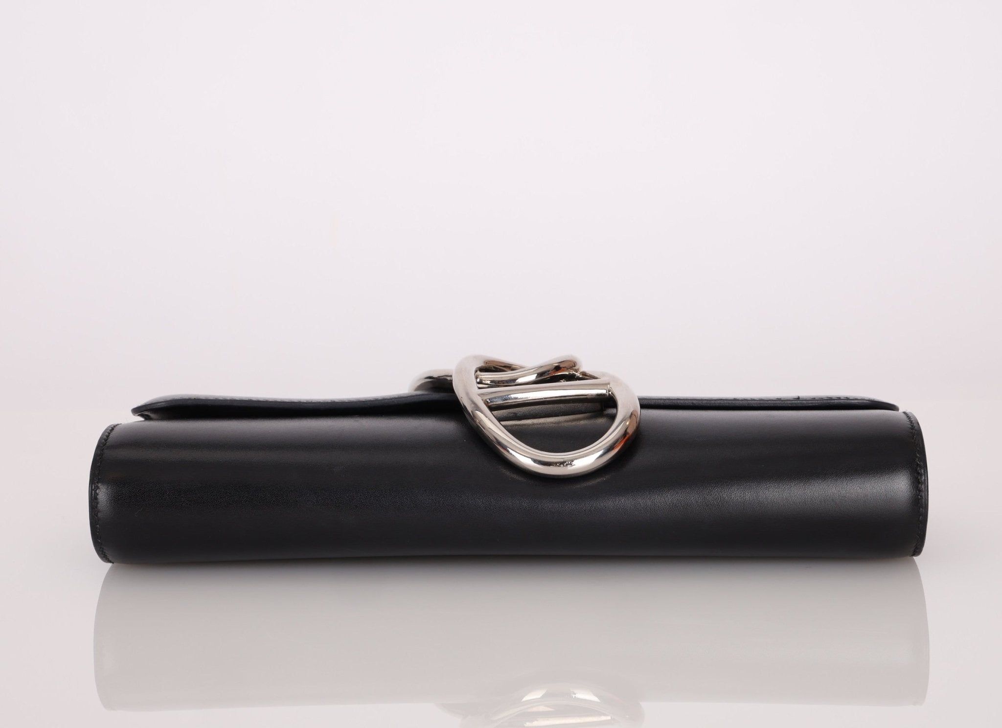 Sleek and sculptural, the Hermès Egee Clutch is crafted in smooth leather and finished with an arresting palladium-plated clasp inspired by the iconic Collier de Chien. A minimalist yet fashionable statement piece perfect for evening sophistication.