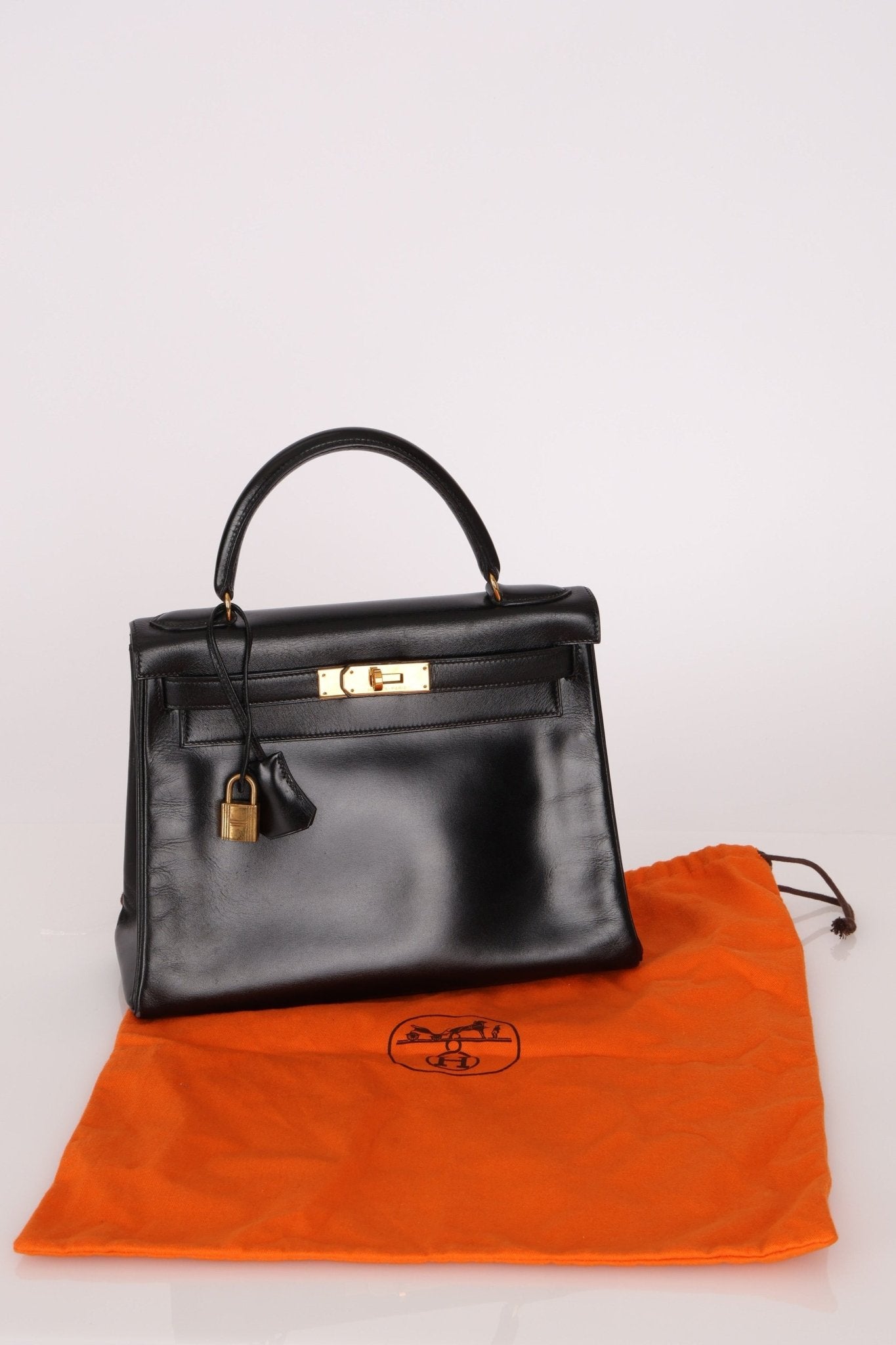 Hermès 1964 Noir Box Calf Retourne Kelly 28 - FashioNica