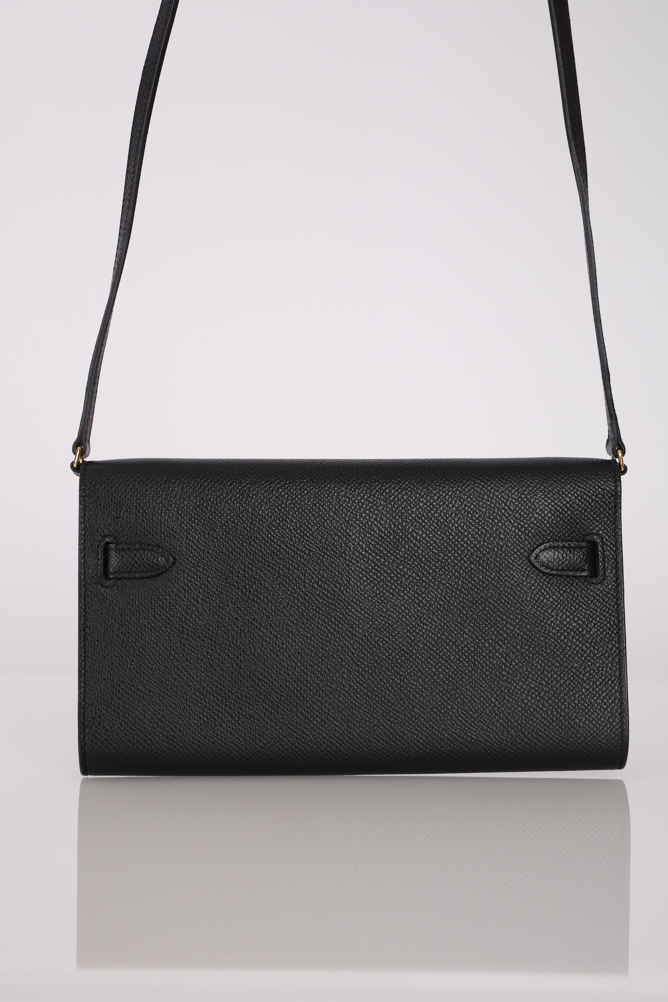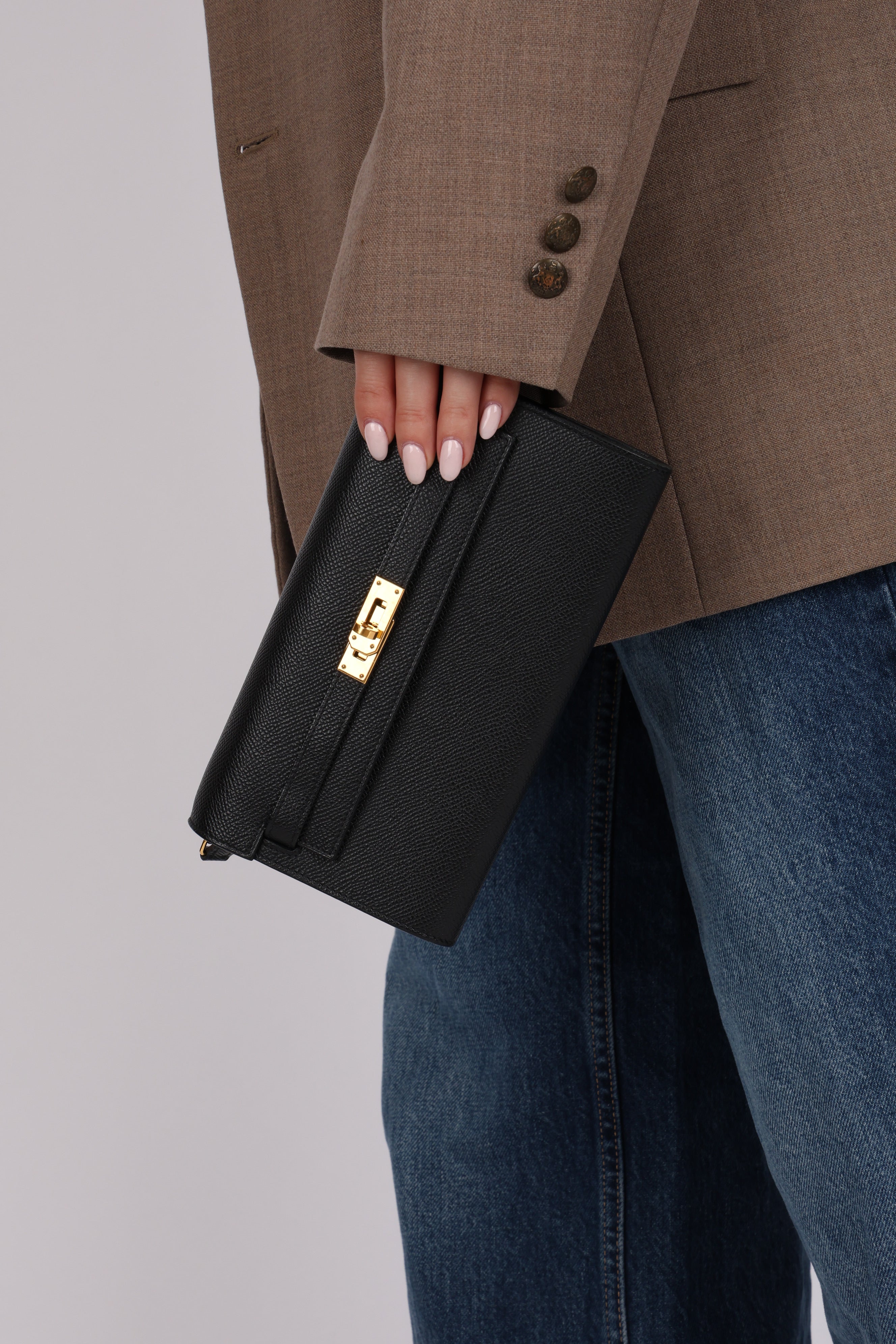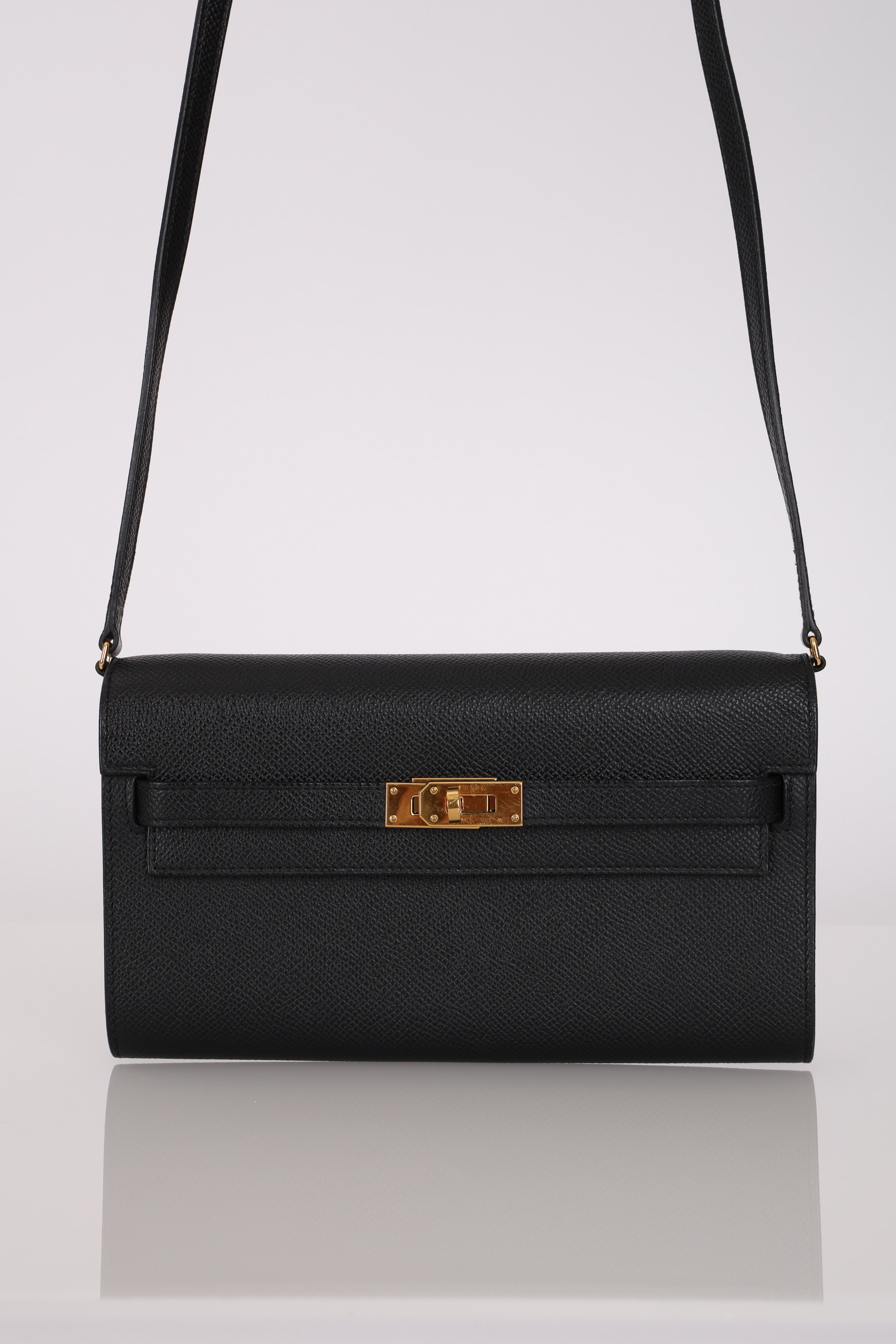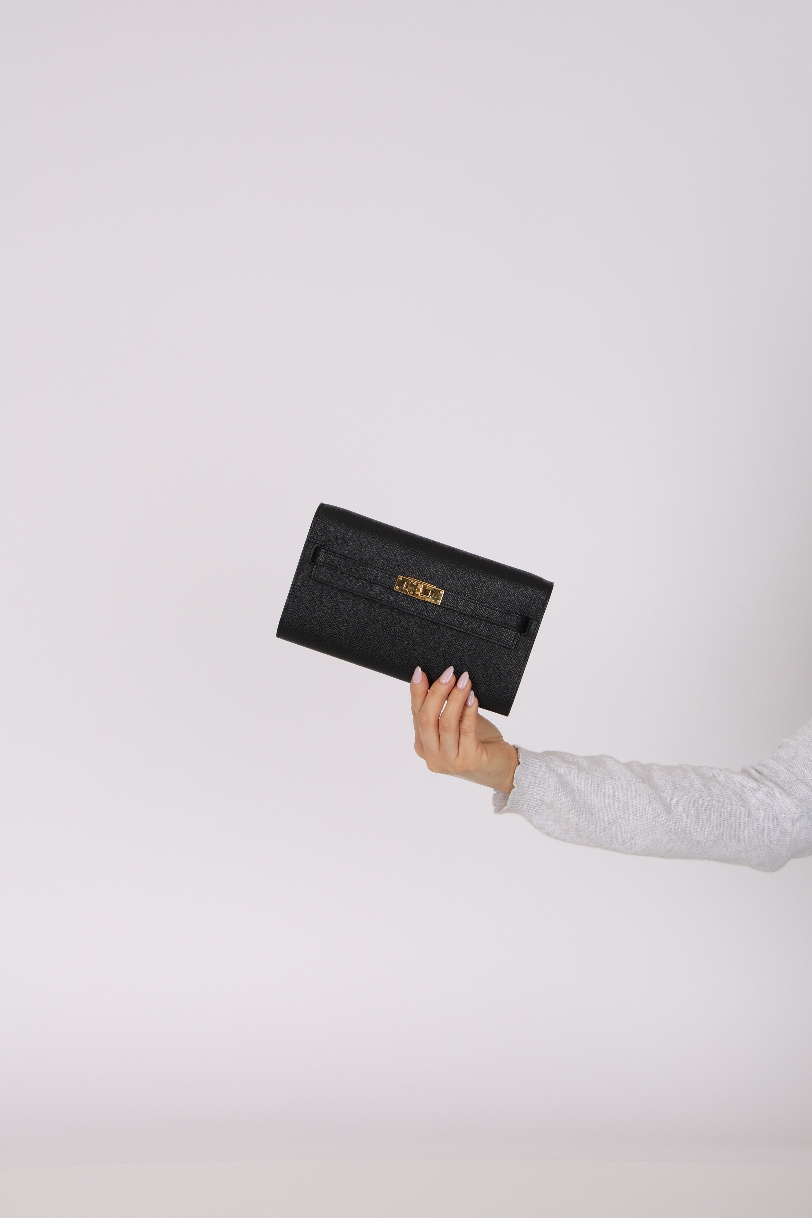 Dropping in the shop is a chic Hermès Kelly Wallet in Noir with gold hardware! Crafted from stunning Epsom leather, you can use alongside a larger Hermès bag or as a crossbody/short shoulder bag with the turnlock open or closed!