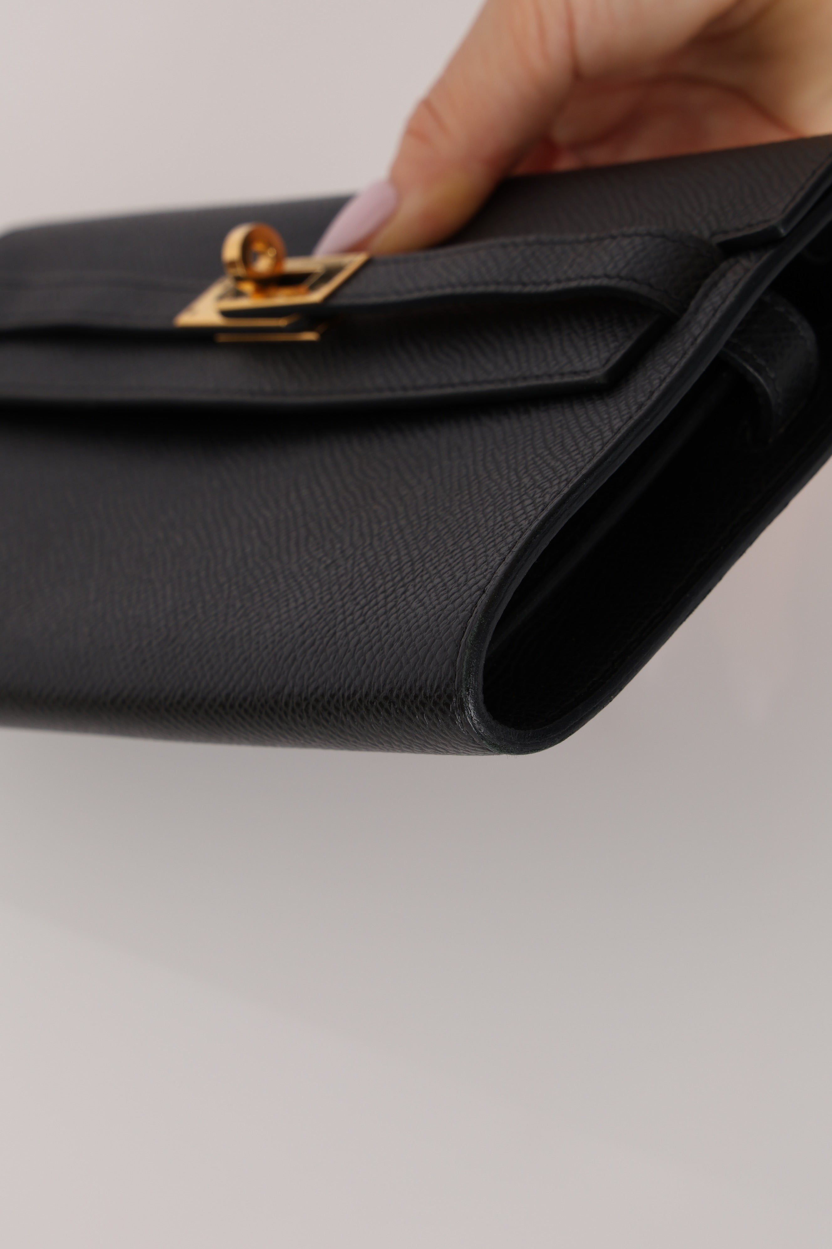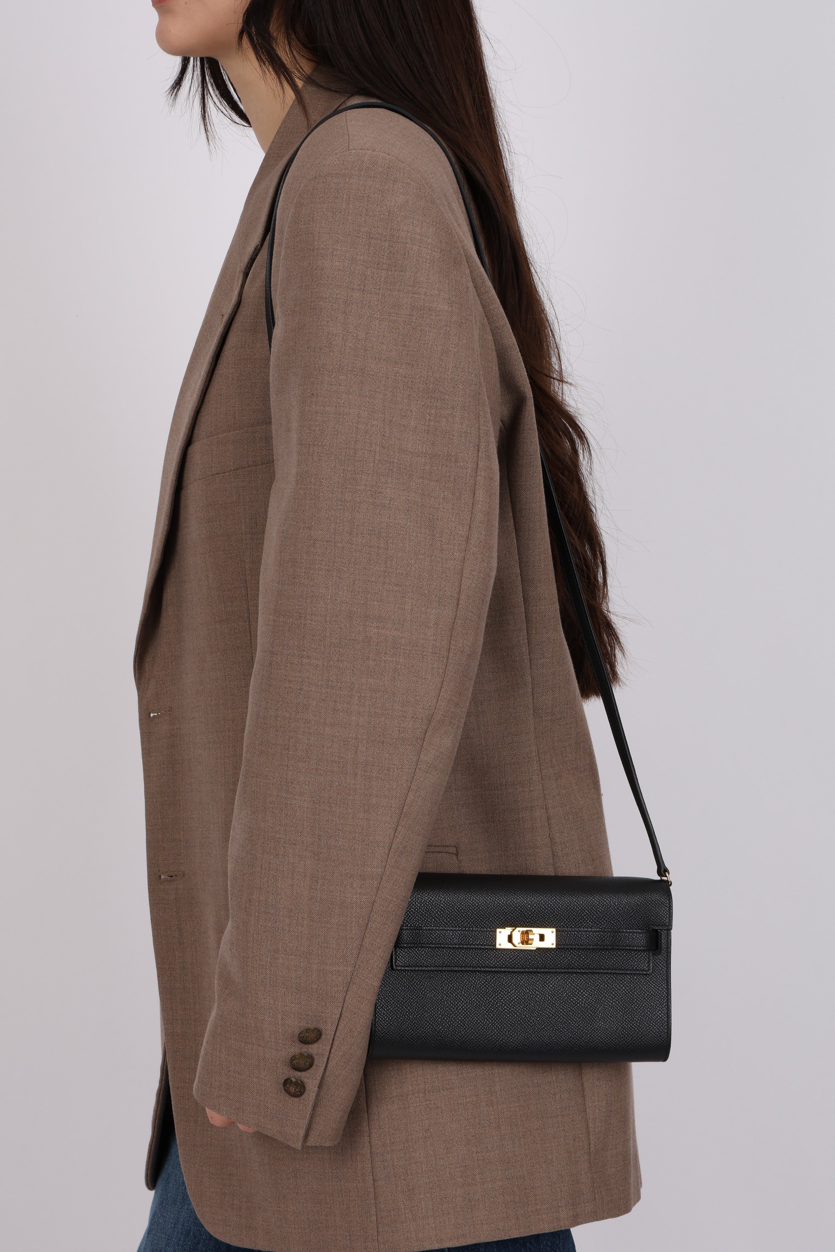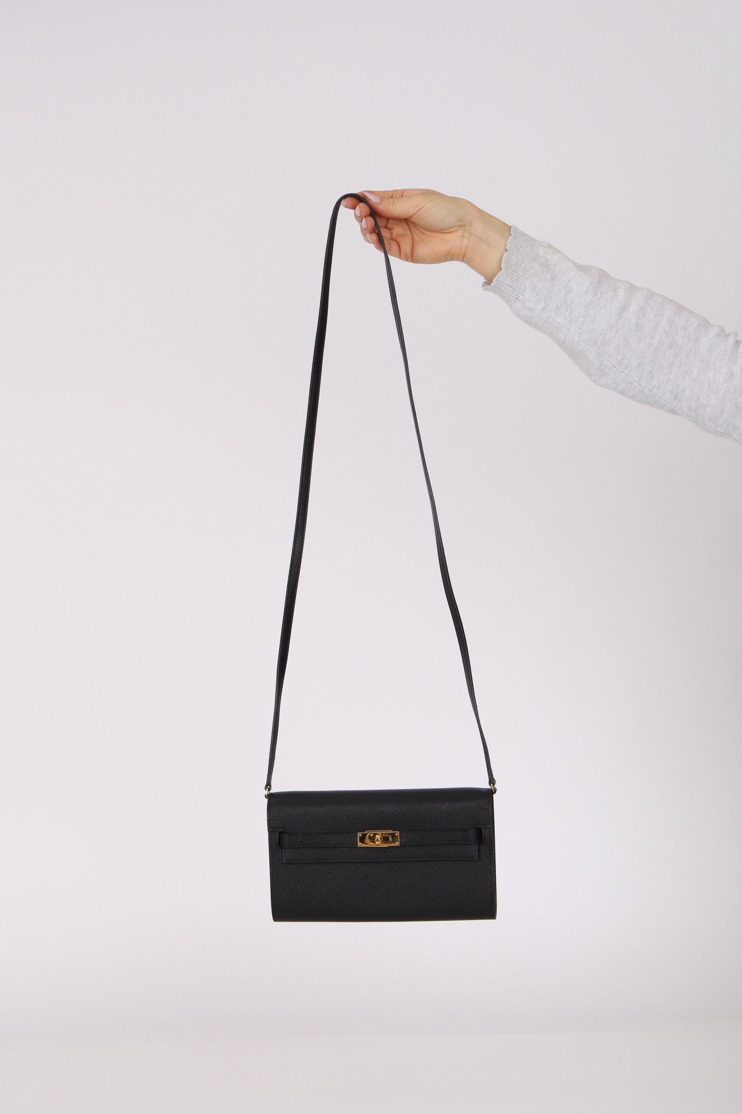 Dropping in the shop is a chic Hermès Kelly Wallet in Noir with gold hardware! Crafted from stunning Epsom leather, you can use alongside a larger Hermès bag or as a crossbody/short shoulder bag with the turnlock open or closed!
