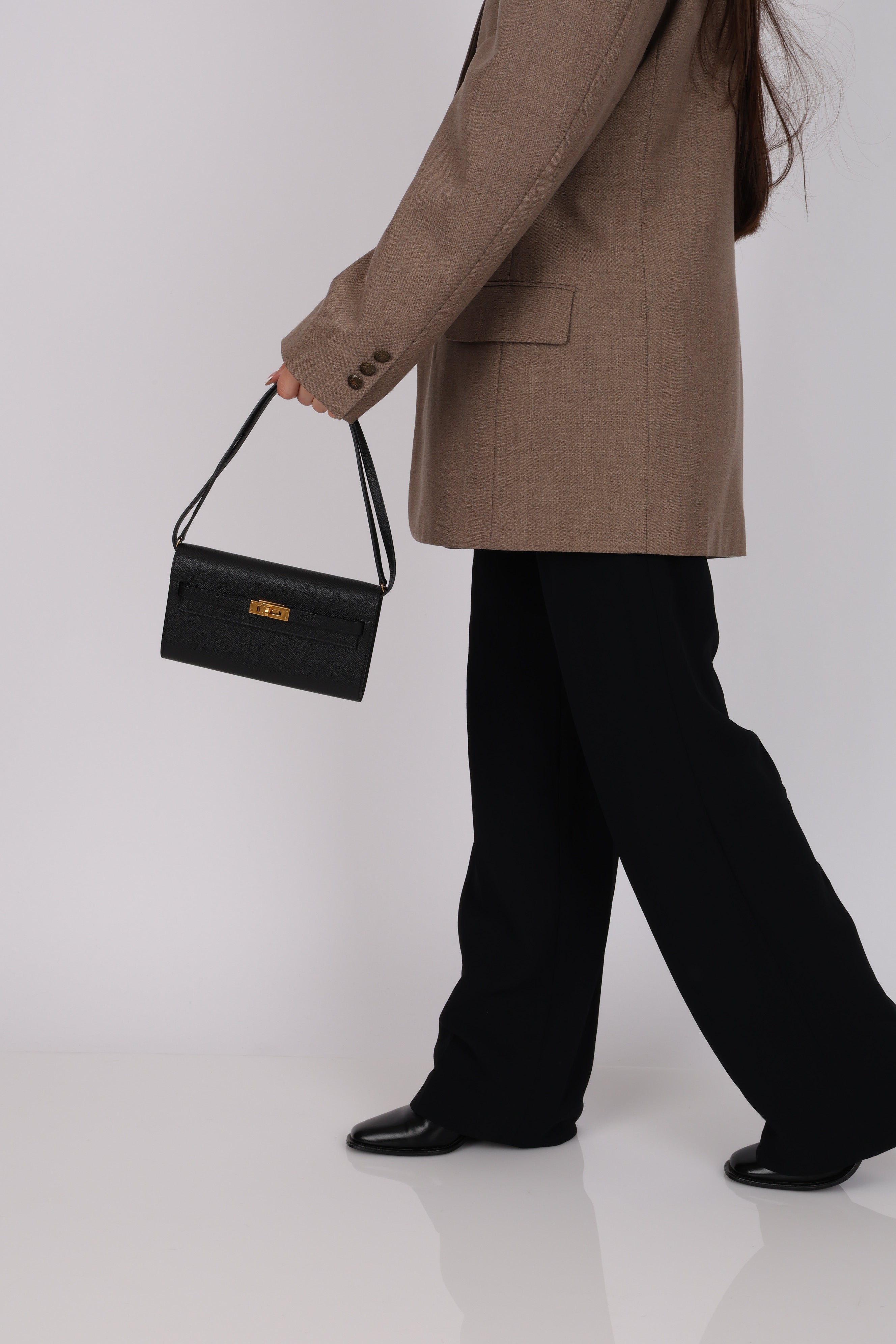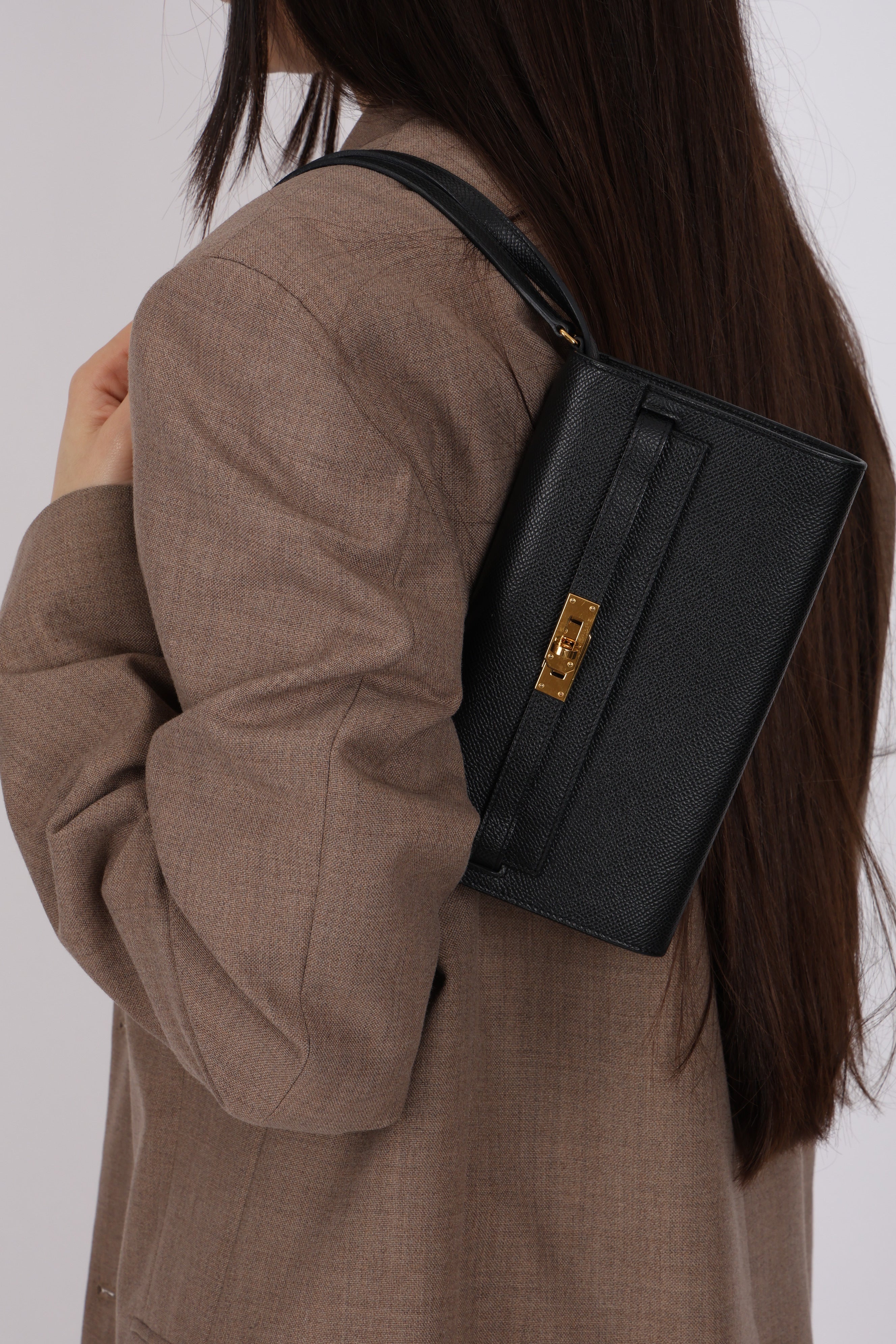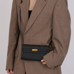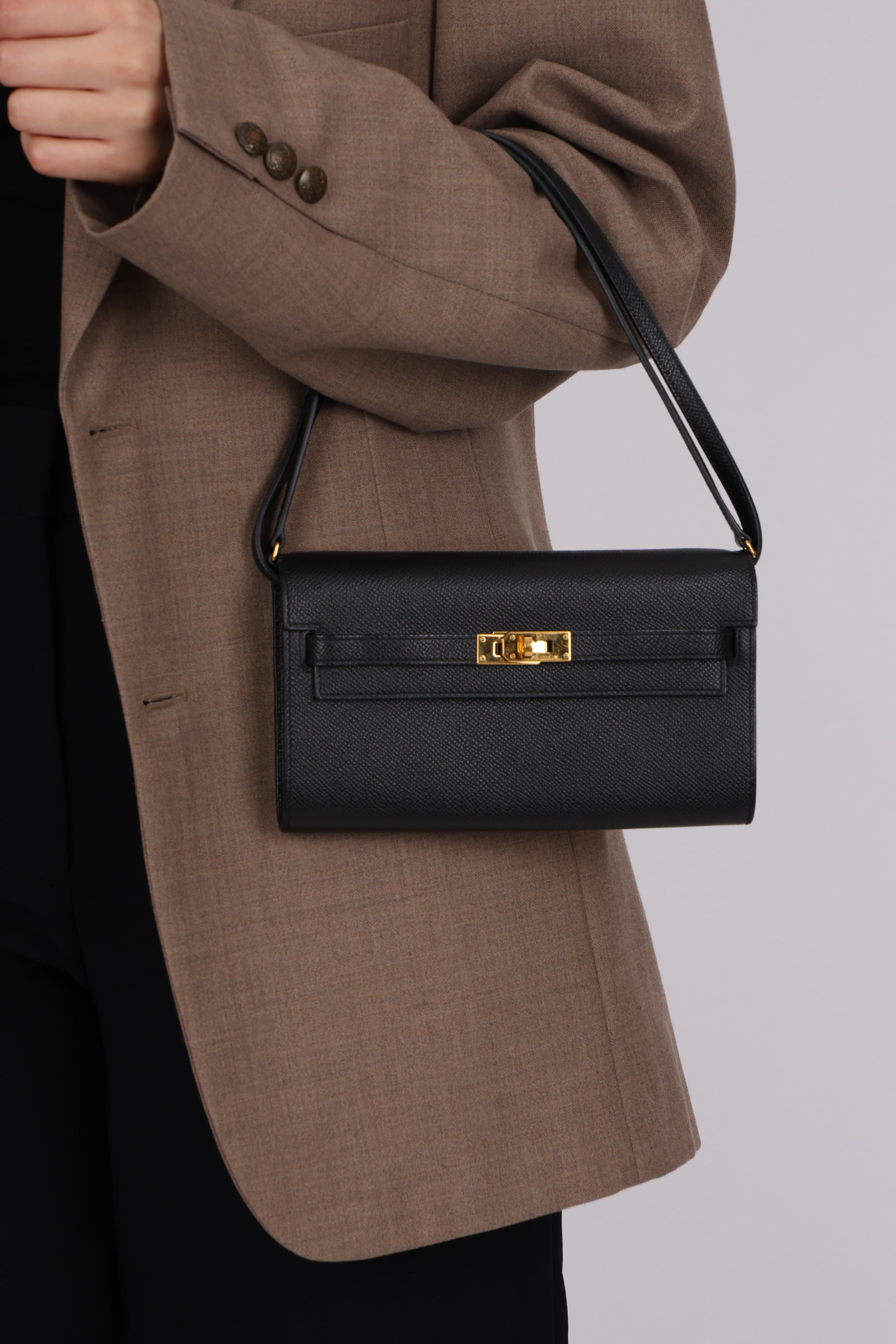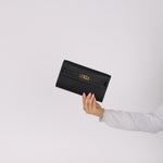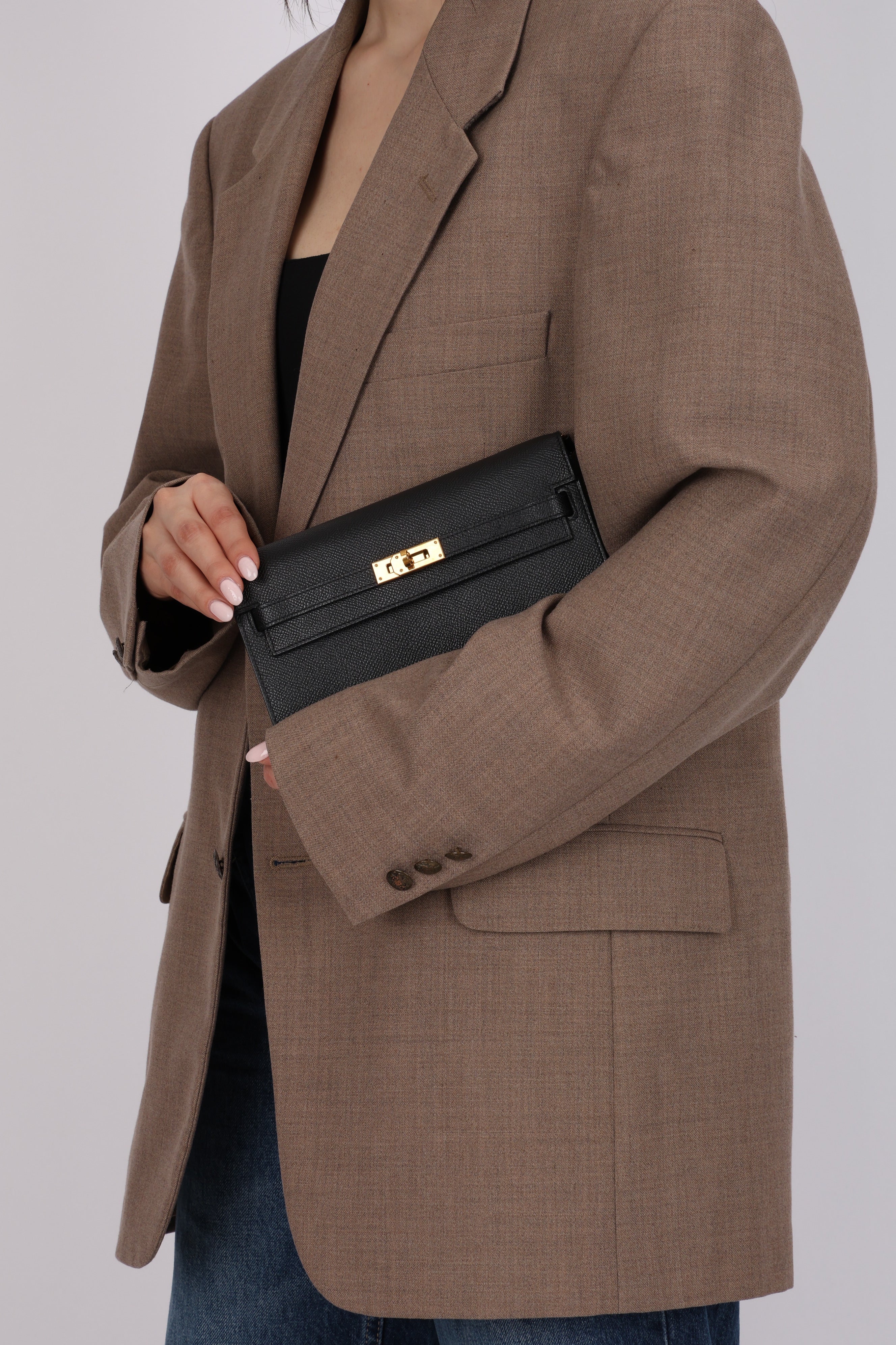Dropping in the shop is a chic Hermès Kelly Wallet in Noir with gold hardware! Crafted from stunning Epsom leather, you can use alongside a larger Hermès bag or as a crossbody/short shoulder bag with the turnlock open or closed!