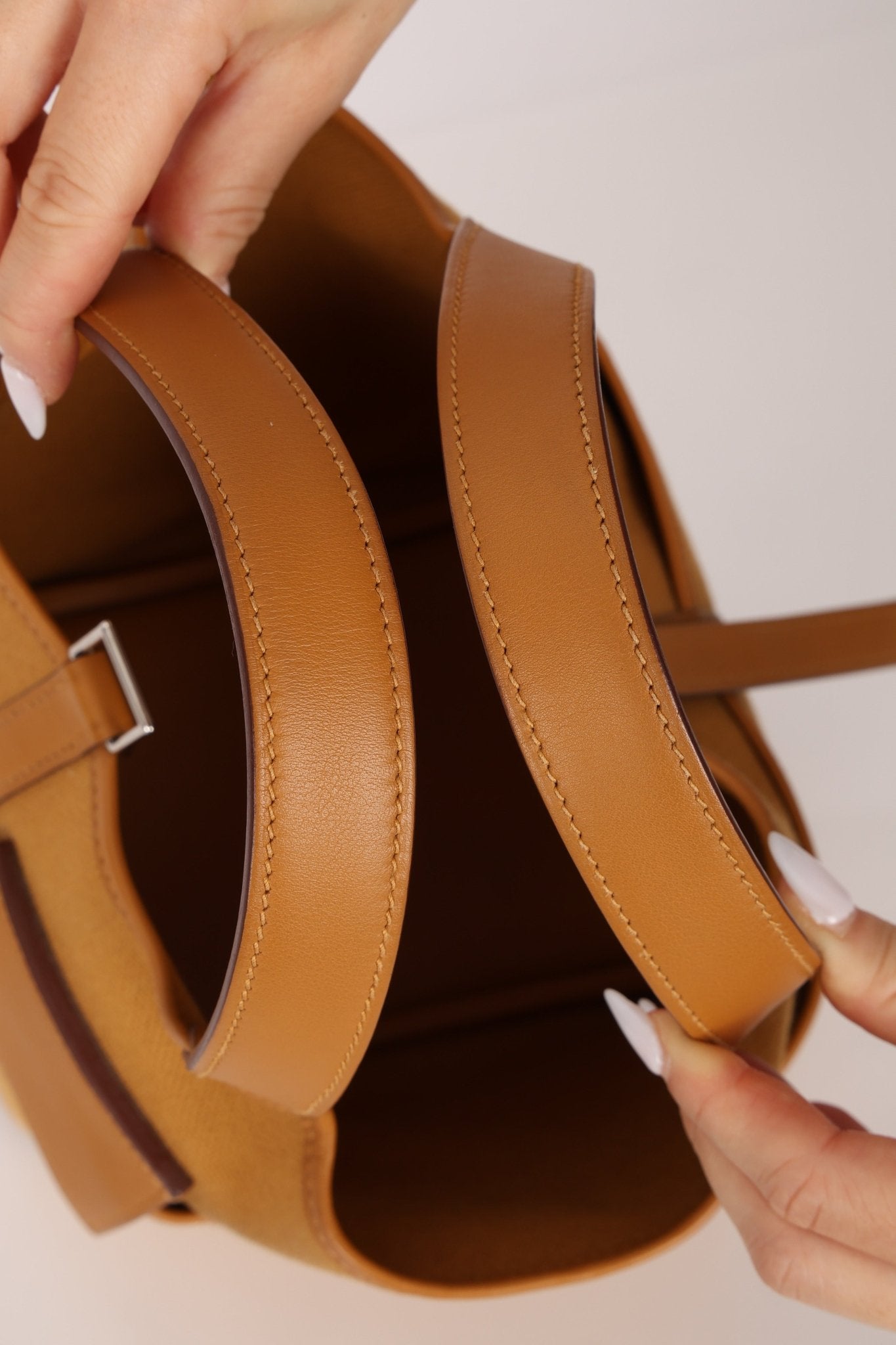 Twin with Nica! Discover the timeless elegance of this Hermès Cargo Picotin 18 PHW in the perfectly warm Sesame color, where classic design meets everyday functionality. This versatile bucket bag is perfect for adding a touch of practical sophistication to any outfit.