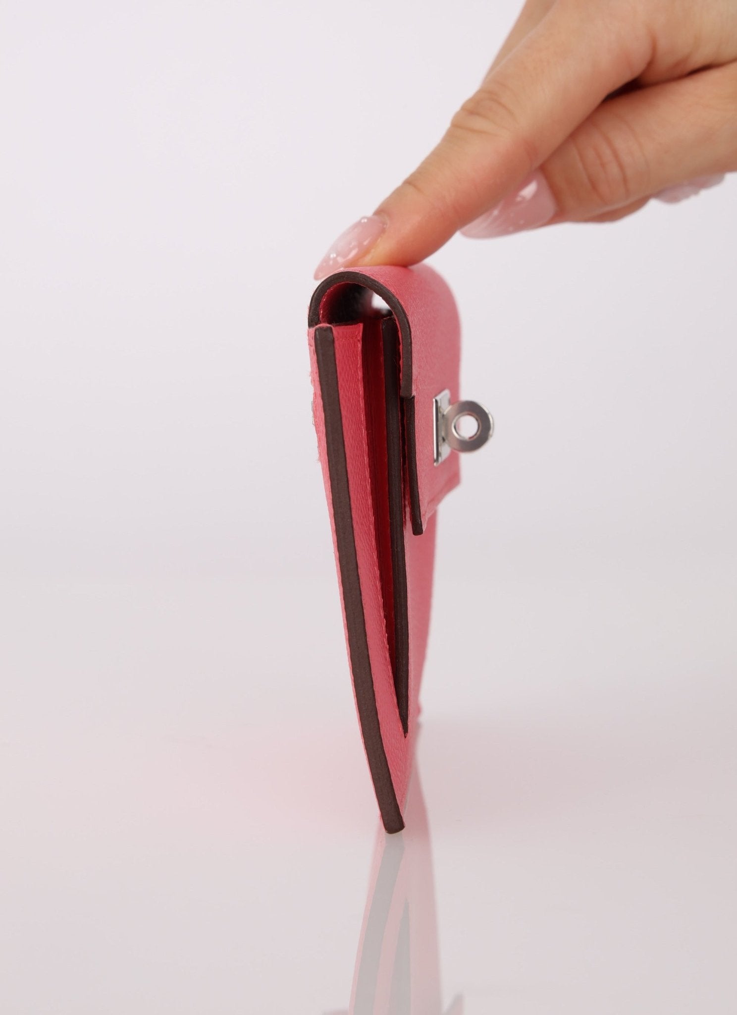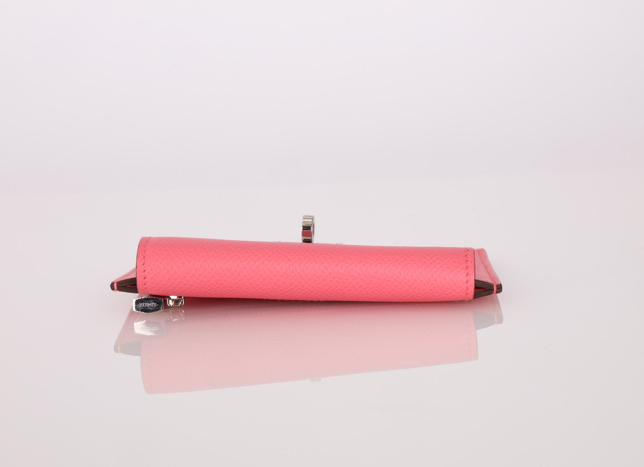 The Hermès Kelly Pocket Compact Wallet in radiant Rose Azalée offers the perfect pop of pink to brighten your collection—playful yet polished, it's a standout shade in a compact silhouette.