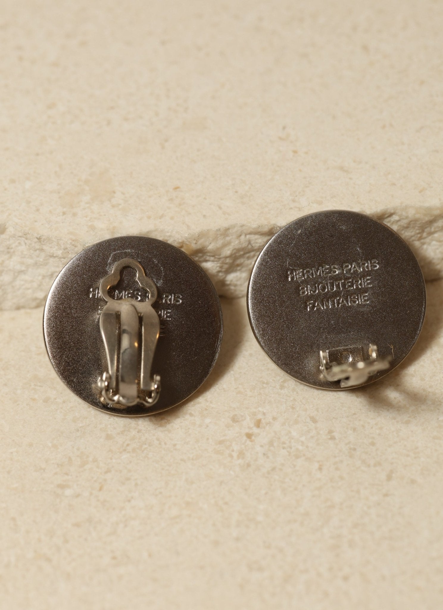 Hermès Silver Matte Clou de Selle Clip-On Earrings
