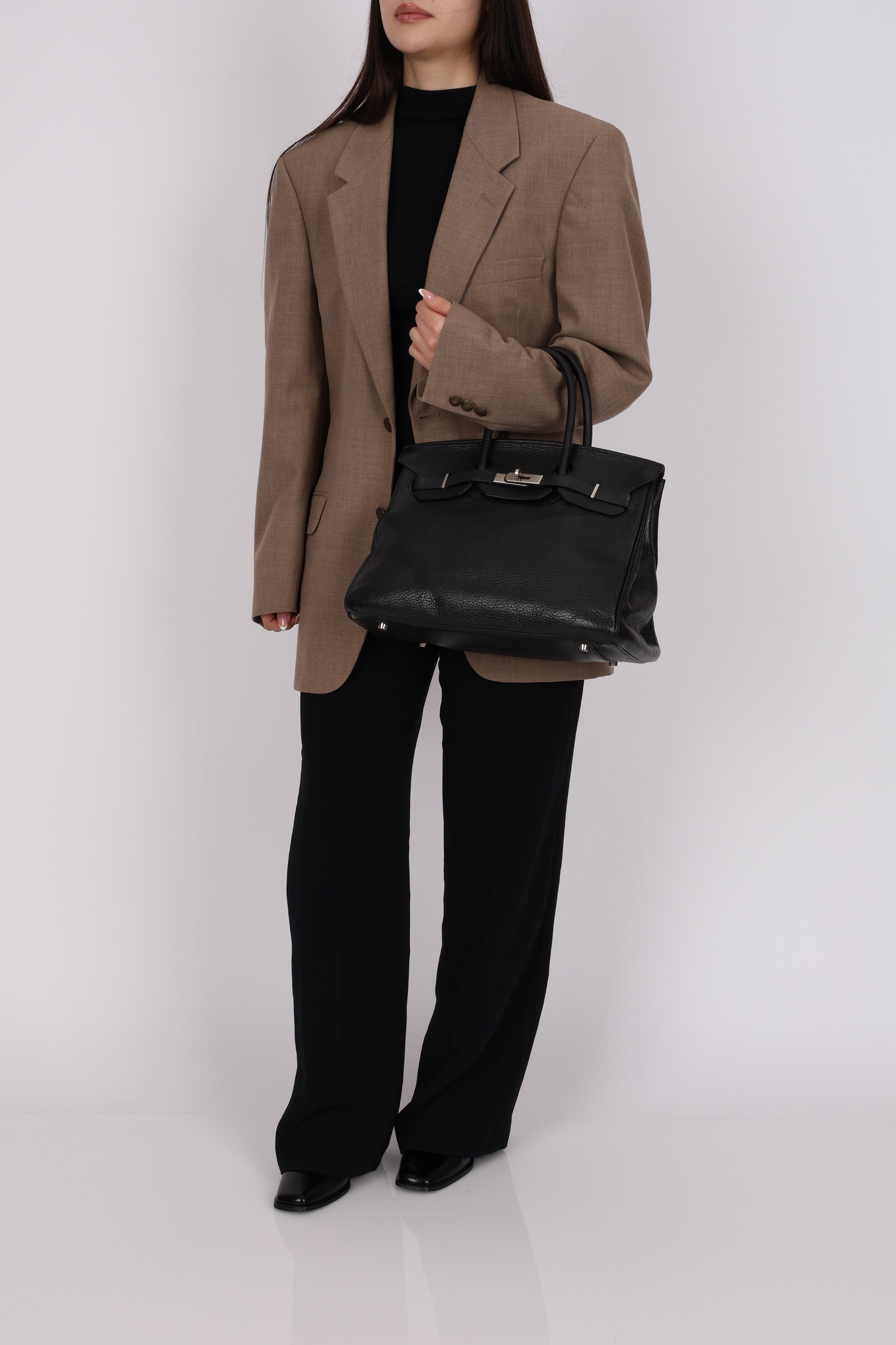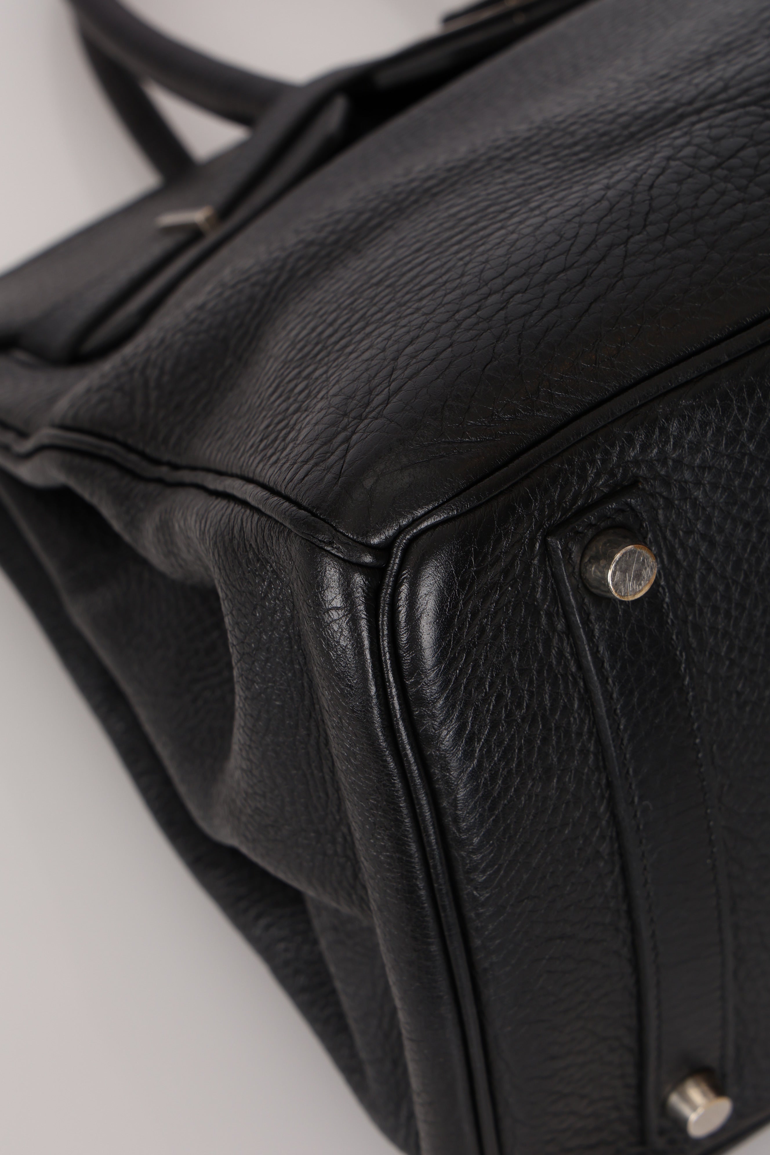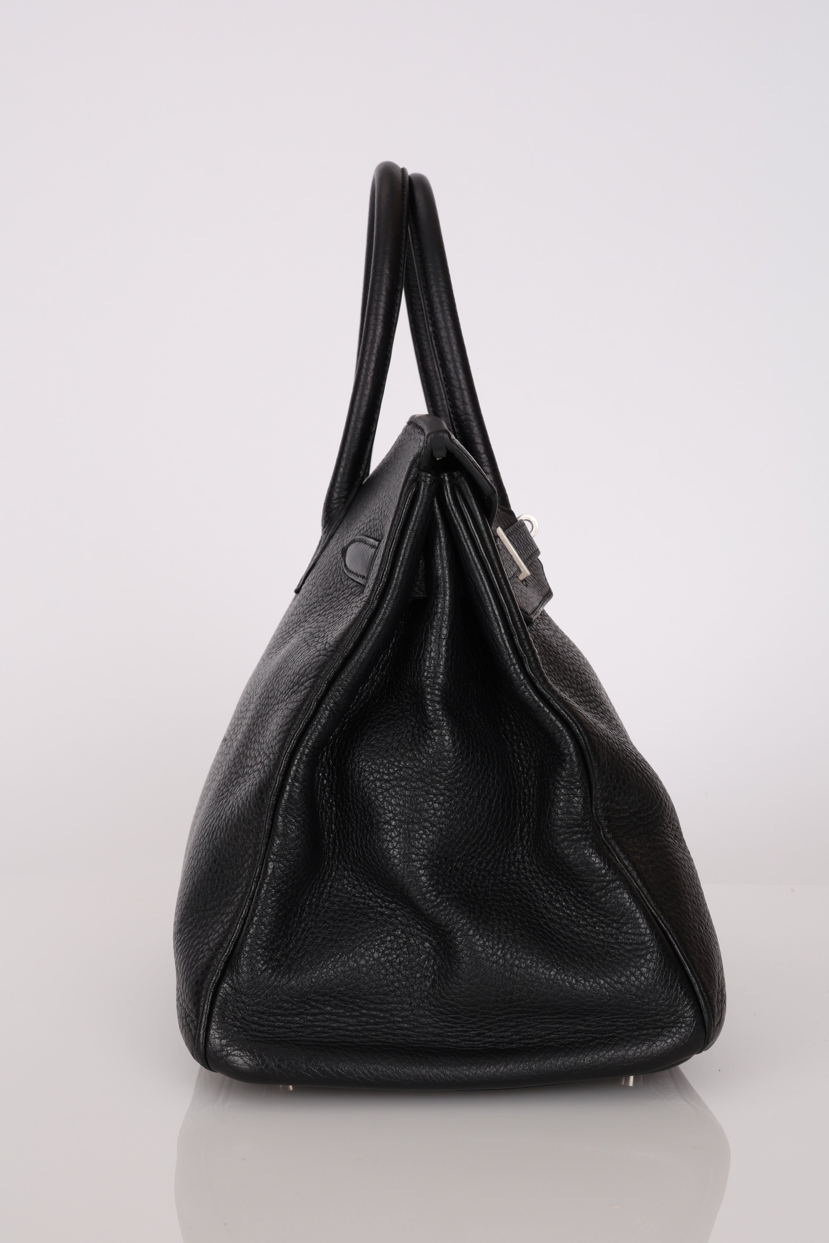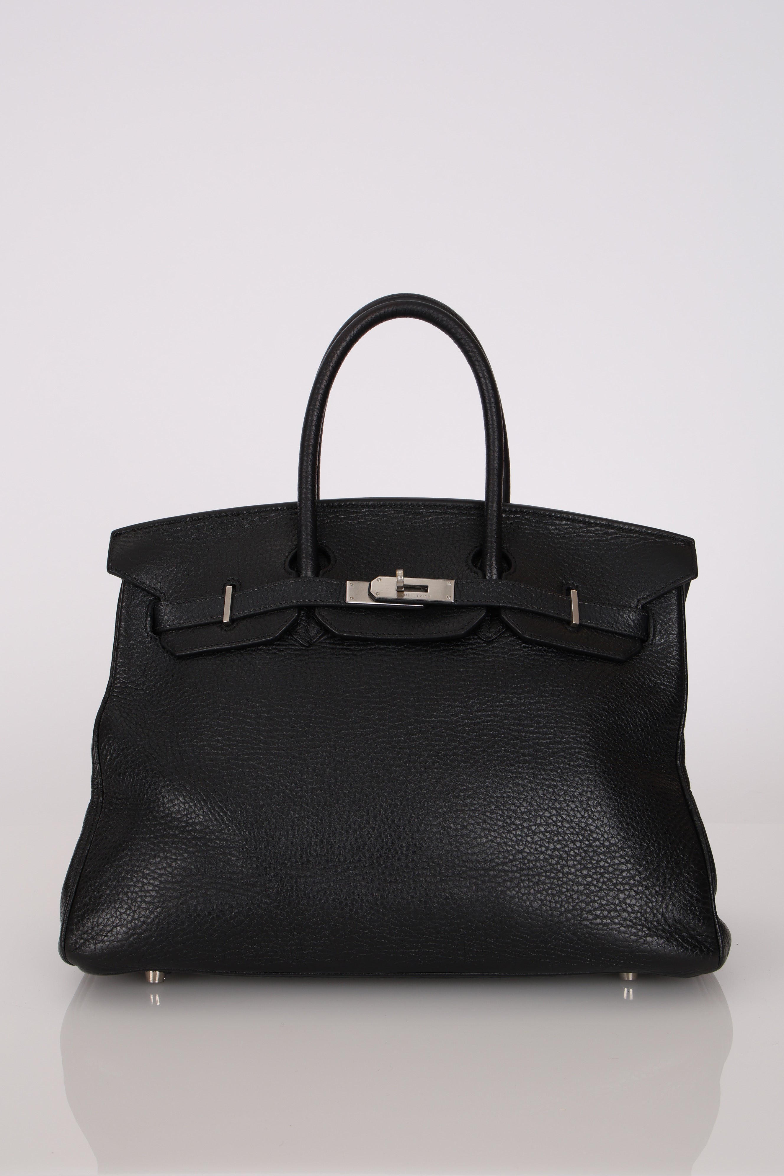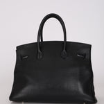 Rare Hermès 2001 Noir Taurillon Clemence Retourne Birkin 35 Brushed PHW