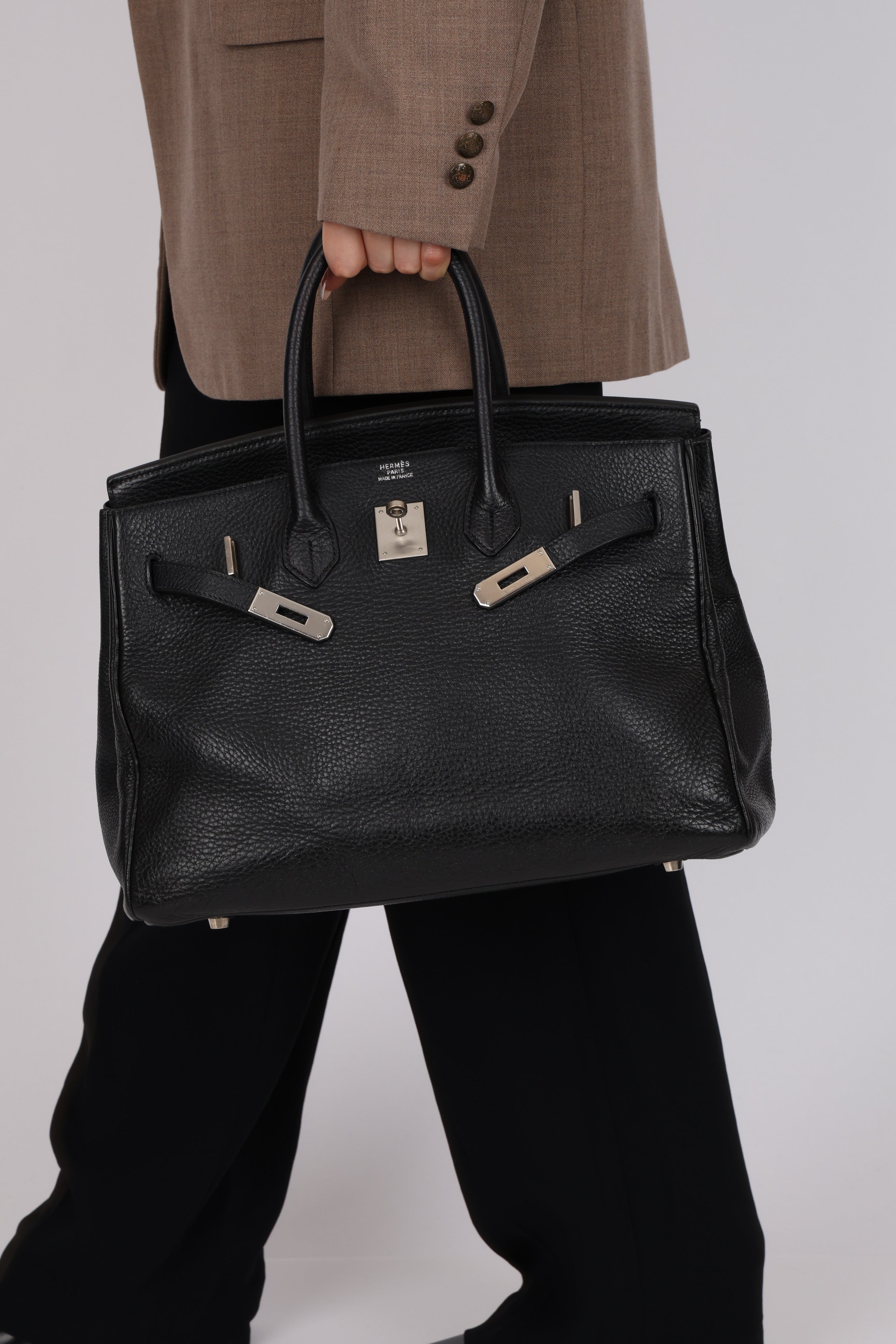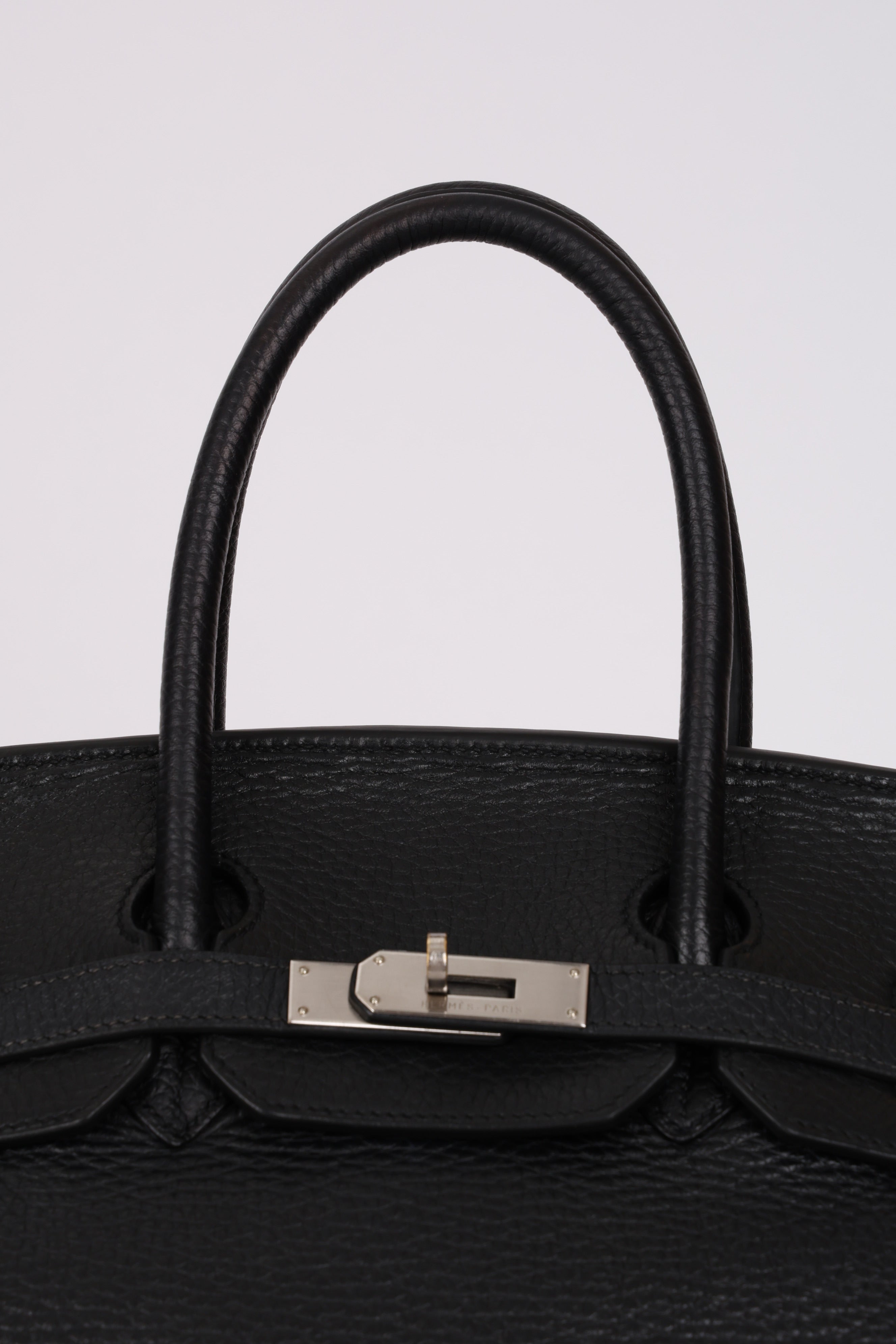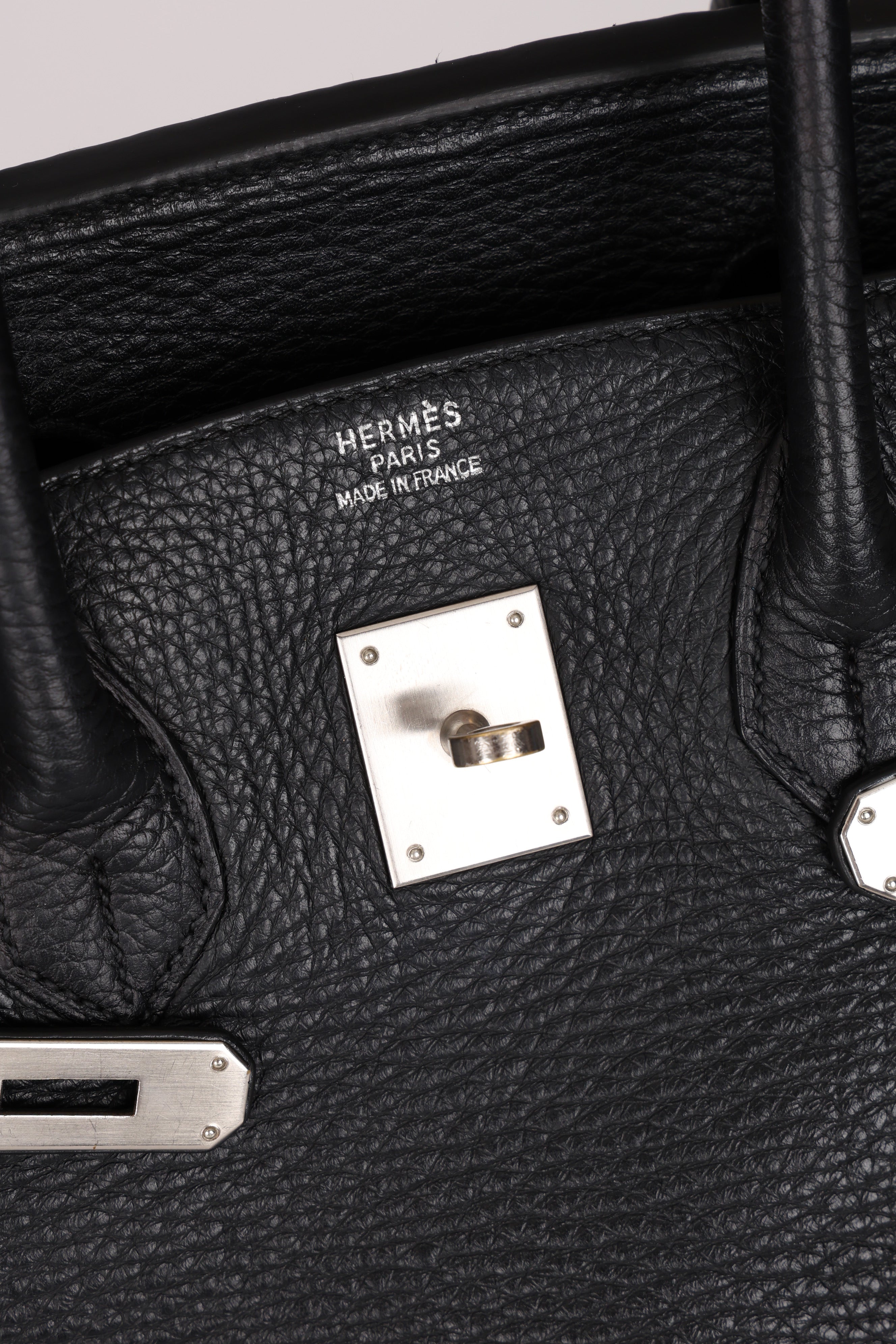 This iconic Birkin 35 in Noir Taurillon Clemence holds a subtle yet compelling distinction: rare brushed palladium hardware. Produced far less frequently than classic gold or polished palladium, this understated finish is typically reserved for special orders, limited runs, or discreet seasonal releases. Its soft, matte appearance, paired with exceptional durability, makes it especially coveted by seasoned collectors seeking a Birkin that is both distinctive and timeless.