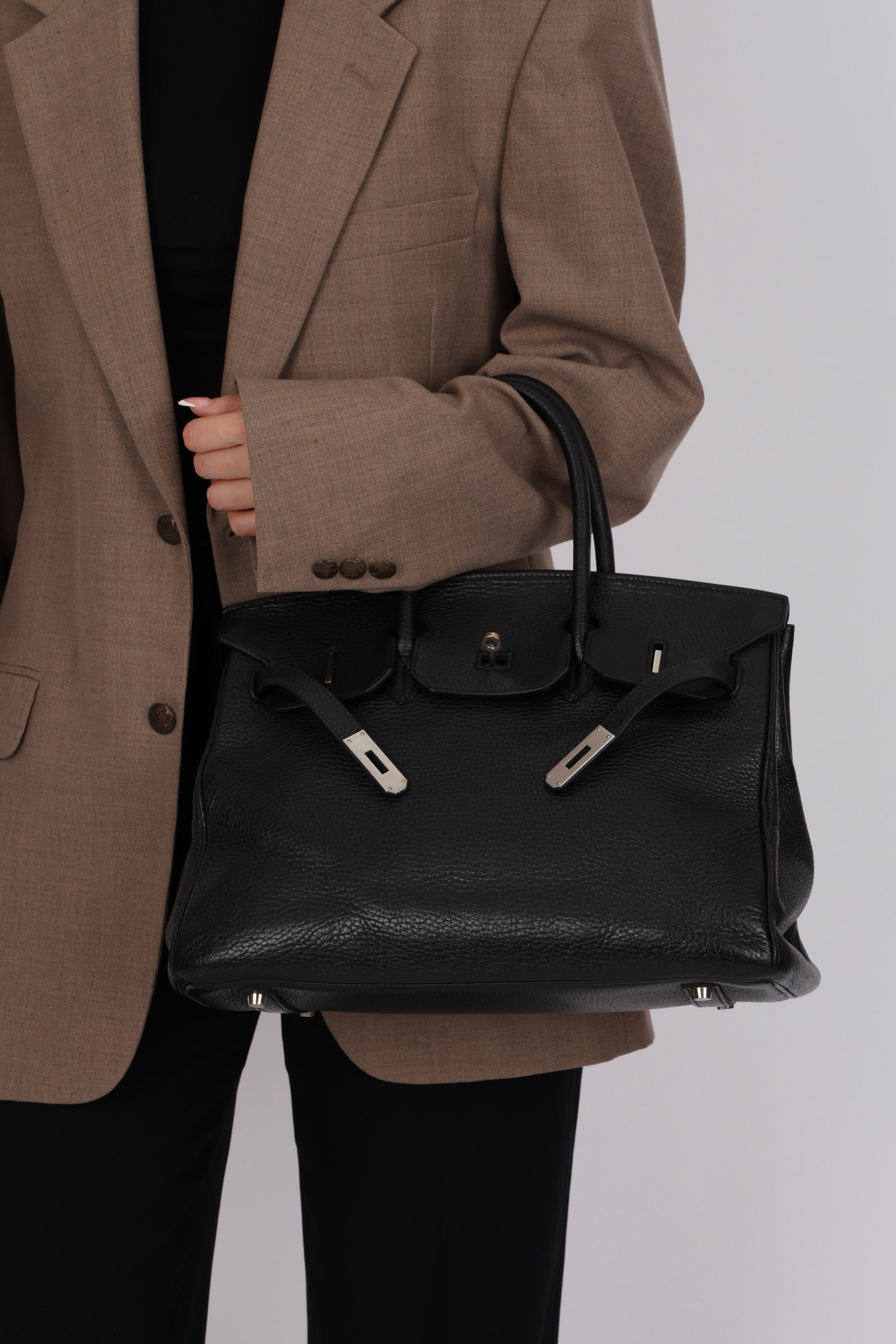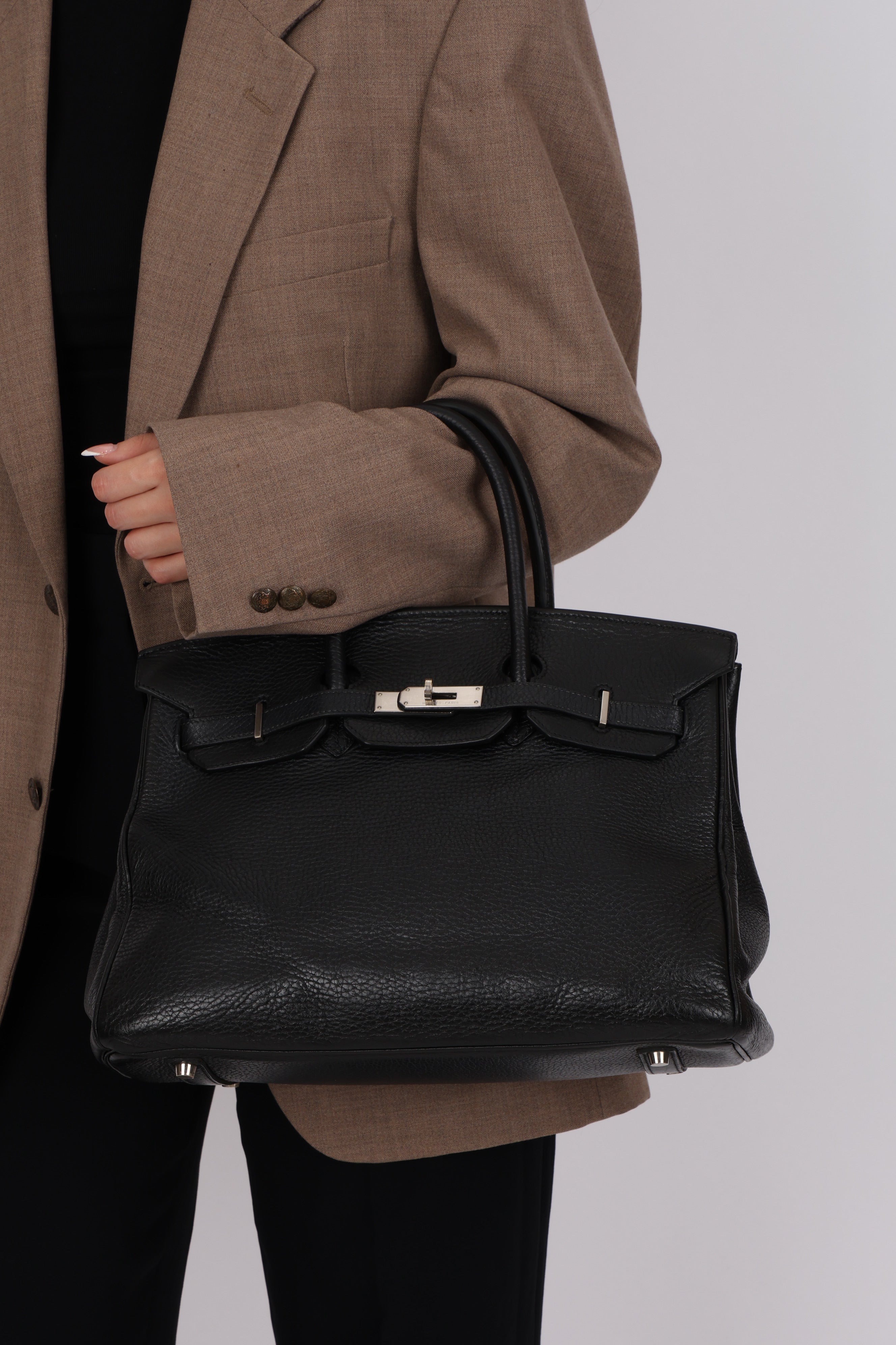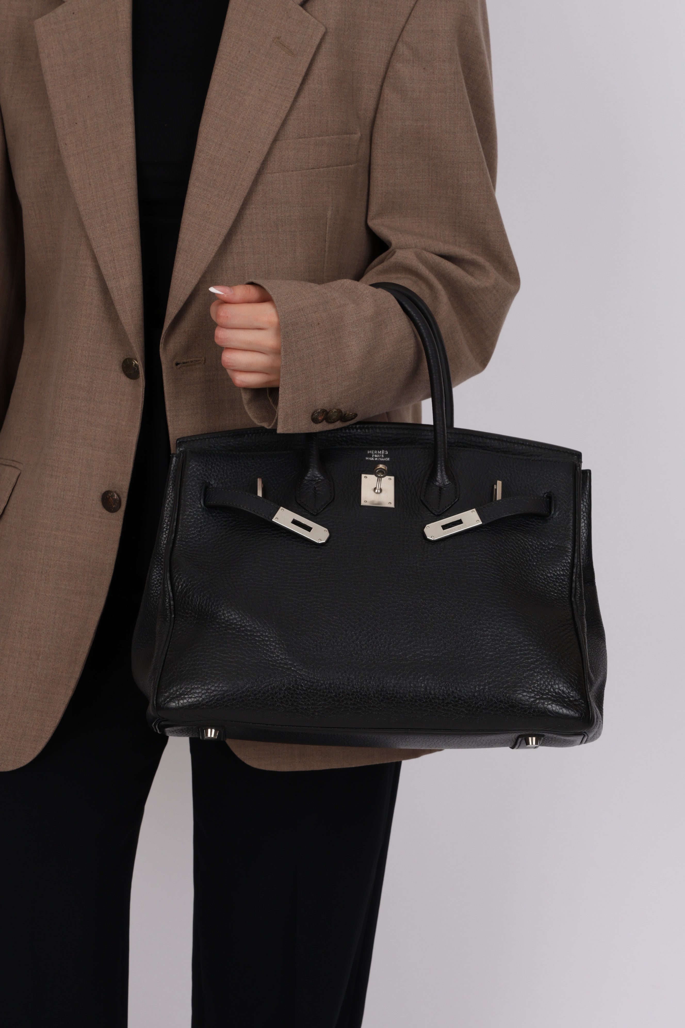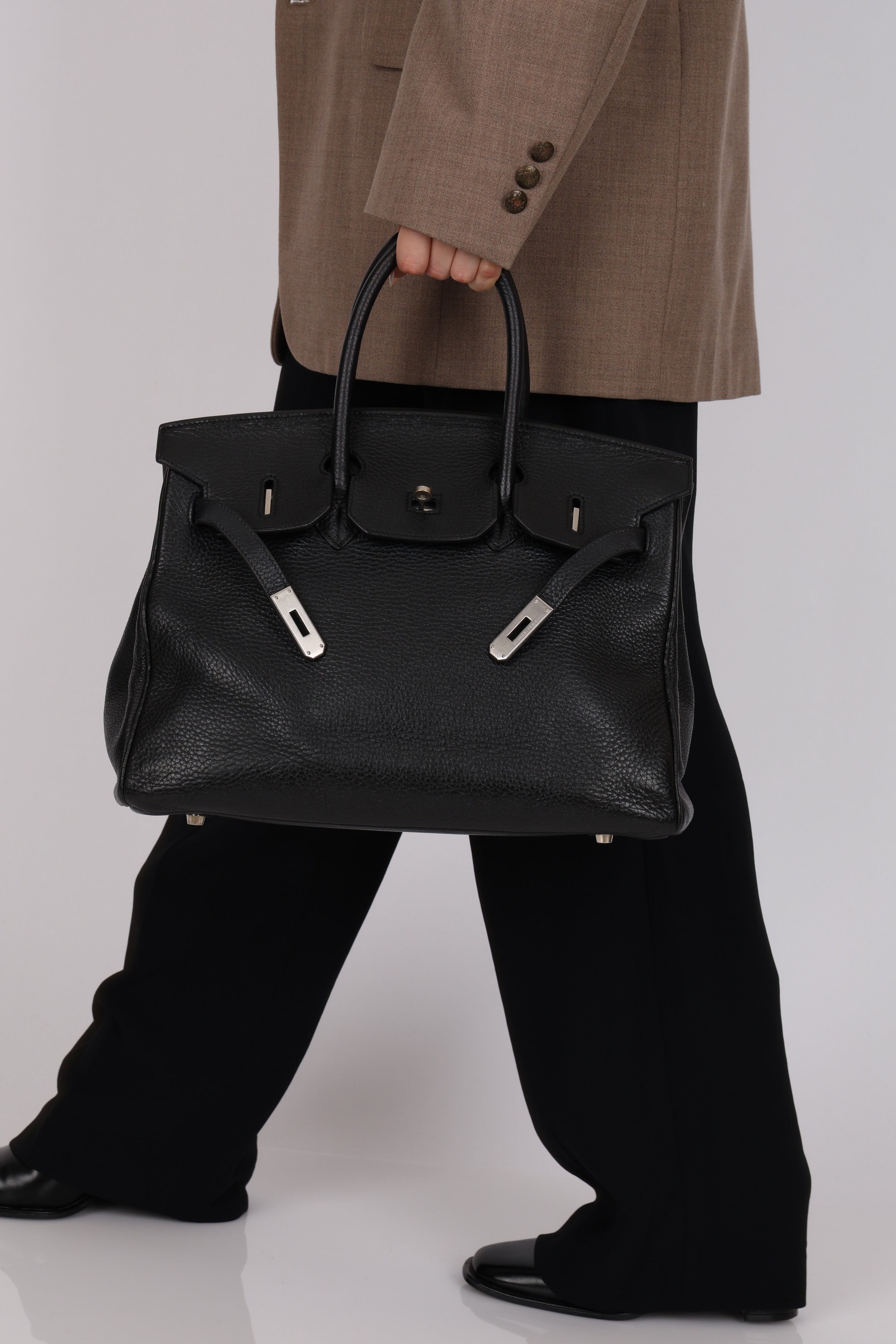 This iconic Birkin 35 in Noir Taurillon Clemence holds a subtle yet compelling distinction: rare brushed palladium hardware. Produced far less frequently than classic gold or polished palladium, this understated finish is typically reserved for special orders, limited runs, or discreet seasonal releases. Its soft, matte appearance, paired with exceptional durability, makes it especially coveted by seasoned collectors seeking a Birkin that is both distinctive and timeless.