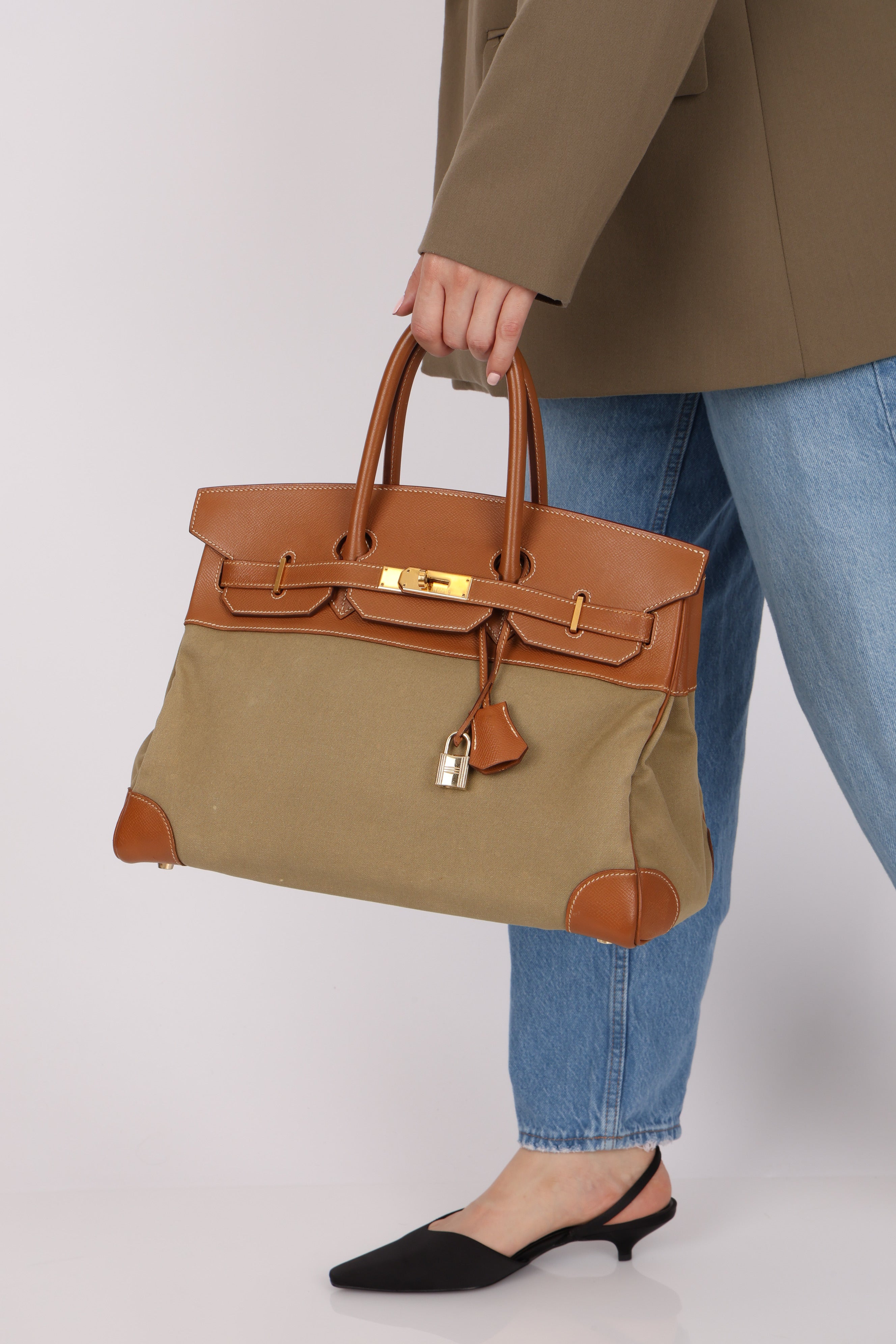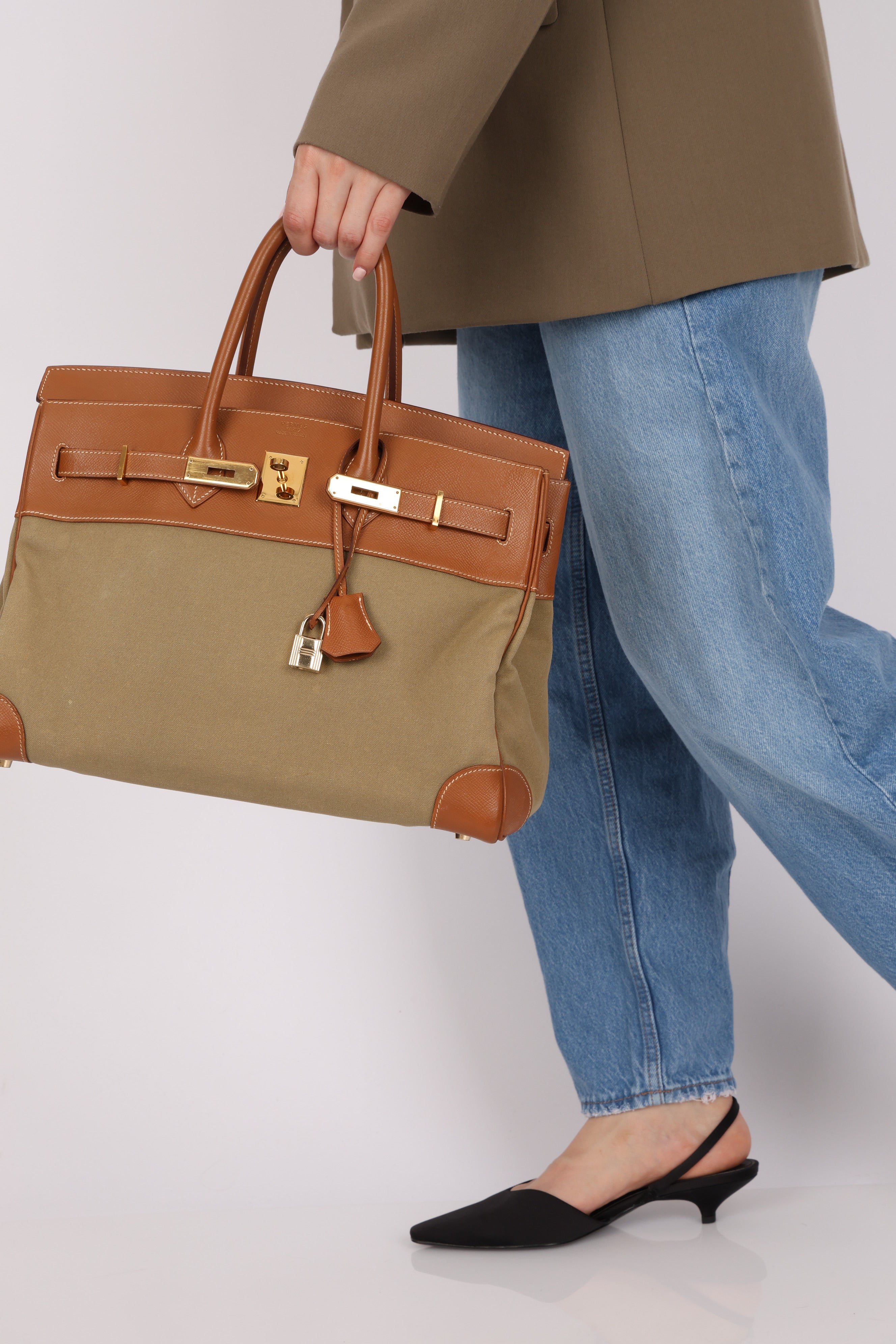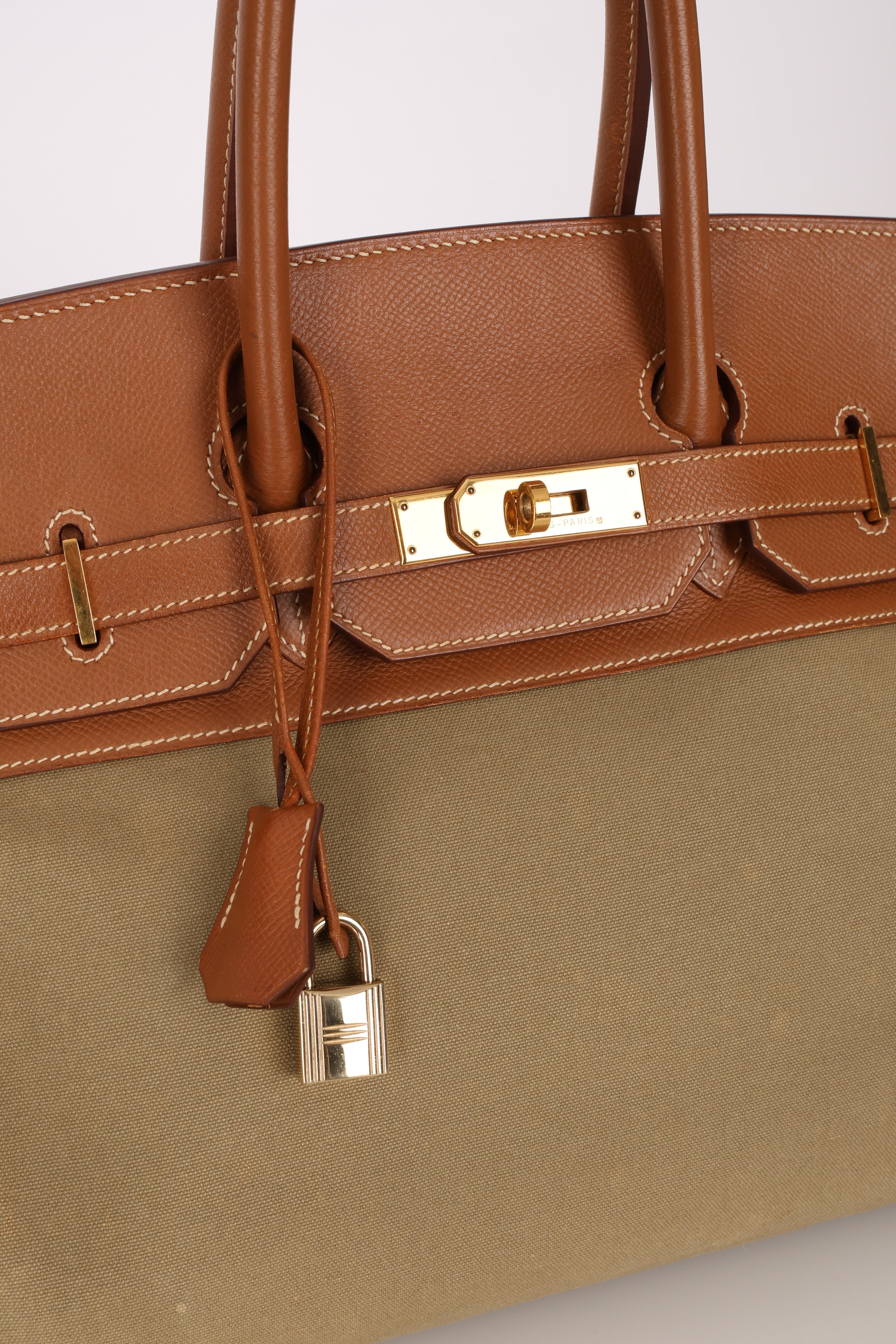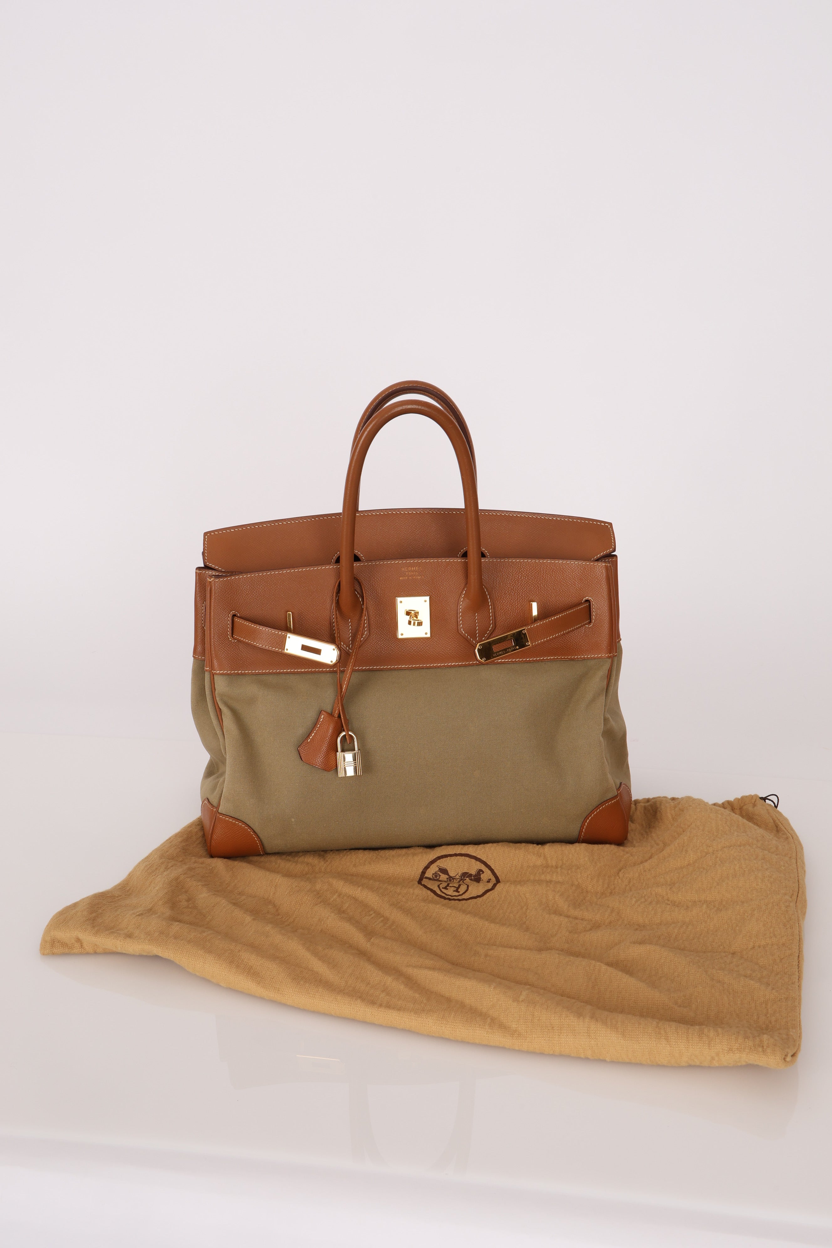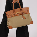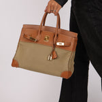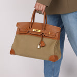 Limited Edition Hermès 1998 Vache Naturelle and Khaki Toile Birkin 35 GHW