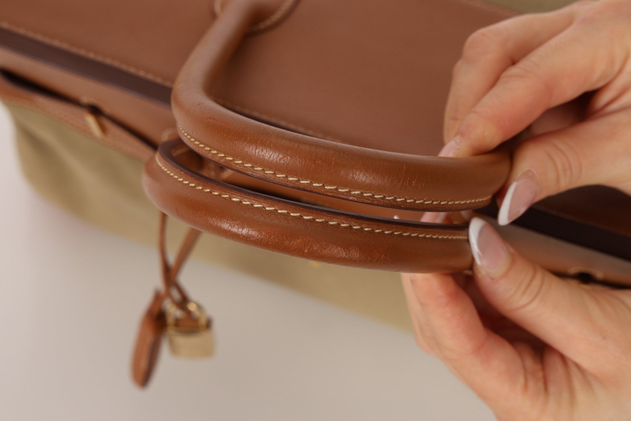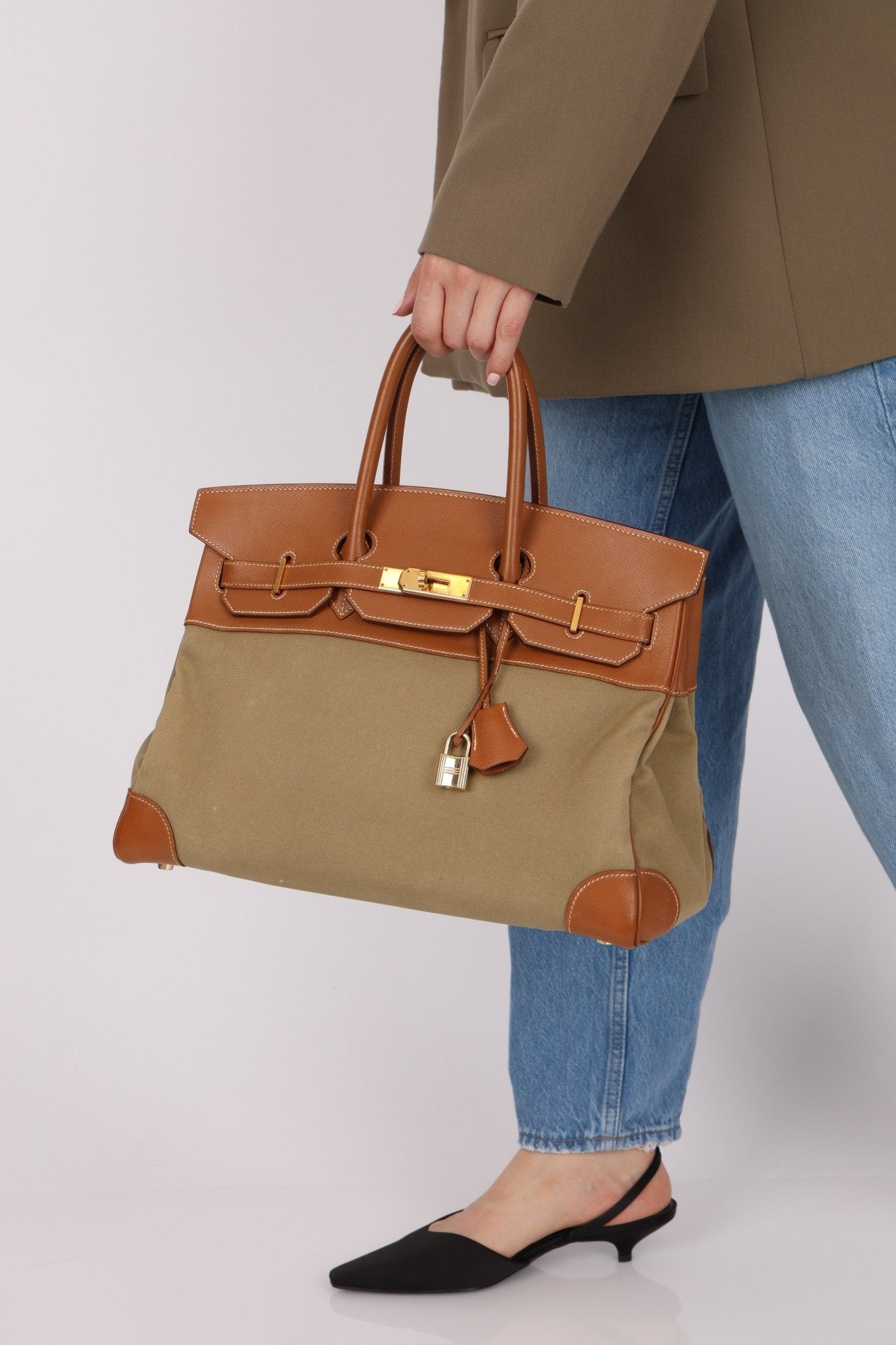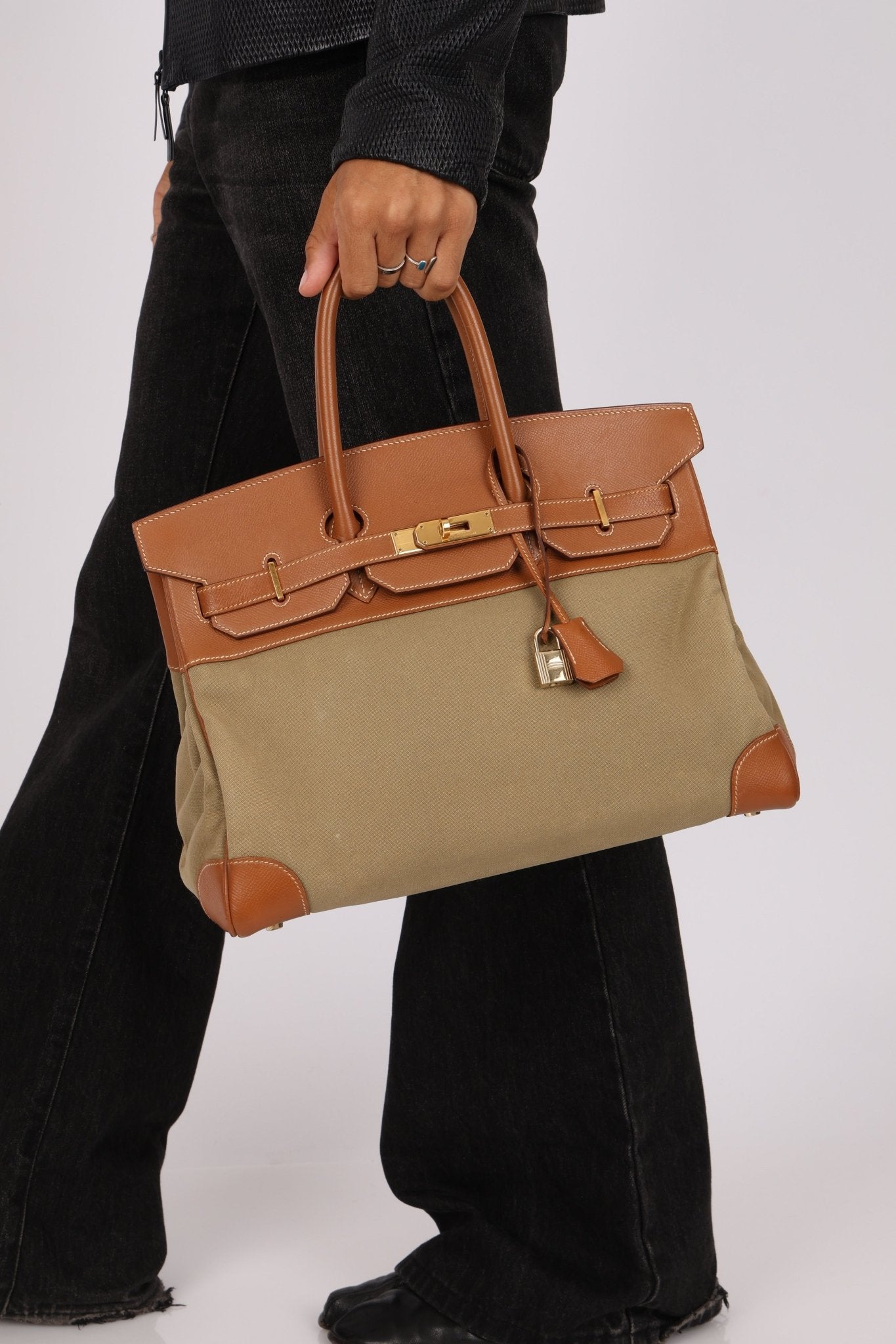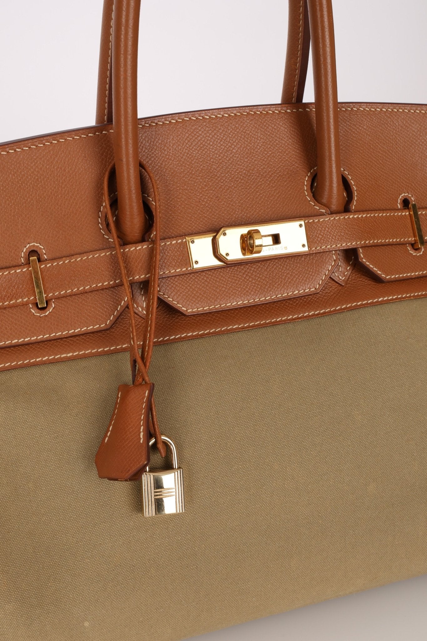 Limited Edition Hermès 1998 Vache Naturelle and Khaki Toile Birkin 35 GHW - FashioNica