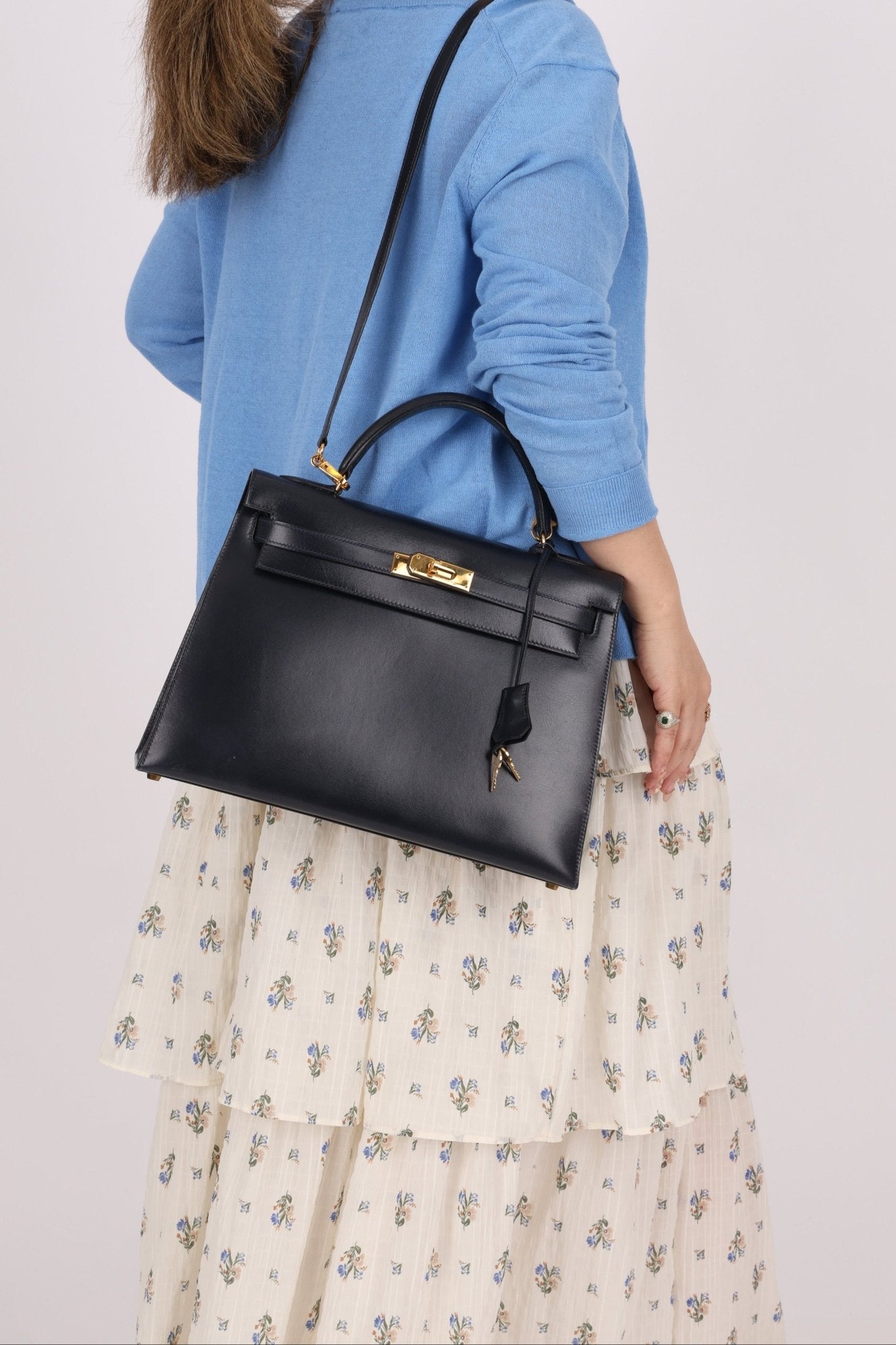 Hermès 1966 Bleu Marine Boxcalf Sellier Kelly 32 GHW - FashioNica