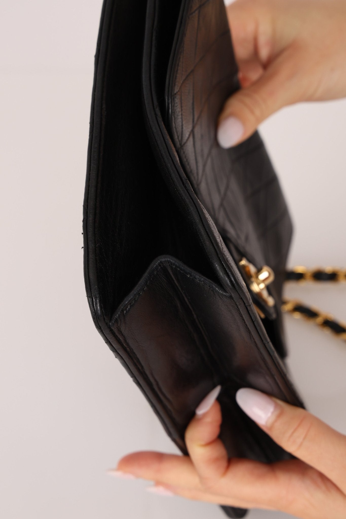 This stunning black Chanel 2004 Lambskin Turnlock Square Single Half Flap is a timeless piece that can be loved for years to come! This specific one features a turnlock closure, making it an exciting find. It's a spacious classic to add to your collection, and can be used often.