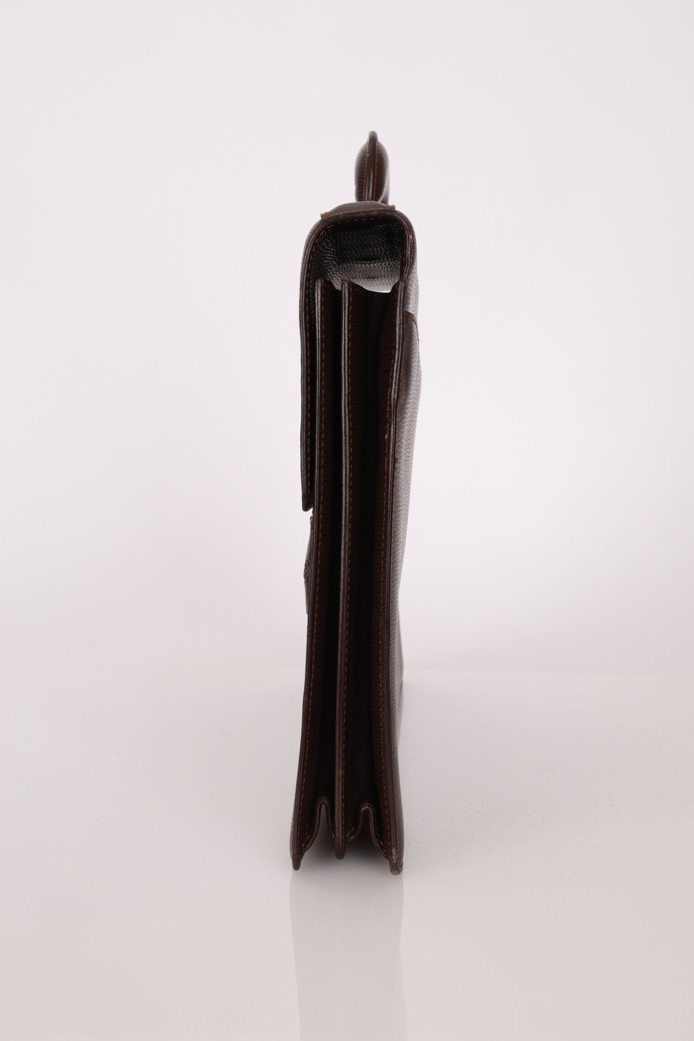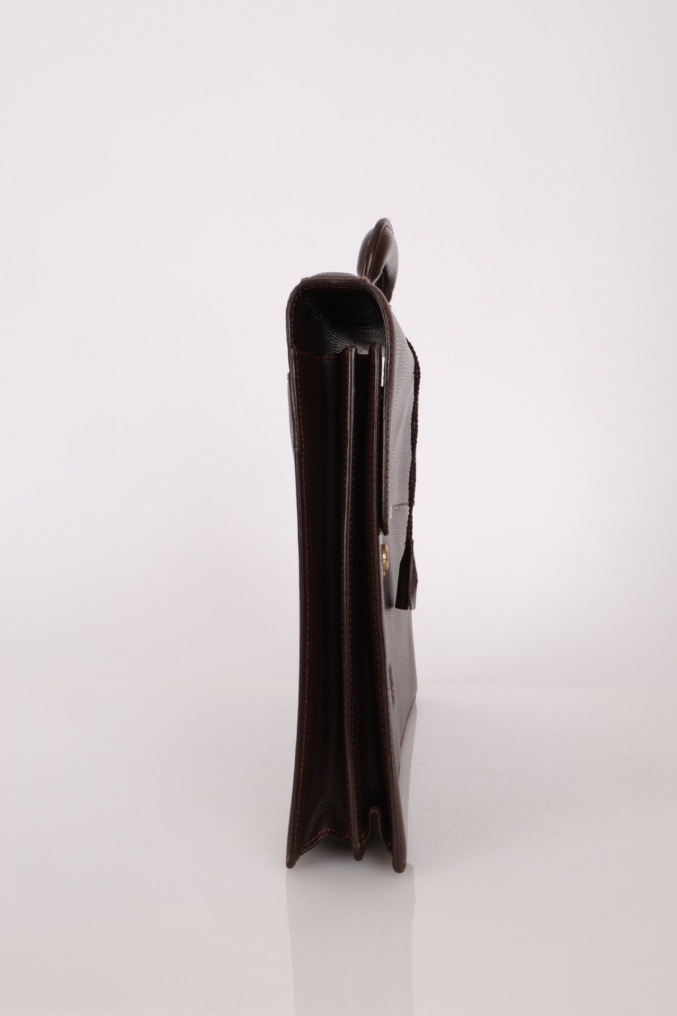 Light scratches on hardware. Normal wear on leather. Rubbing on briefcase top handle & corners.