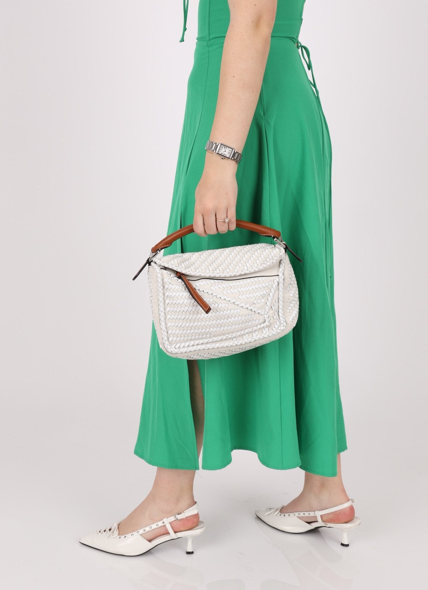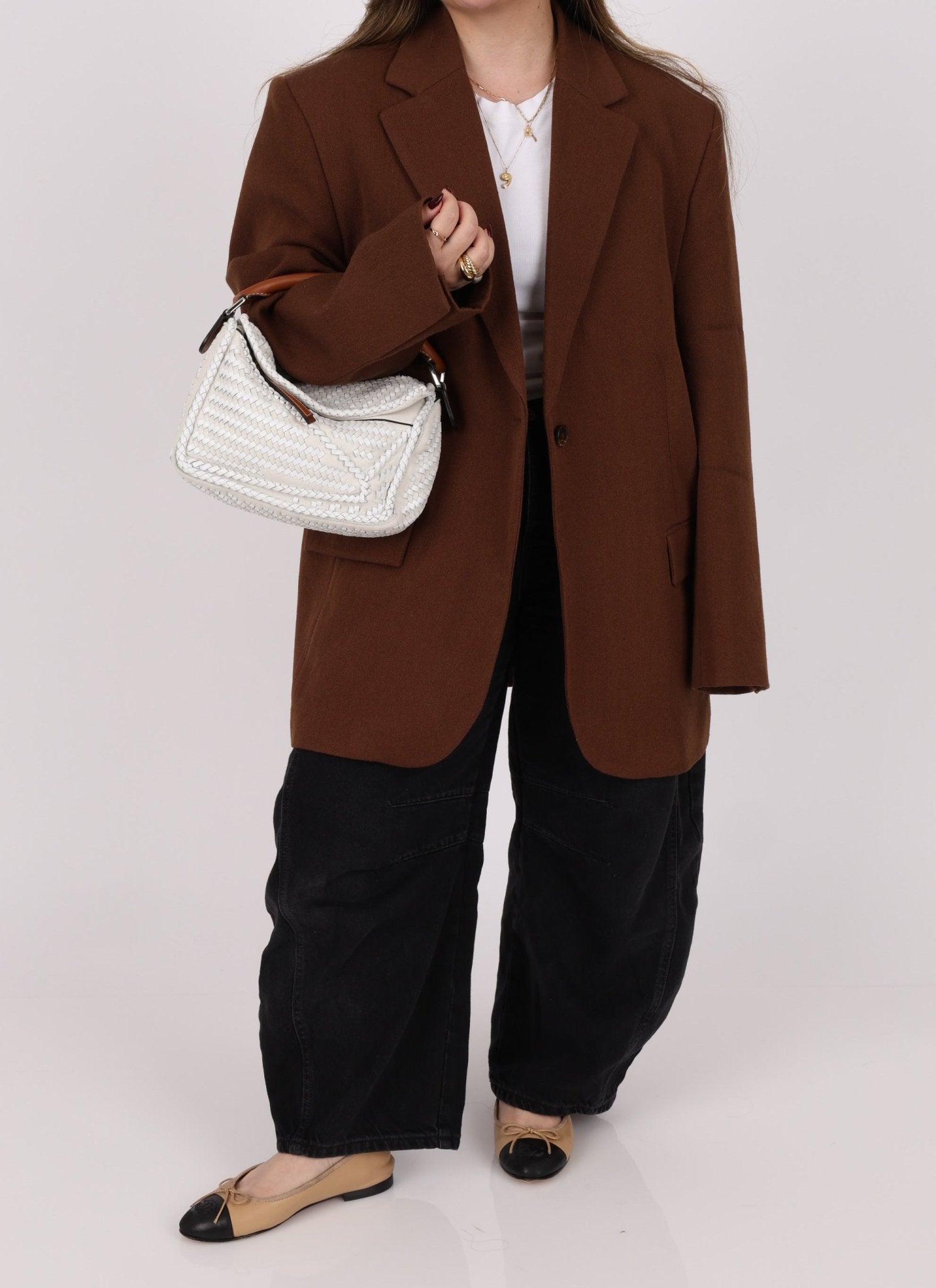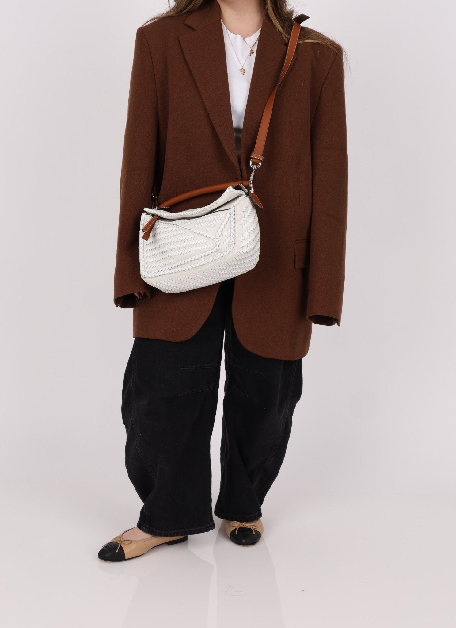 Twin with Nica! The Puzzle Bag marked Jonathan Anderson’s debut at LOEWE, instantly recognizable for its cuboid shape and meticulously cut geometric panels. This rare white woven edition is the perfect piece to carry you from spring into summer with effortless style. P.S. You may have already spotted her in a certain @xofashionica Instagram video last Friday!