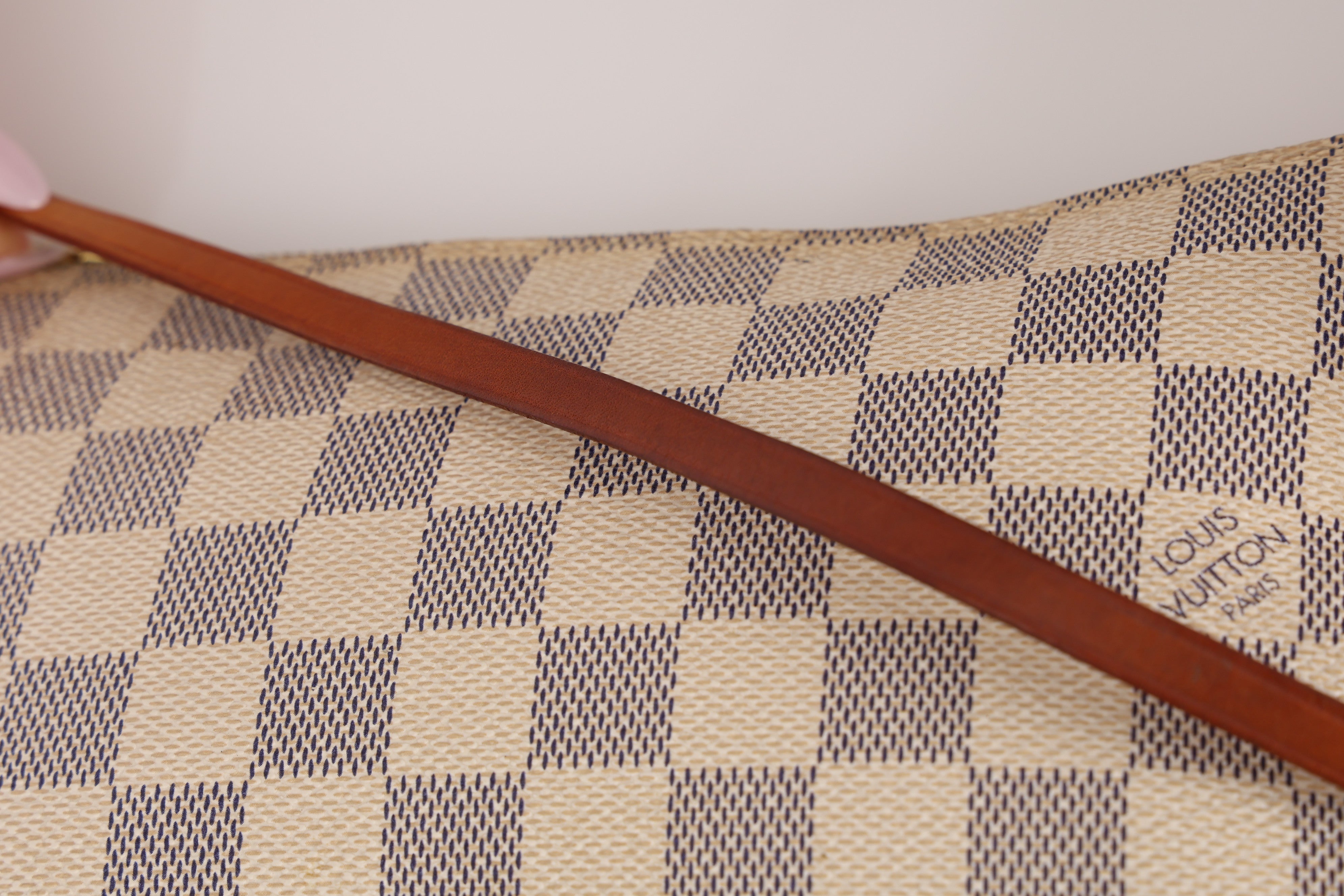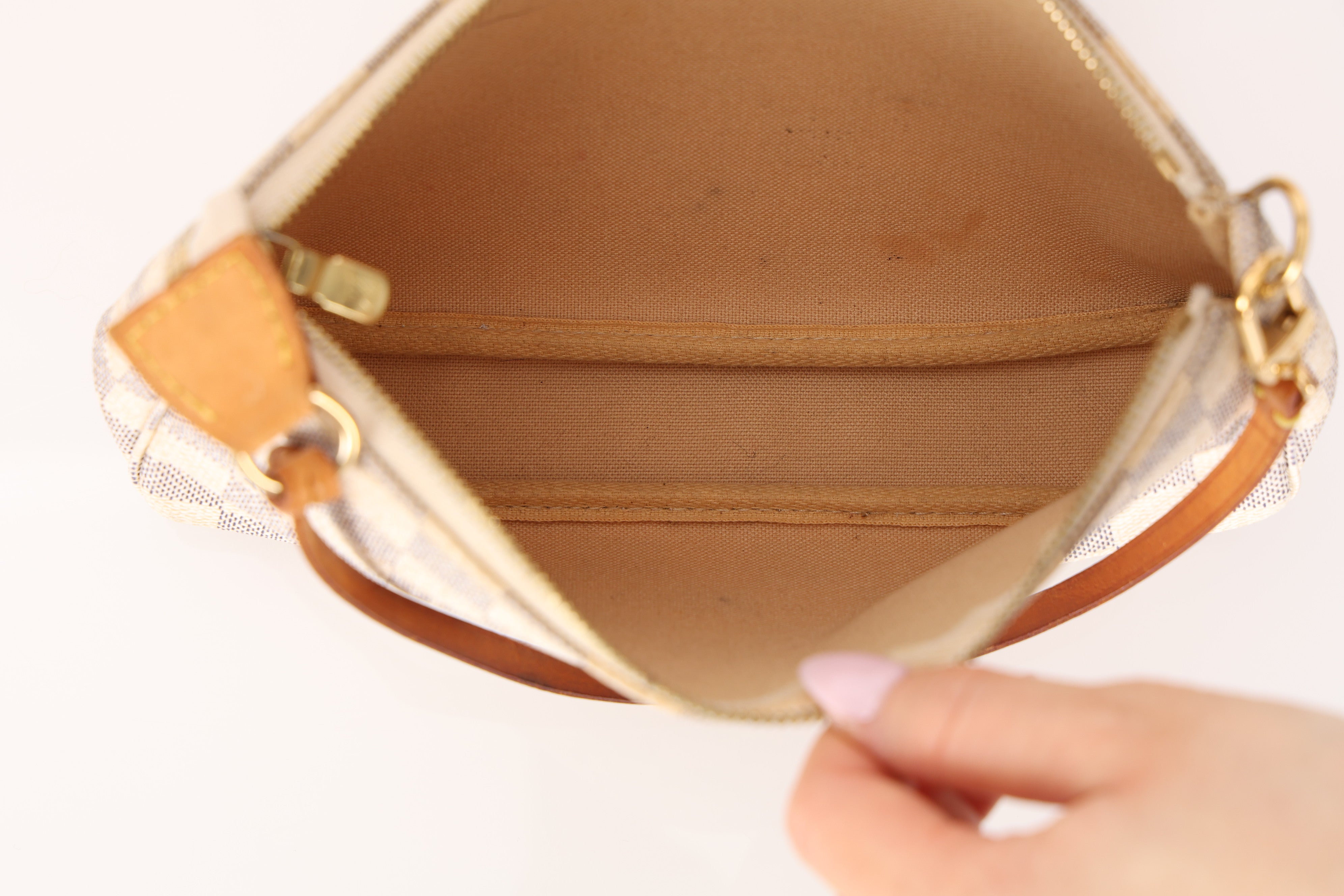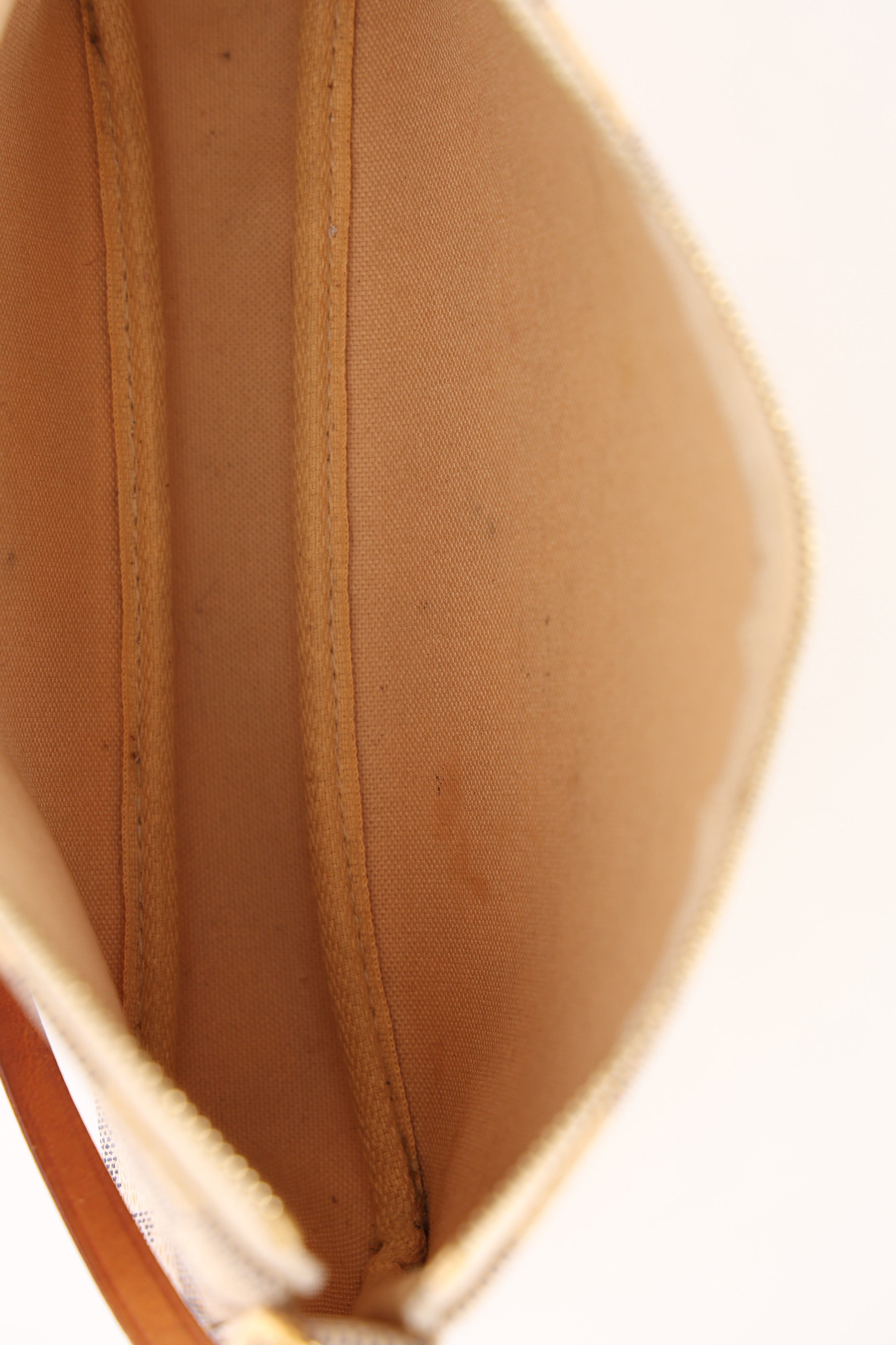 Light scratches on hardware. Honey patina to vachetta. Marks on vachetta. Normal wear throughout canvas. Mark on interior.