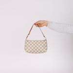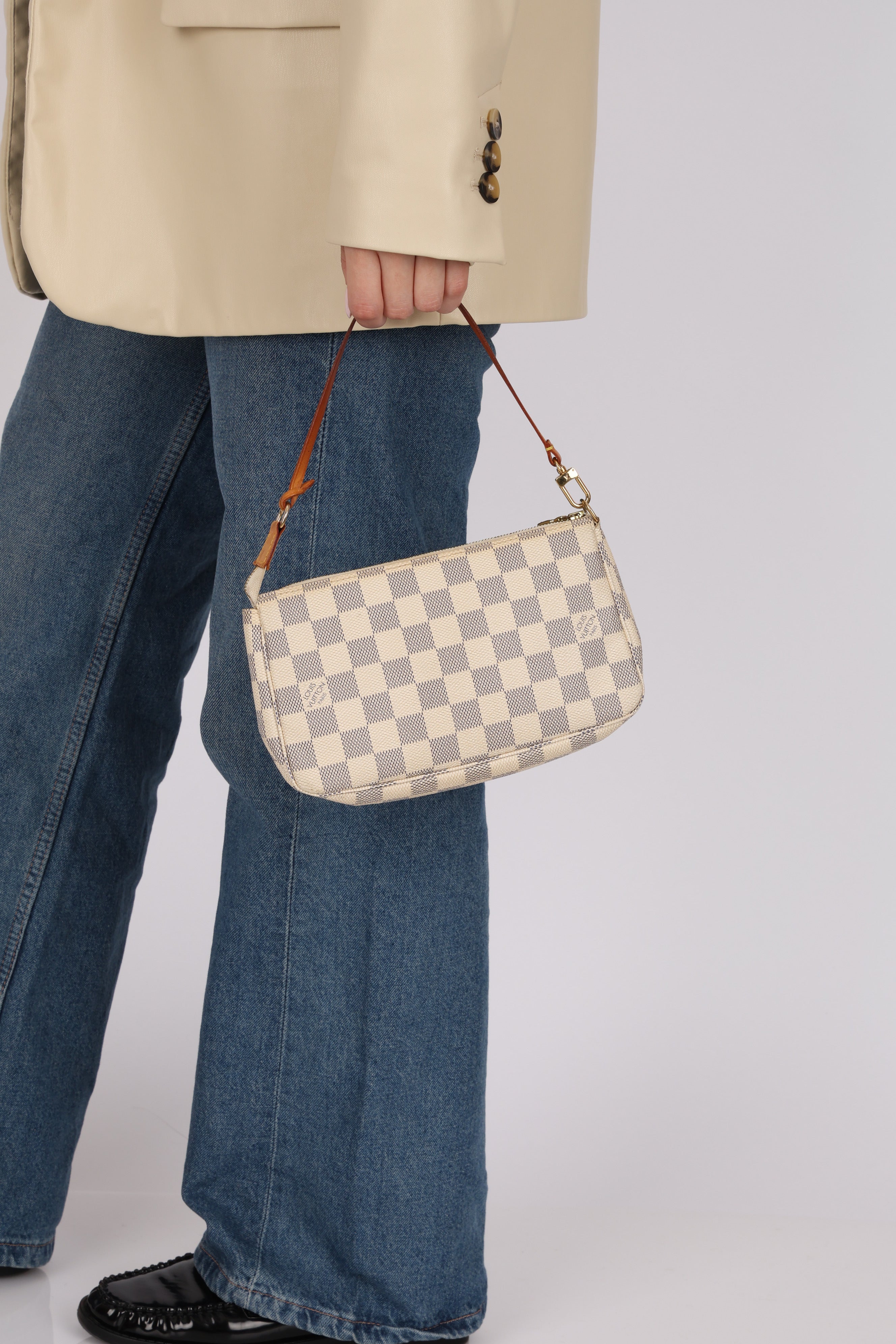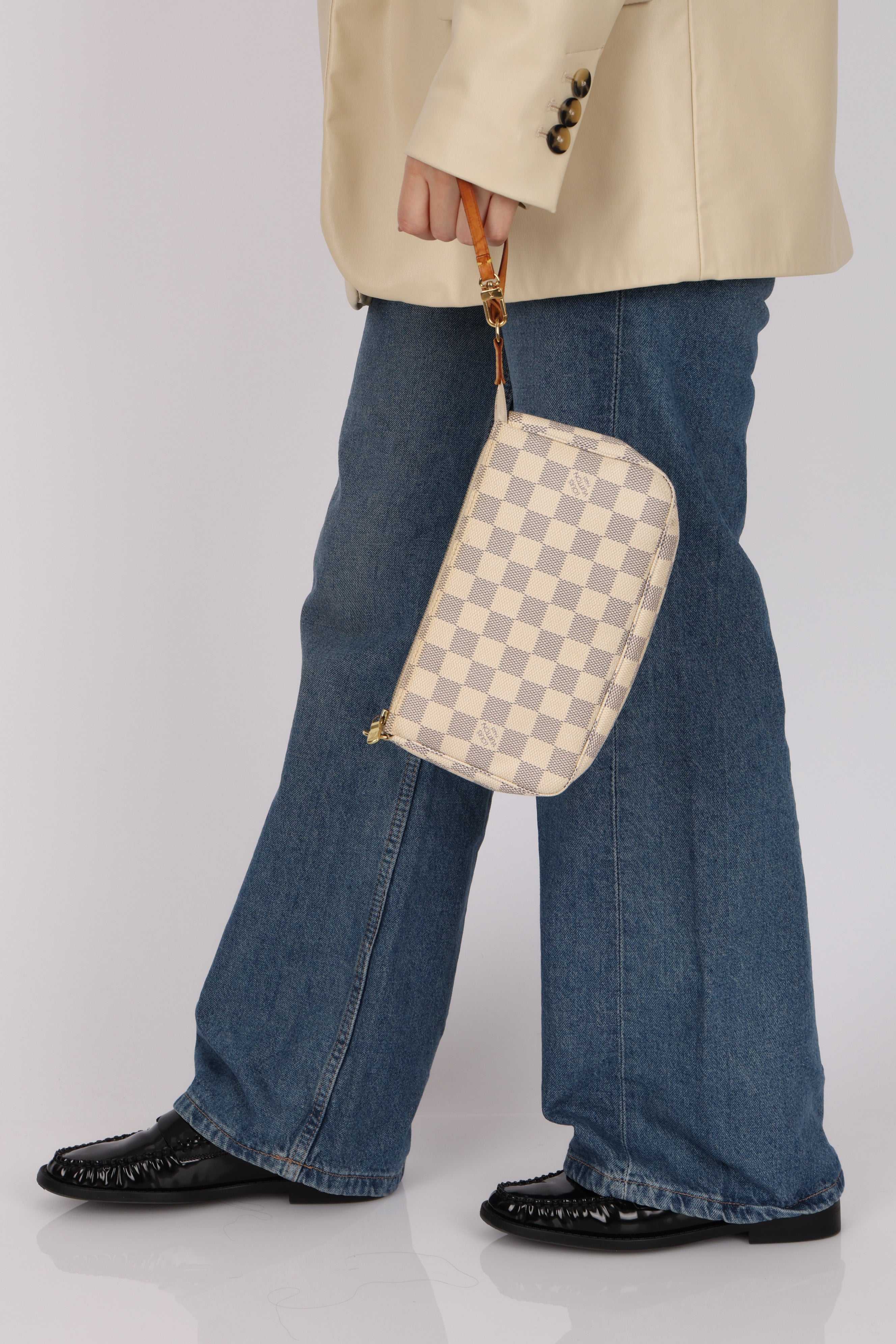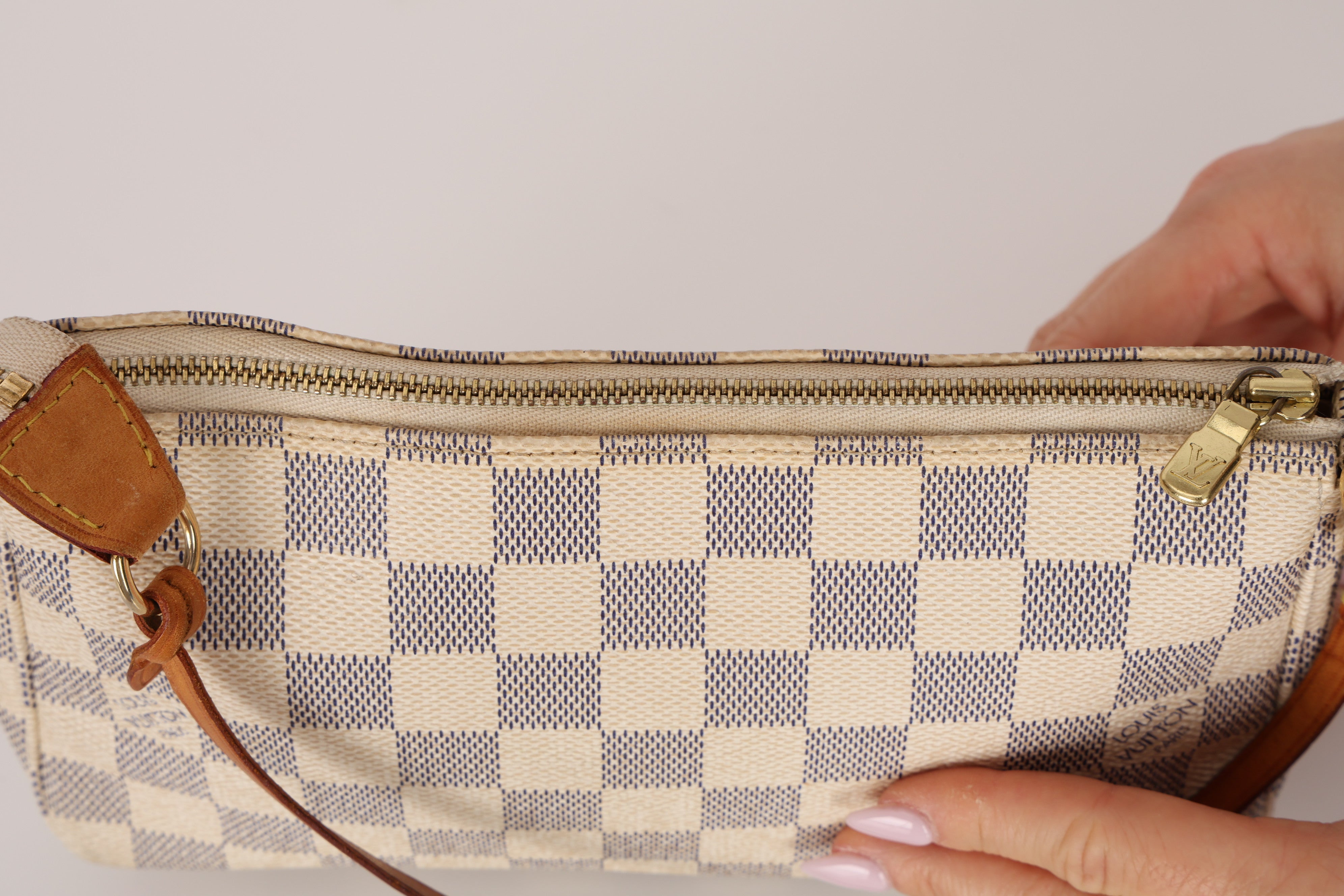 Light scratches on hardware. Honey patina to vachetta. Marks on vachetta. Normal wear throughout canvas. Mark on interior.