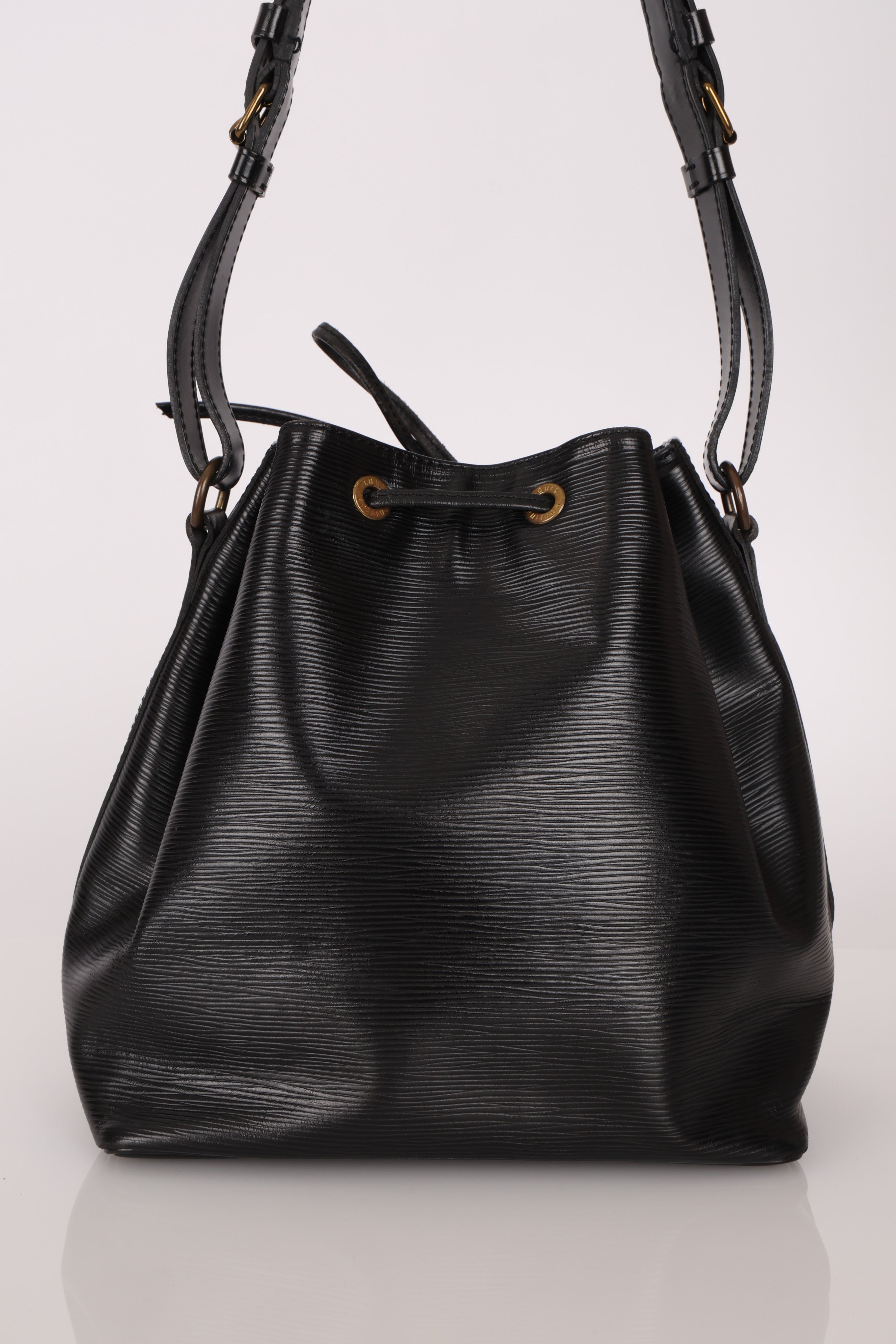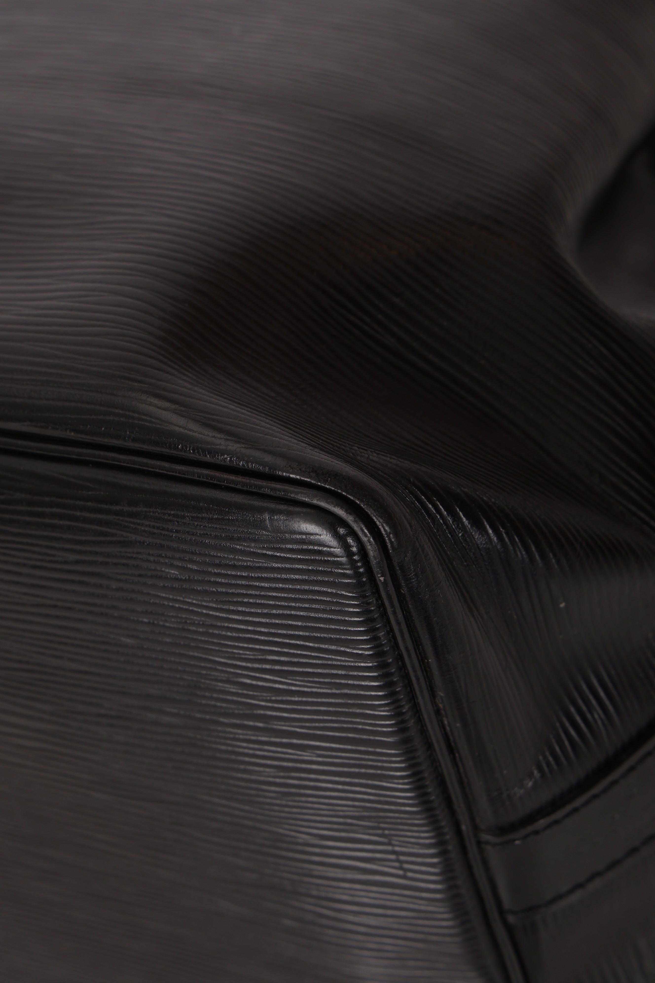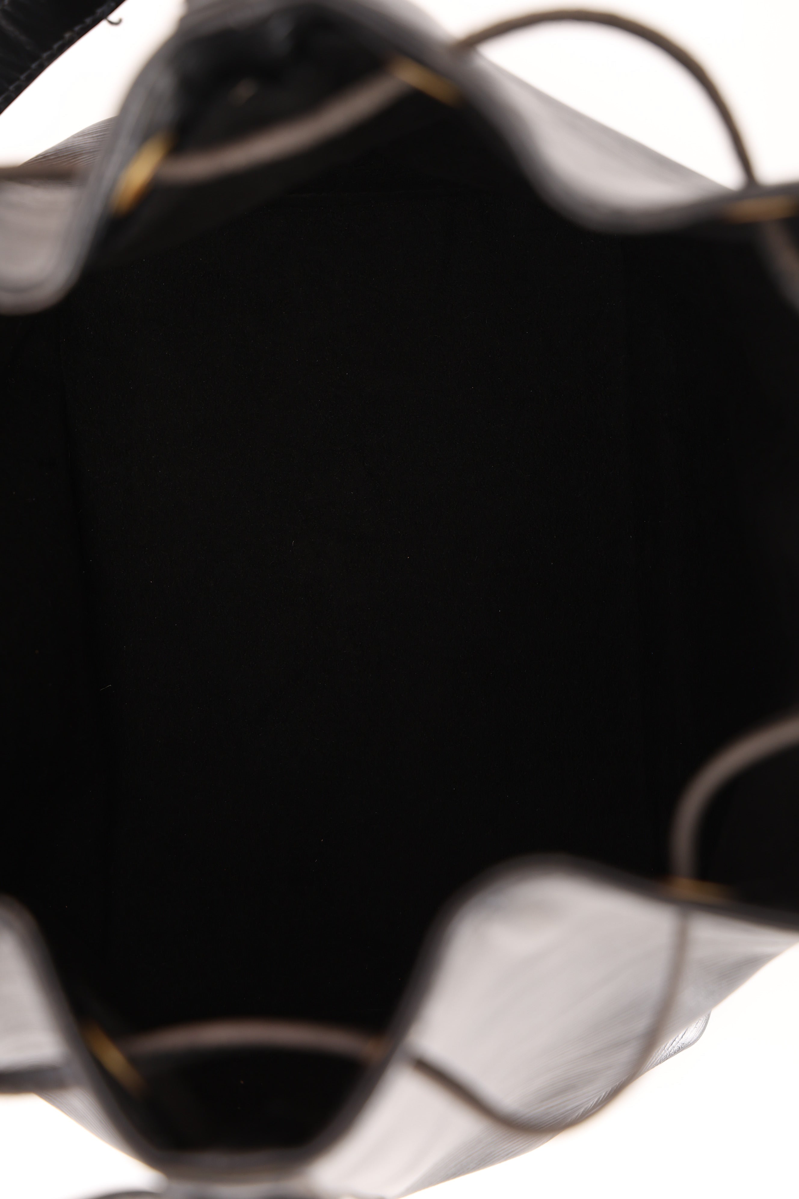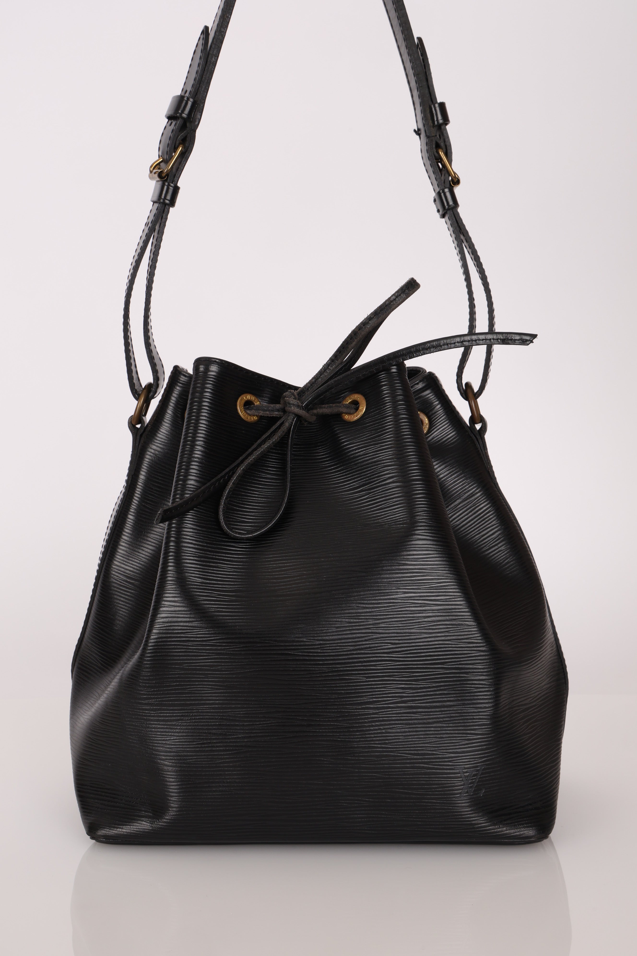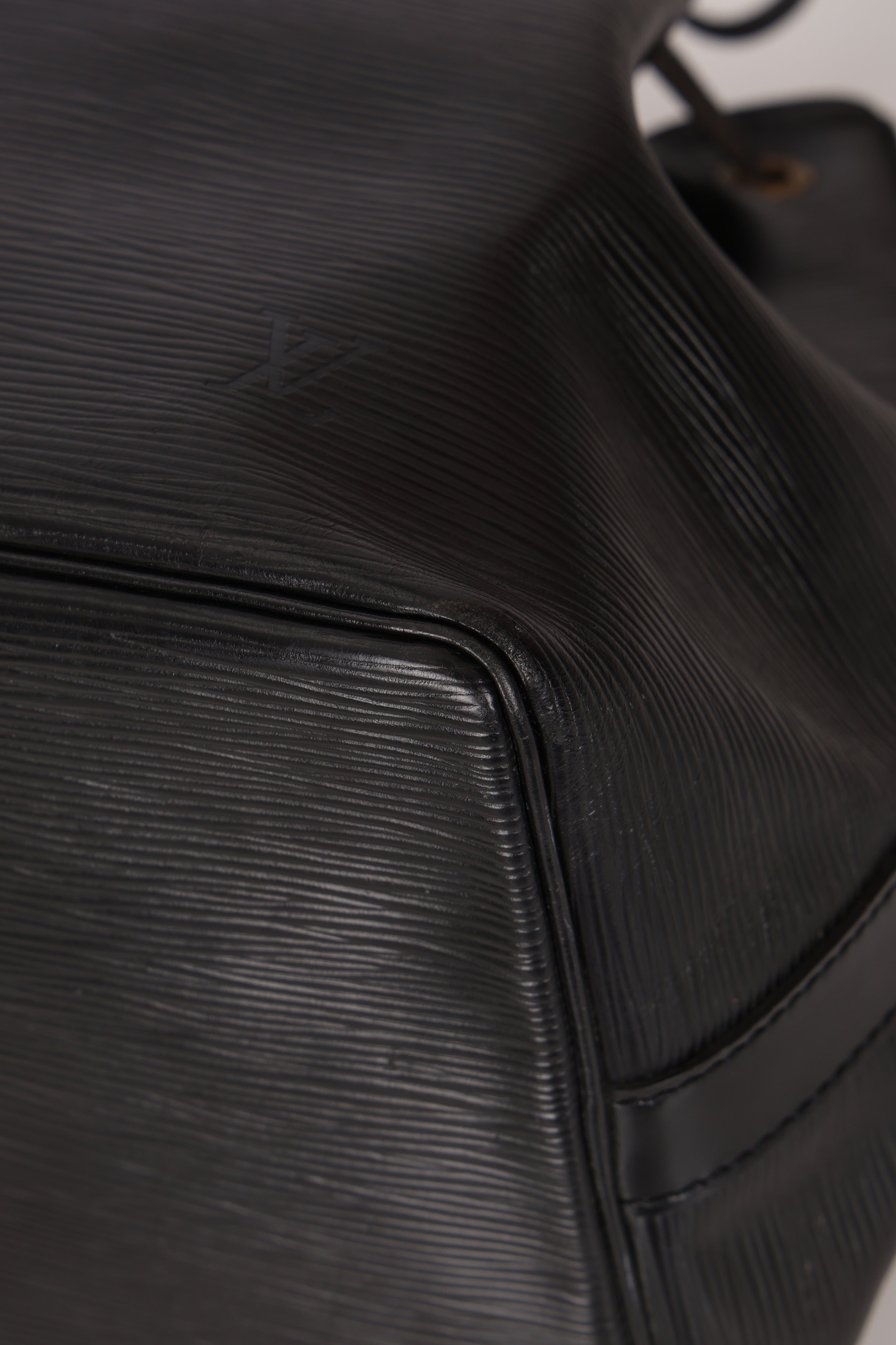 Light scratches and tarnishing on hardware. Normal wear throughout leather. Corner wear. Rubbing on drawstring.