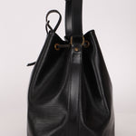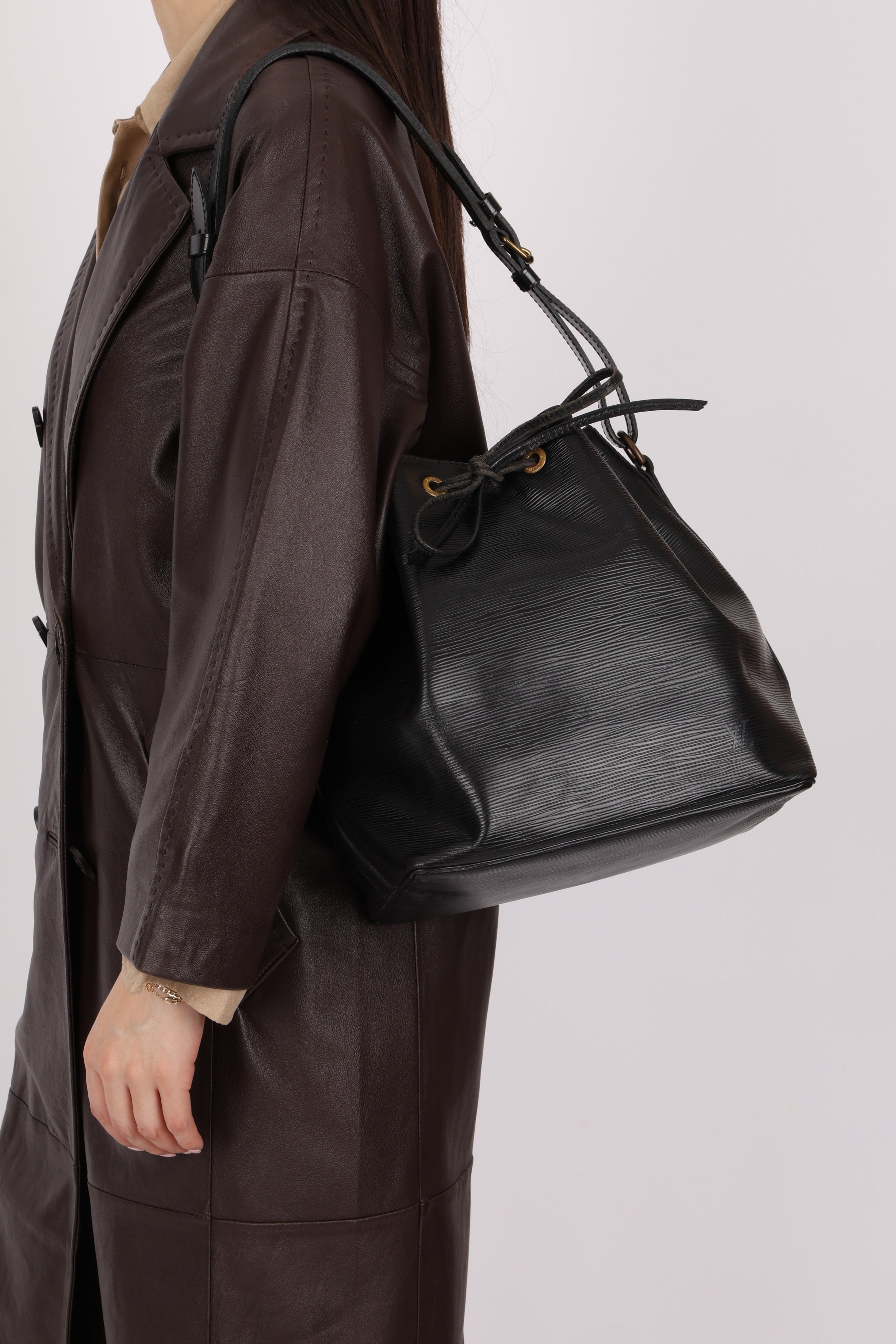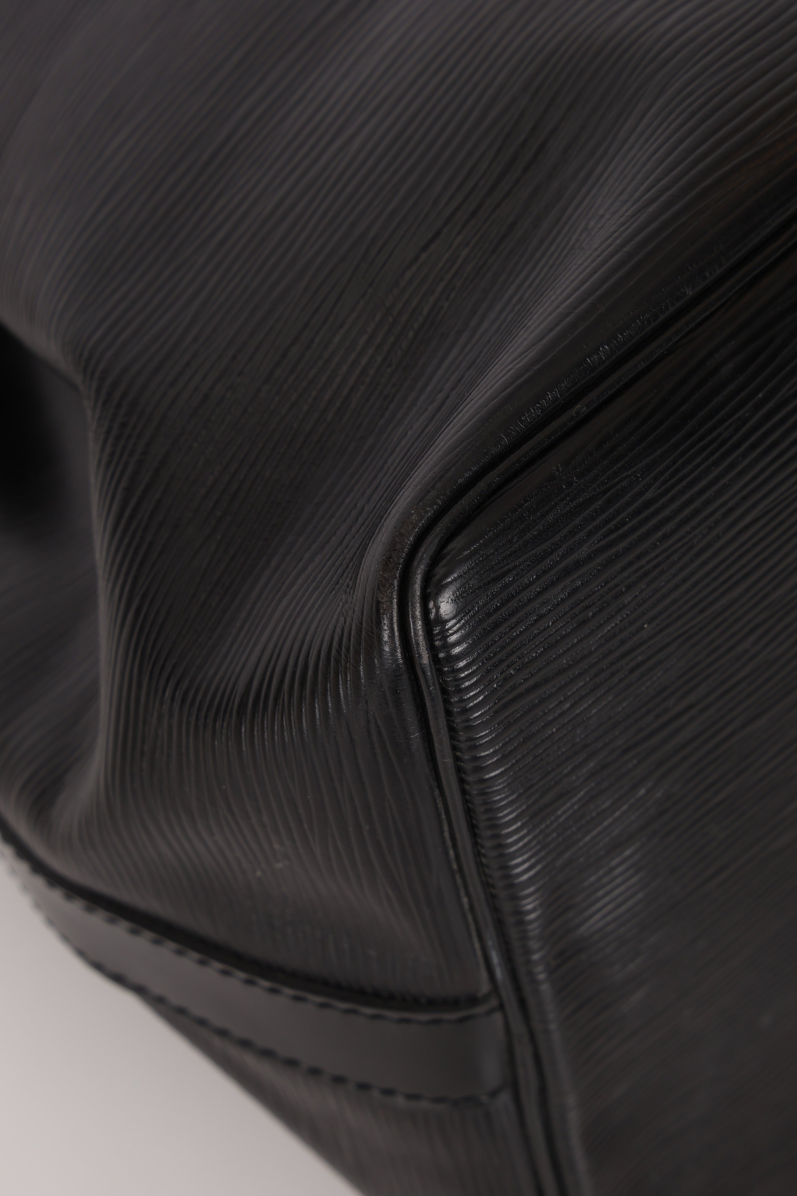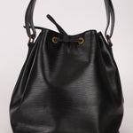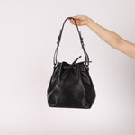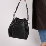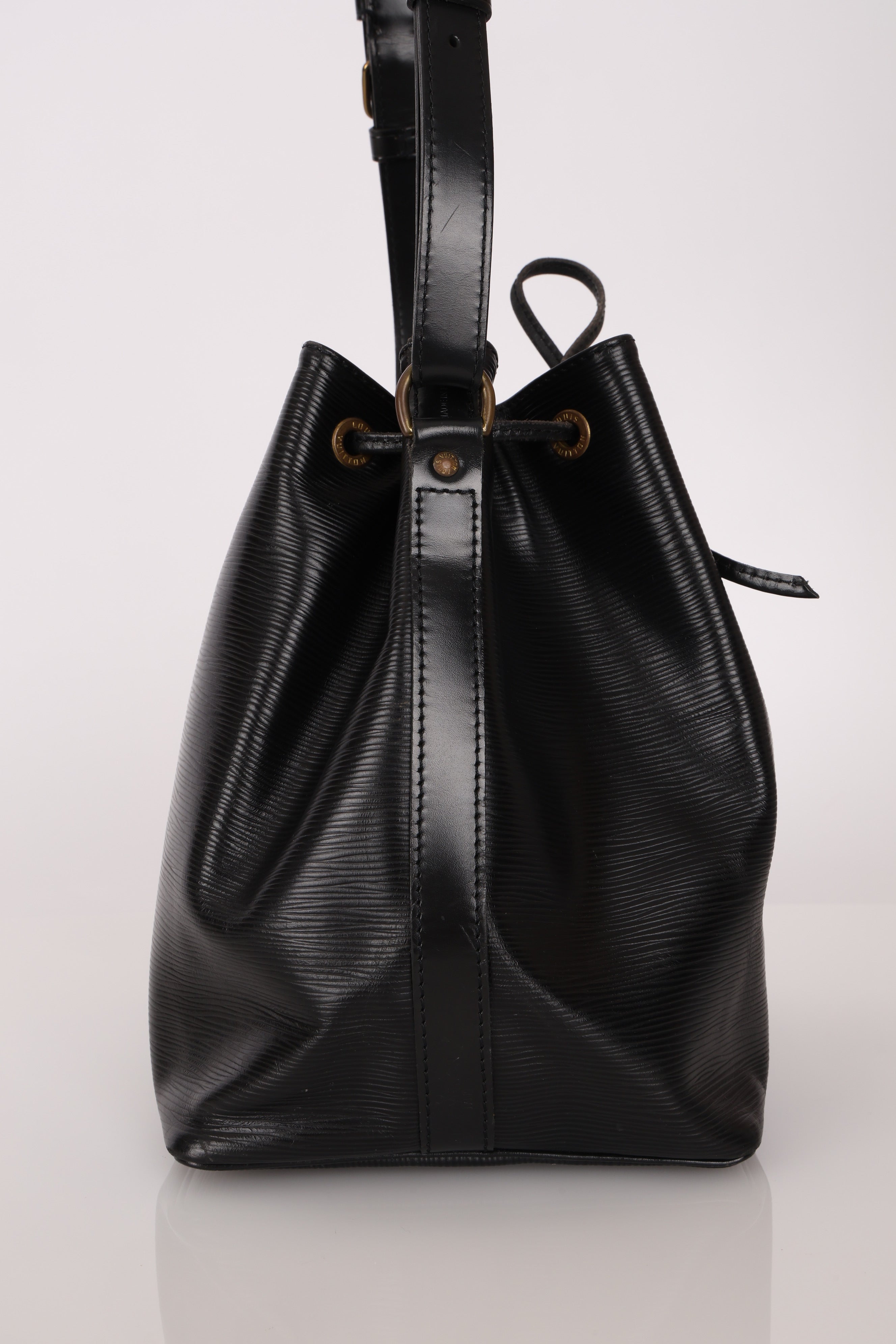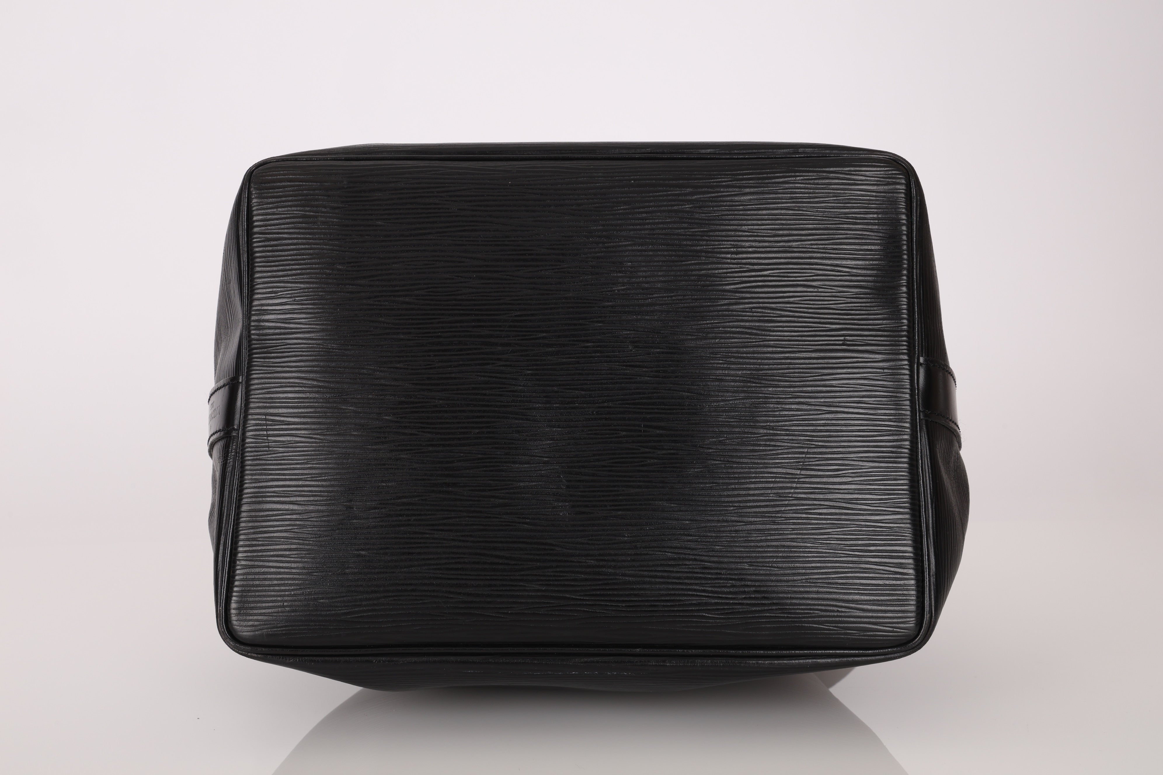 Light scratches and tarnishing on hardware. Normal wear throughout leather. Corner wear. Rubbing on drawstring.