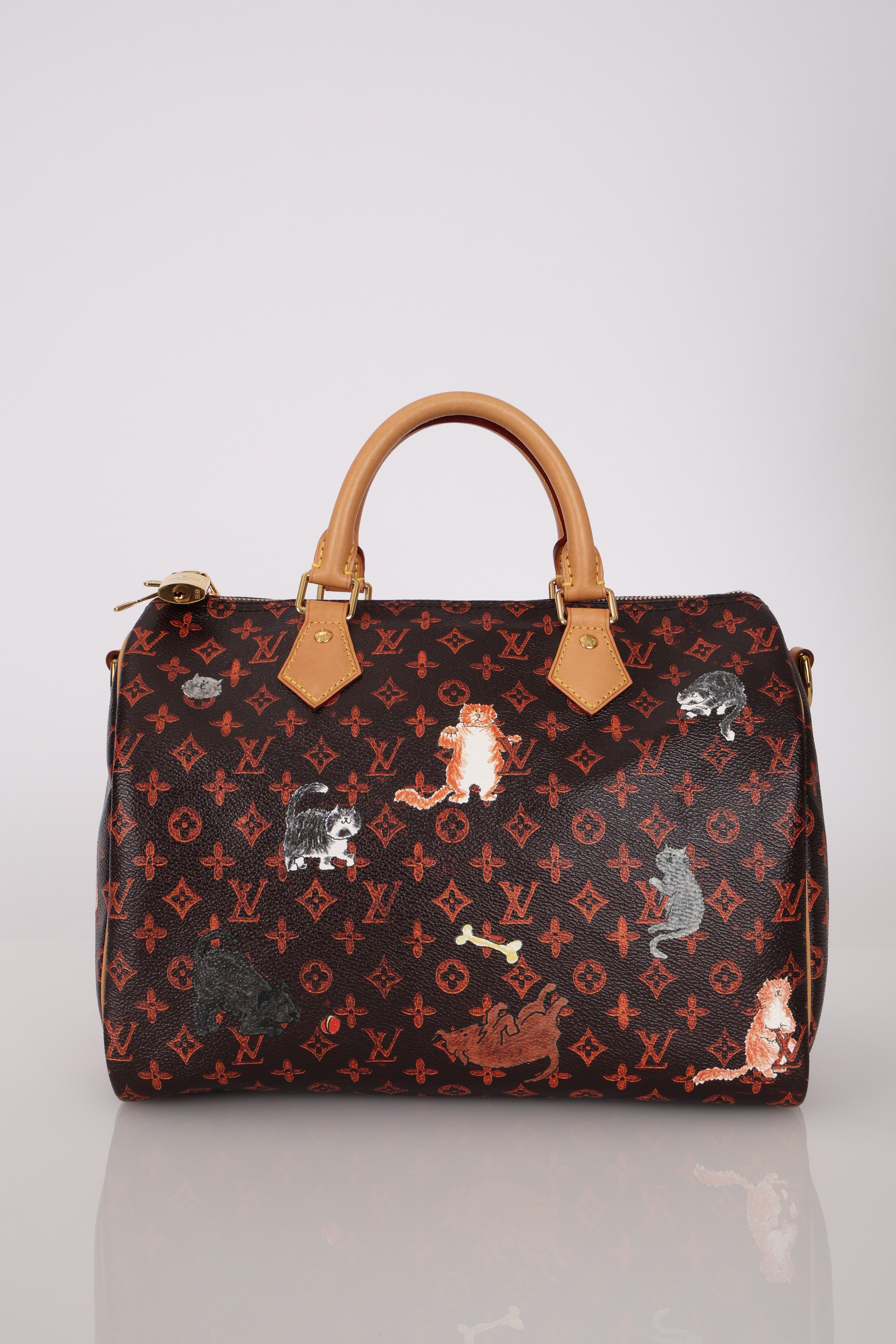 The Louis Vuitton x Grace Coddington Catogram Speedy is the purr-fect addition to any collector's collection! Covered in charming sketches of cats and dogs, this limited edition tote is an elevated playful version of the classic Speedy that's perfect for on the go days.