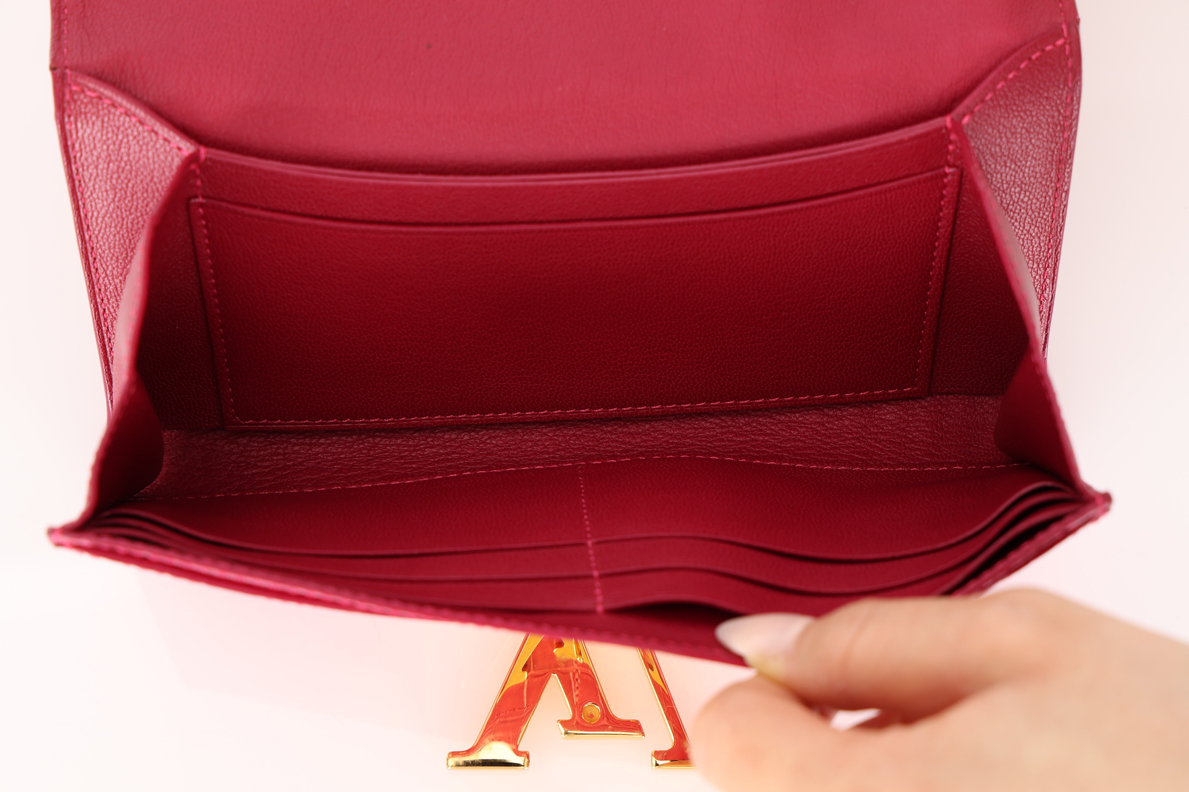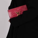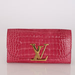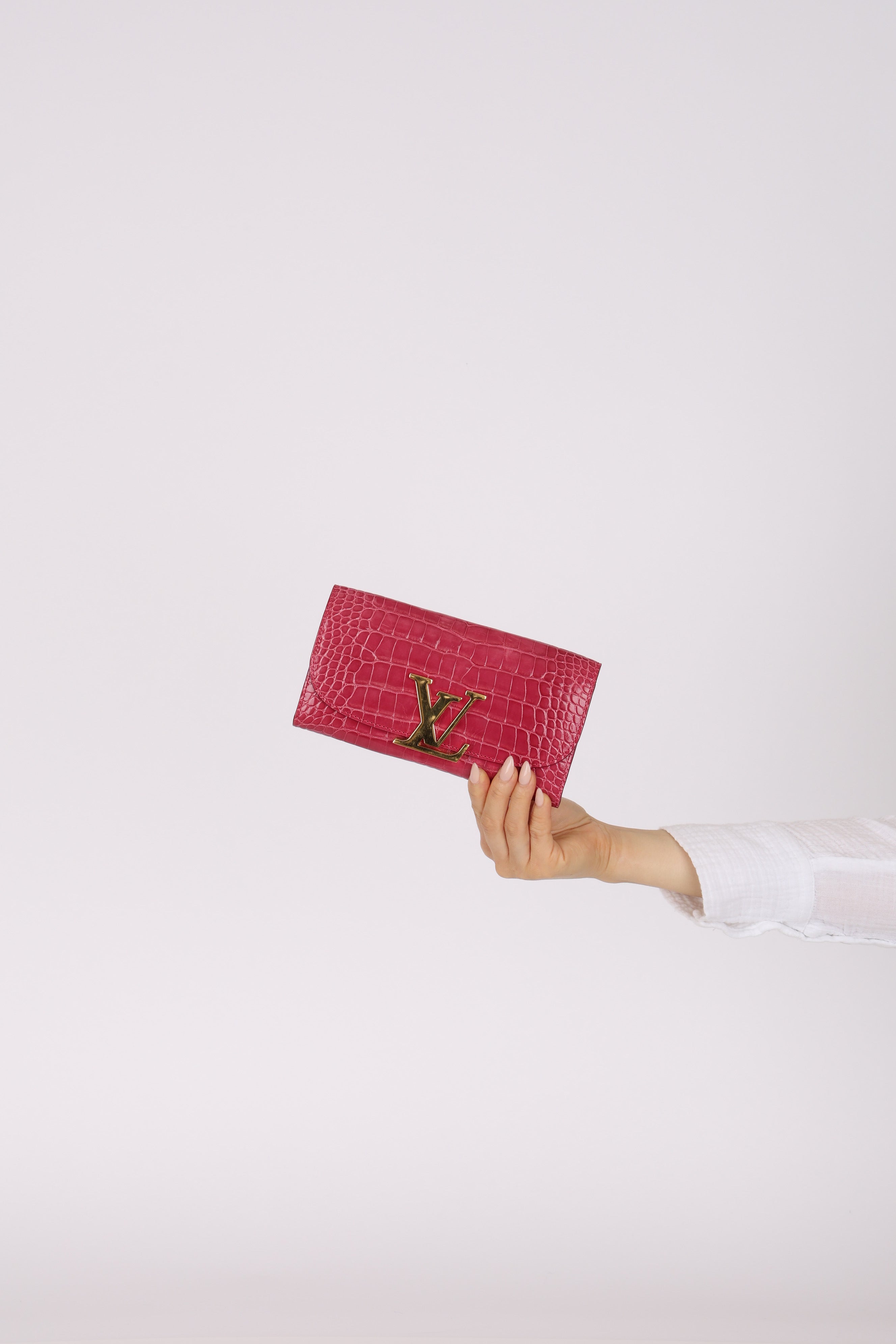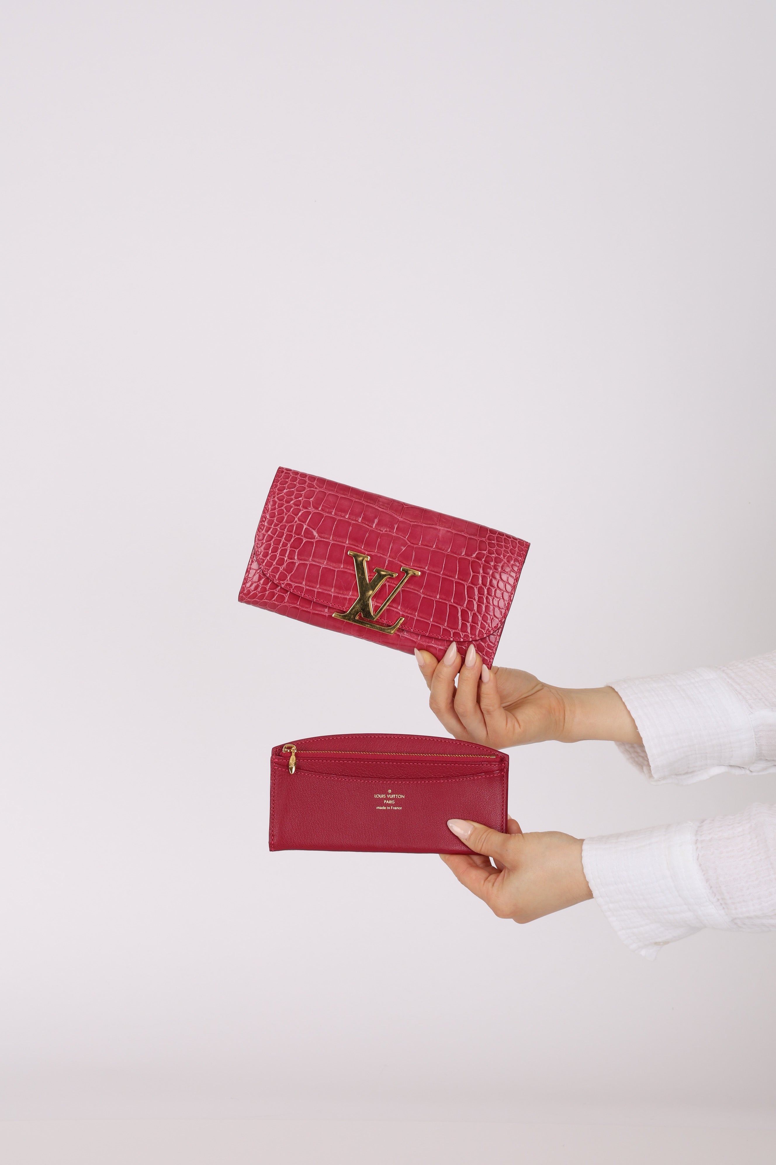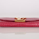 Crafted in vibrant pink alligator leather, the Louis Vuitton Grenade Wallet brings a playful yet luxurious touch to any collection. Its versatile design allows it to be carried as a chic clutch or used as a statement wallet inside a larger bag. A bold accessory that effortlessly combines function with standout color.