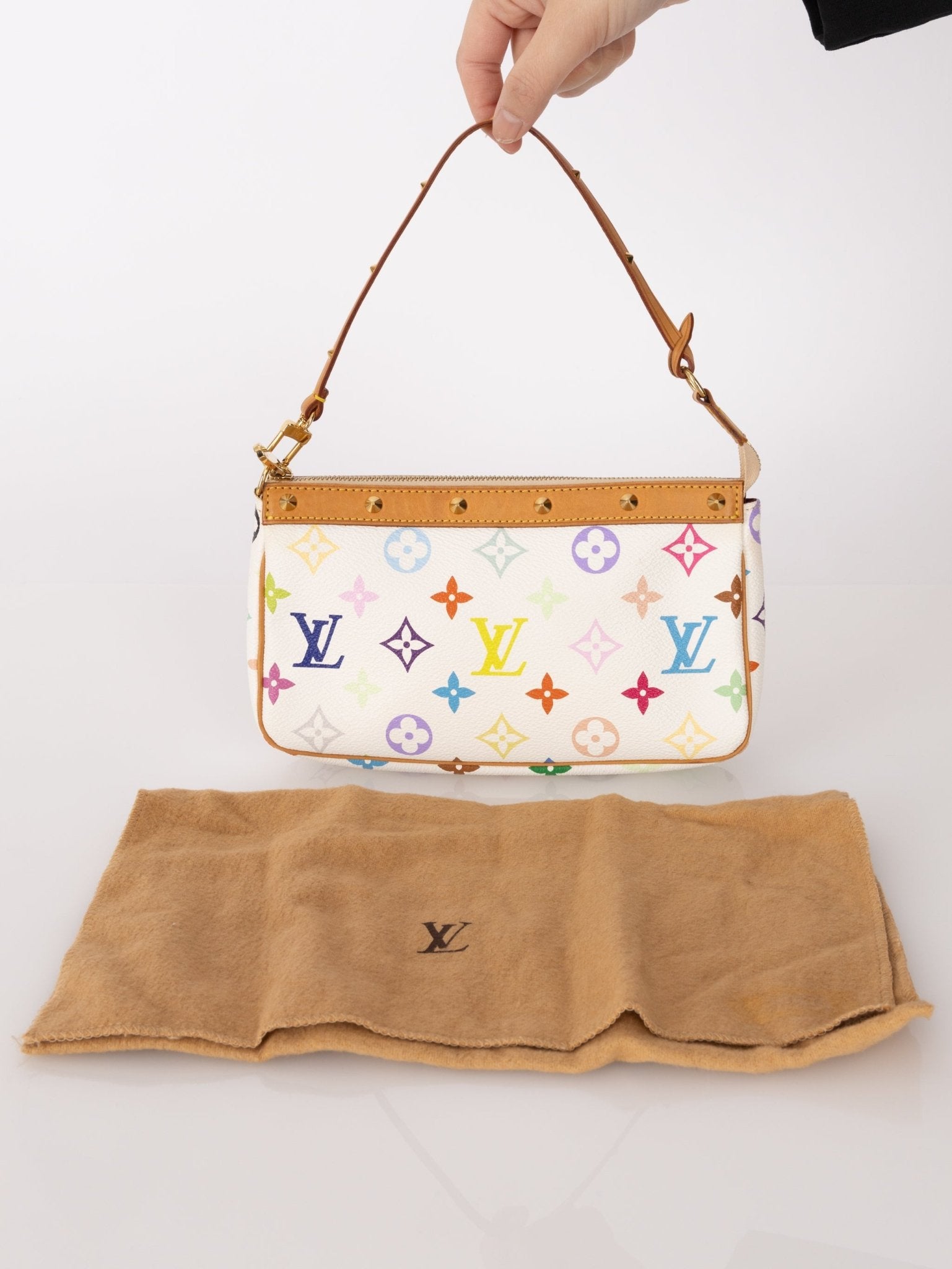 Limited Edition Louis Vuitton x Takashi Murakami Blanc Multicolor Pochette - FashioNica