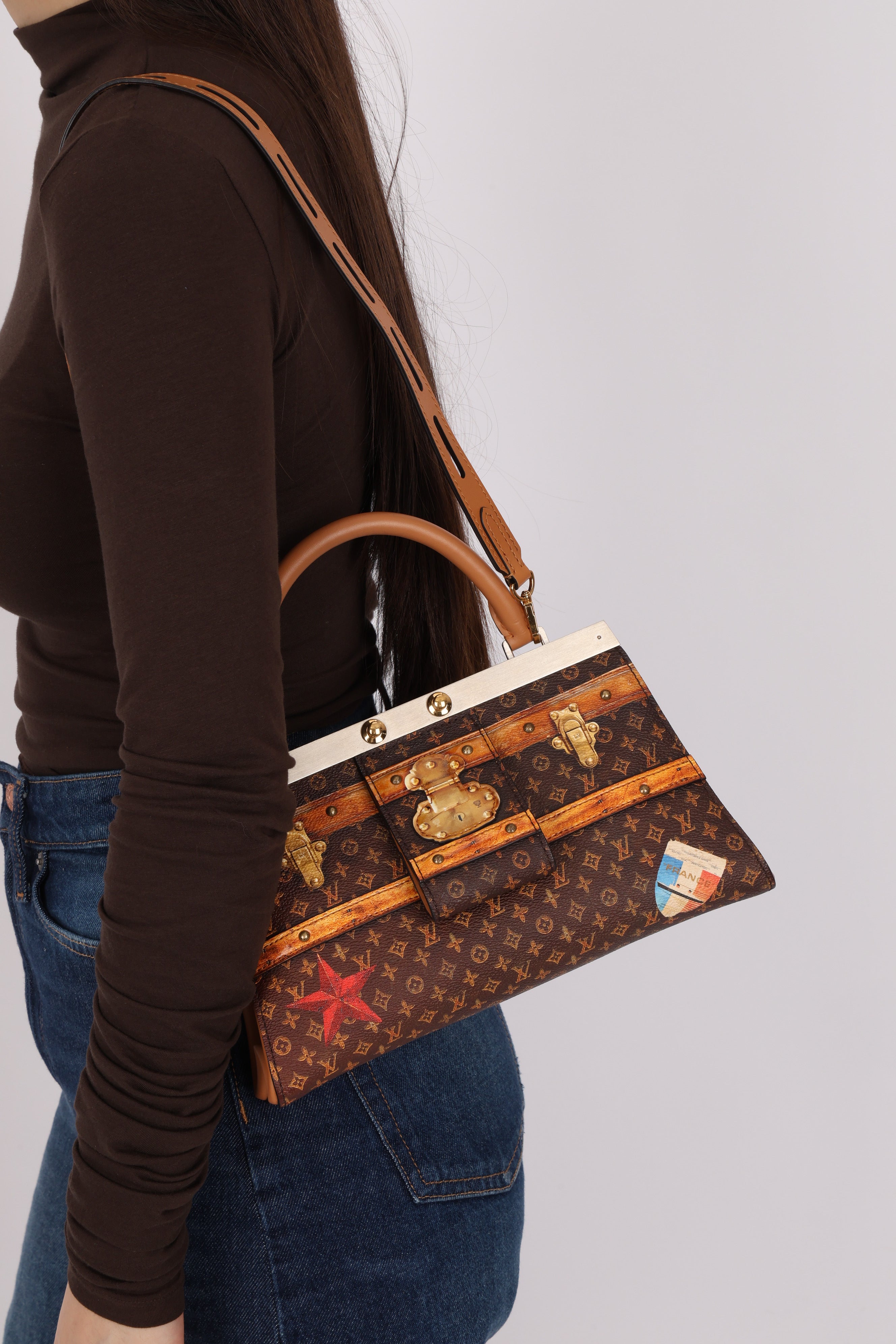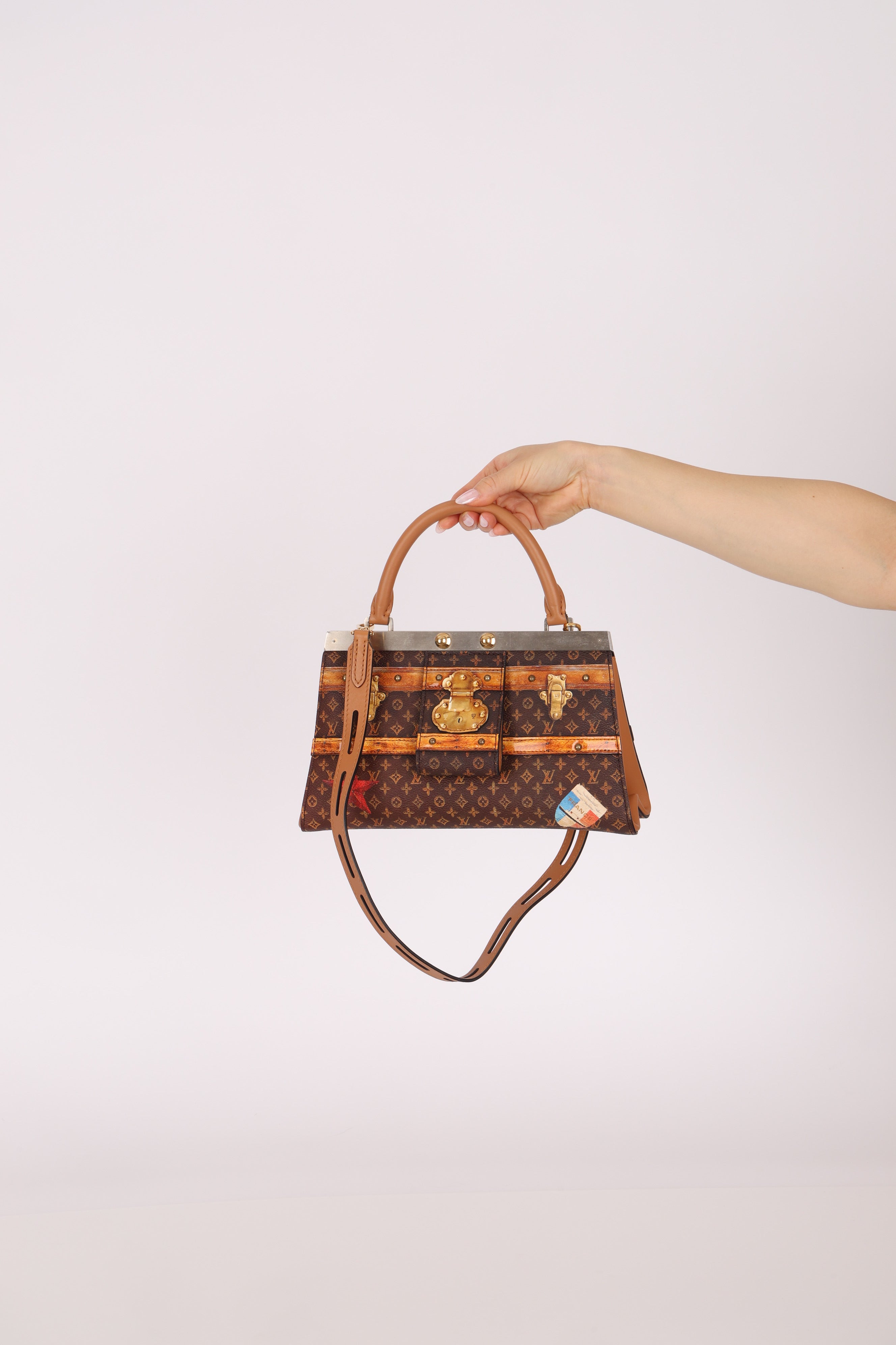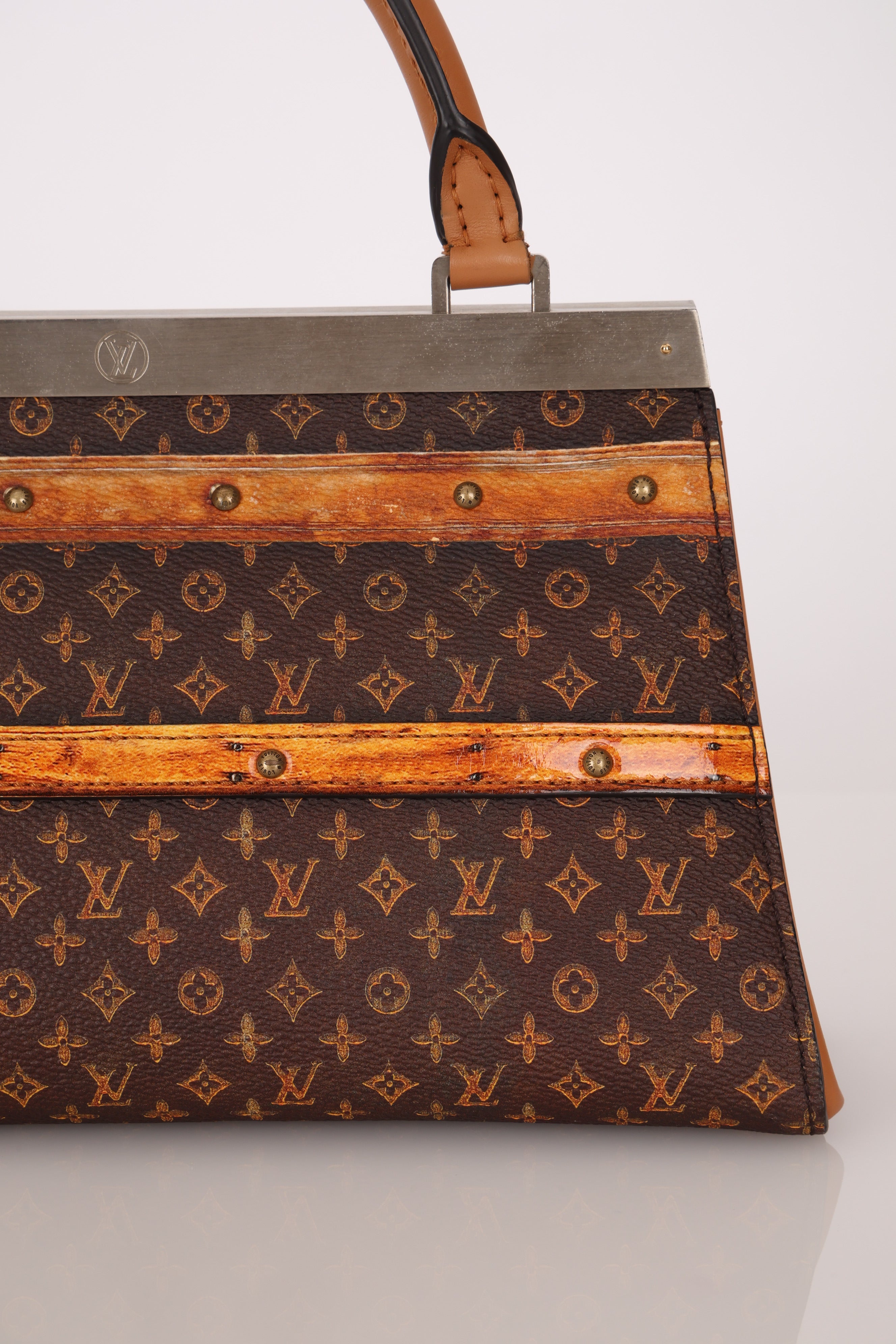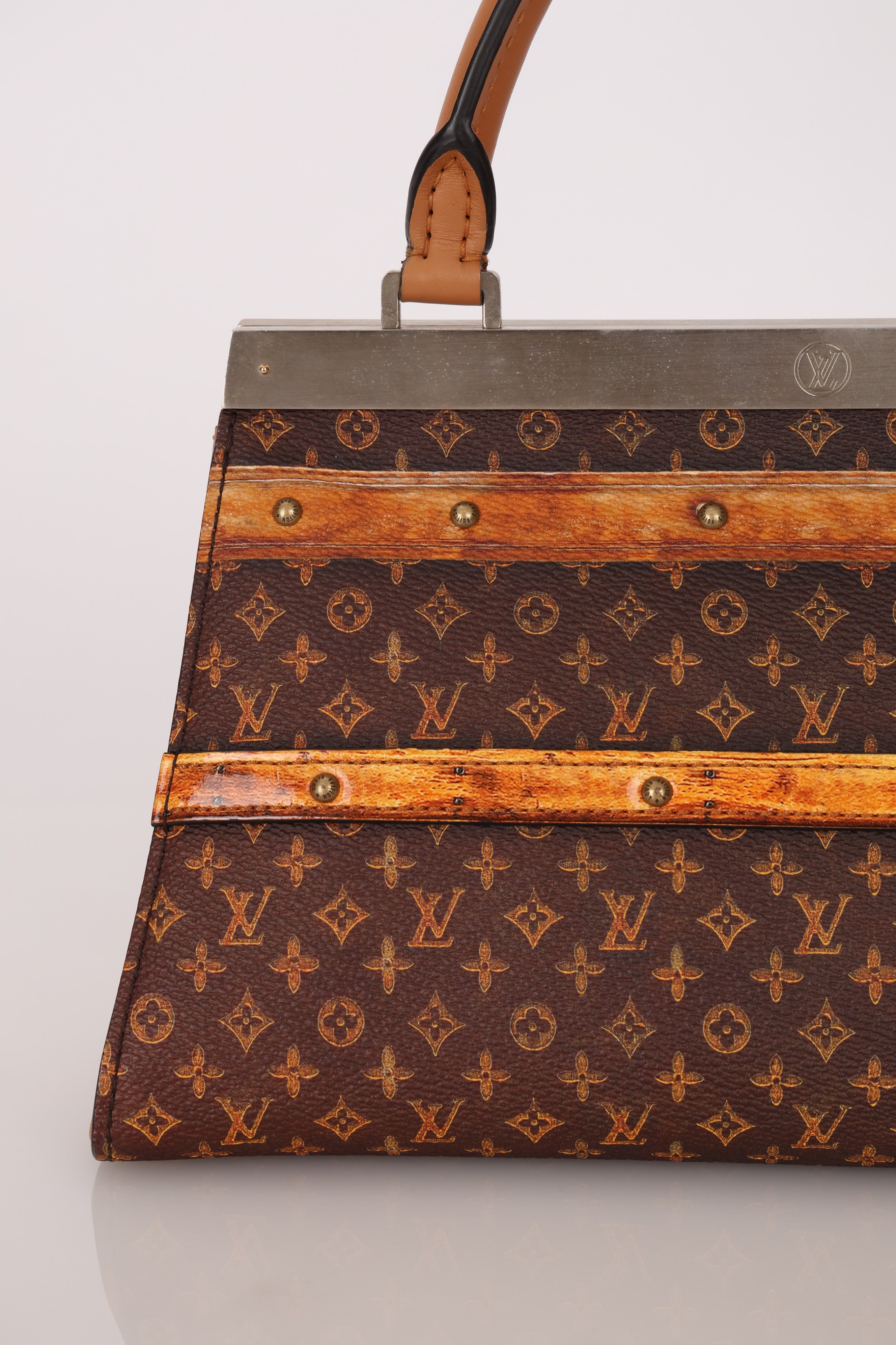 Echoing the elegance of the Hermès Kelly, the Louis Vuitton Crown Frame Bag features a reimagined monogram canvas with a trompe l'oeil trunk motif—an artful nod to the house’s origins in trunk making.