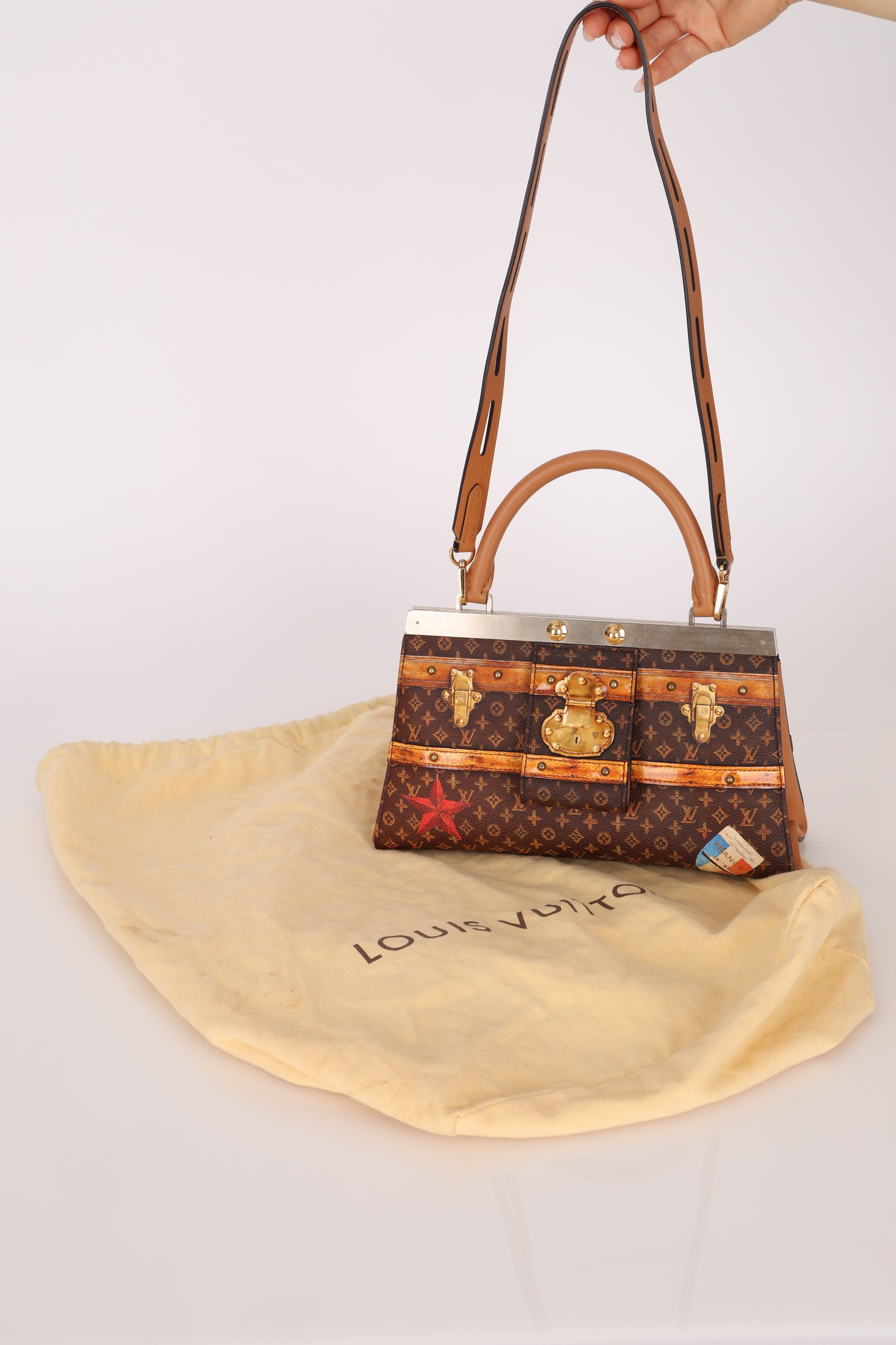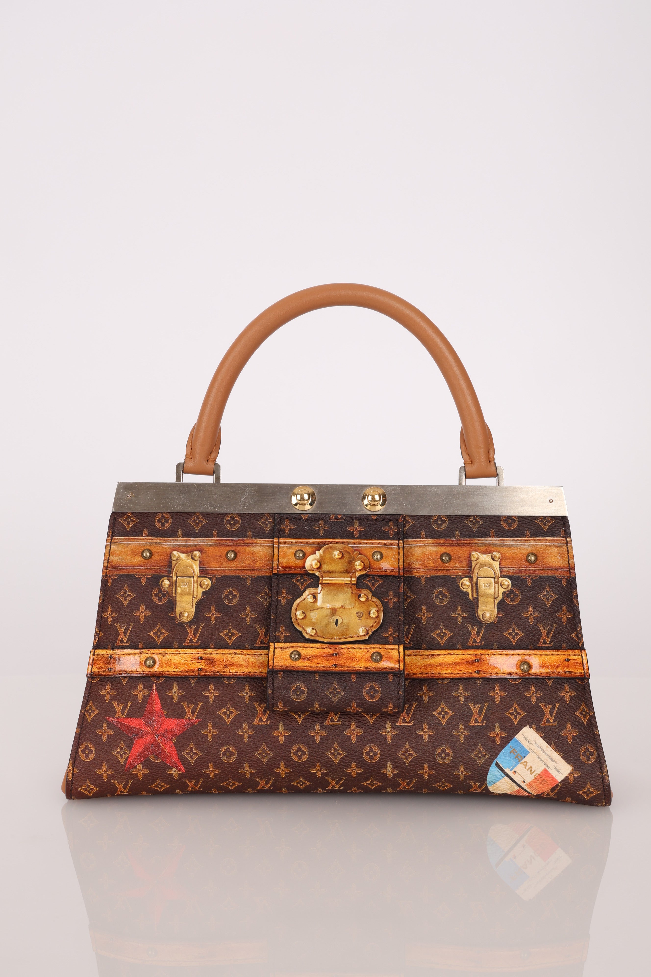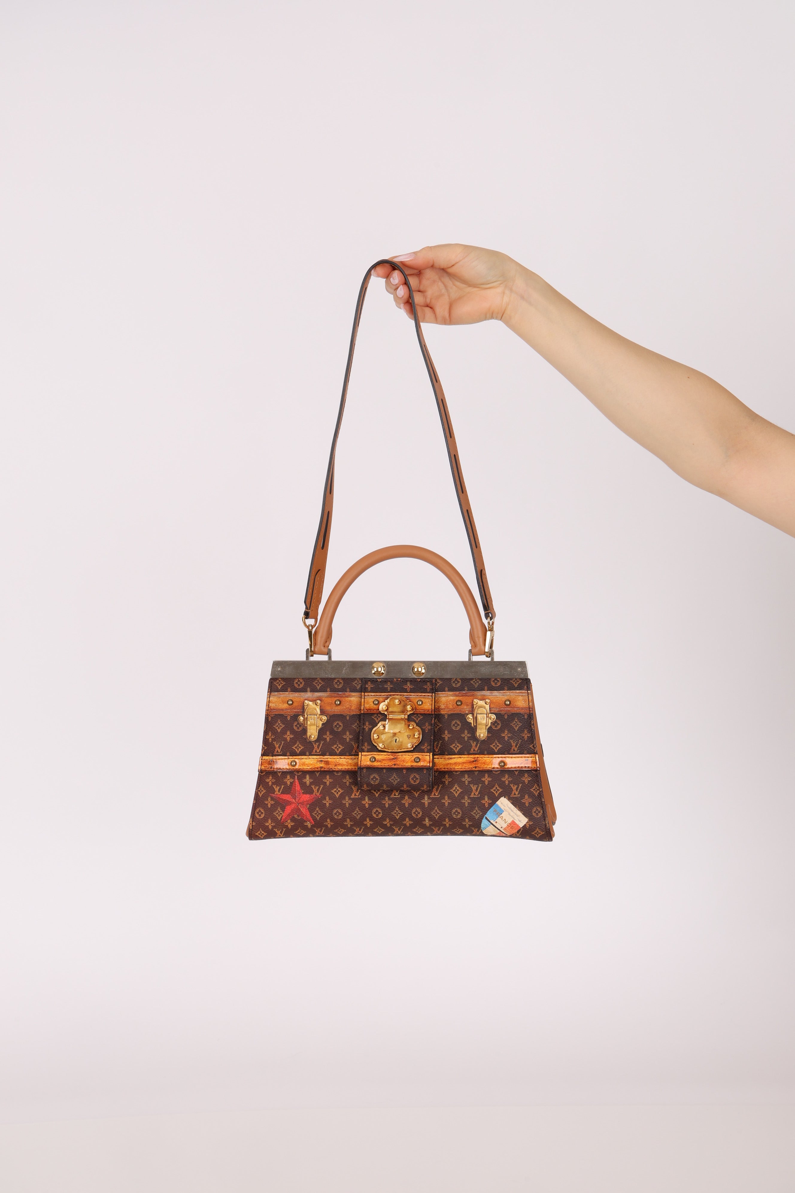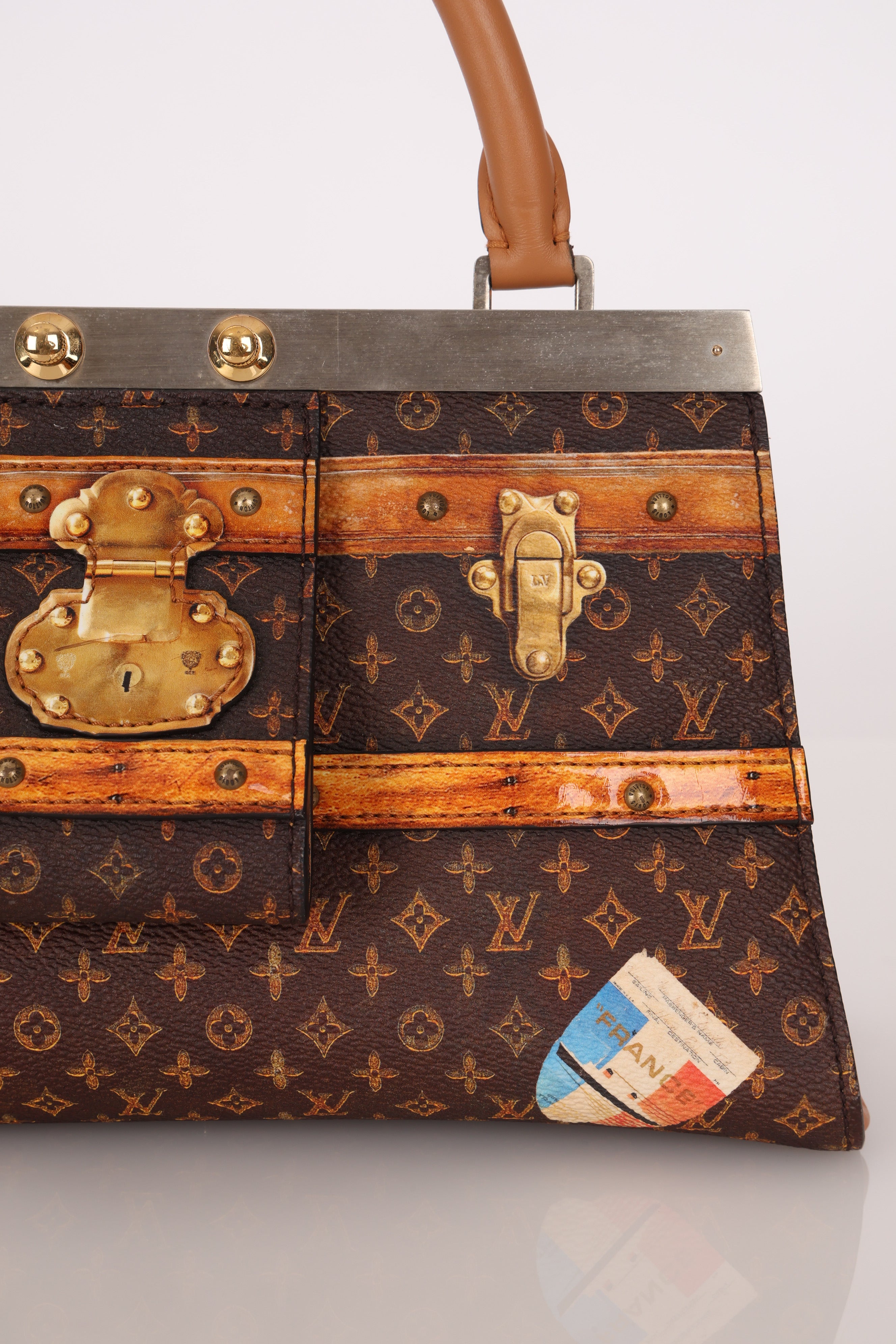 Echoing the elegance of the Hermès Kelly, the Louis Vuitton Crown Frame Bag features a reimagined monogram canvas with a trompe l'oeil trunk motif—an artful nod to the house’s origins in trunk making.