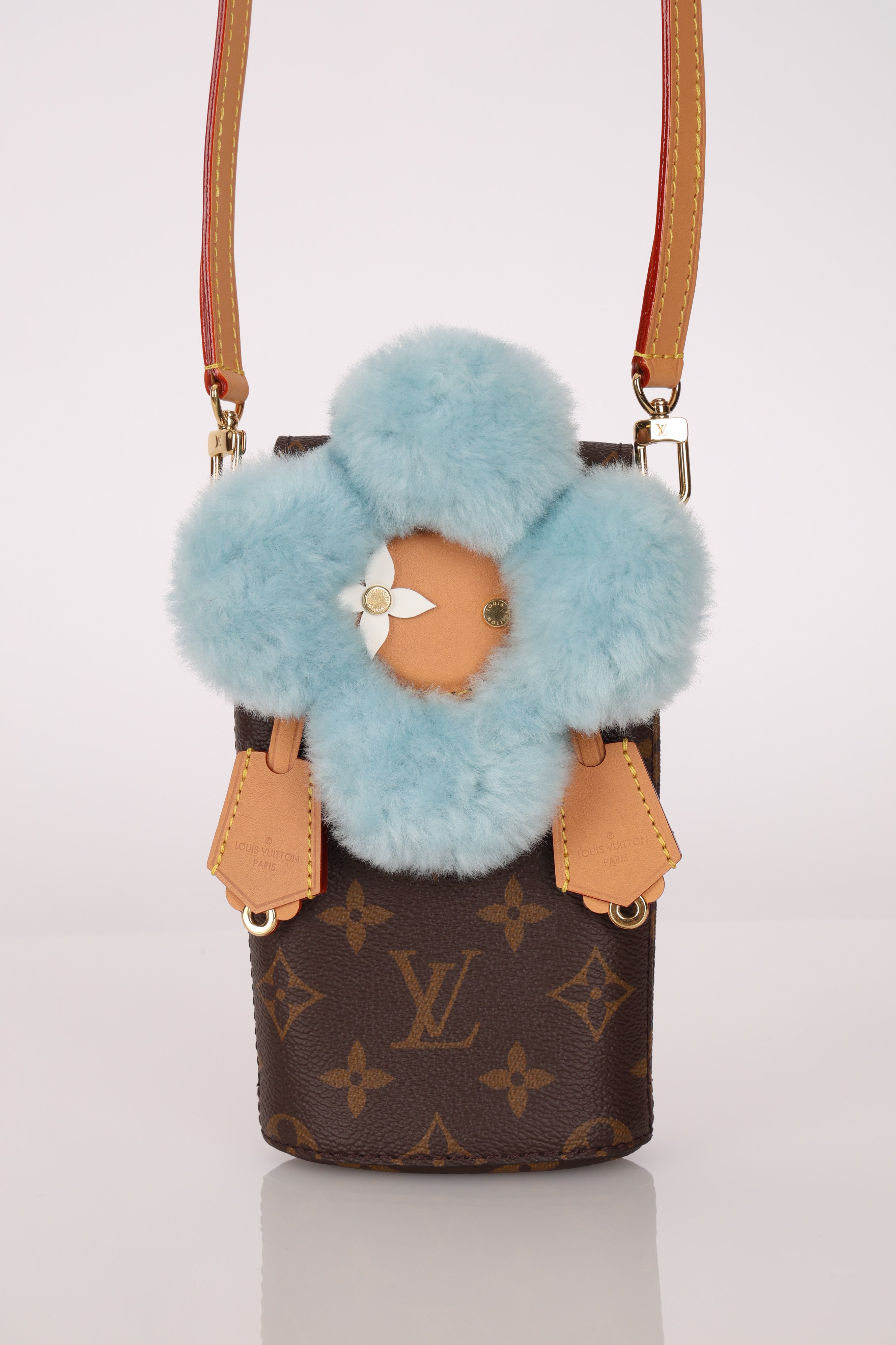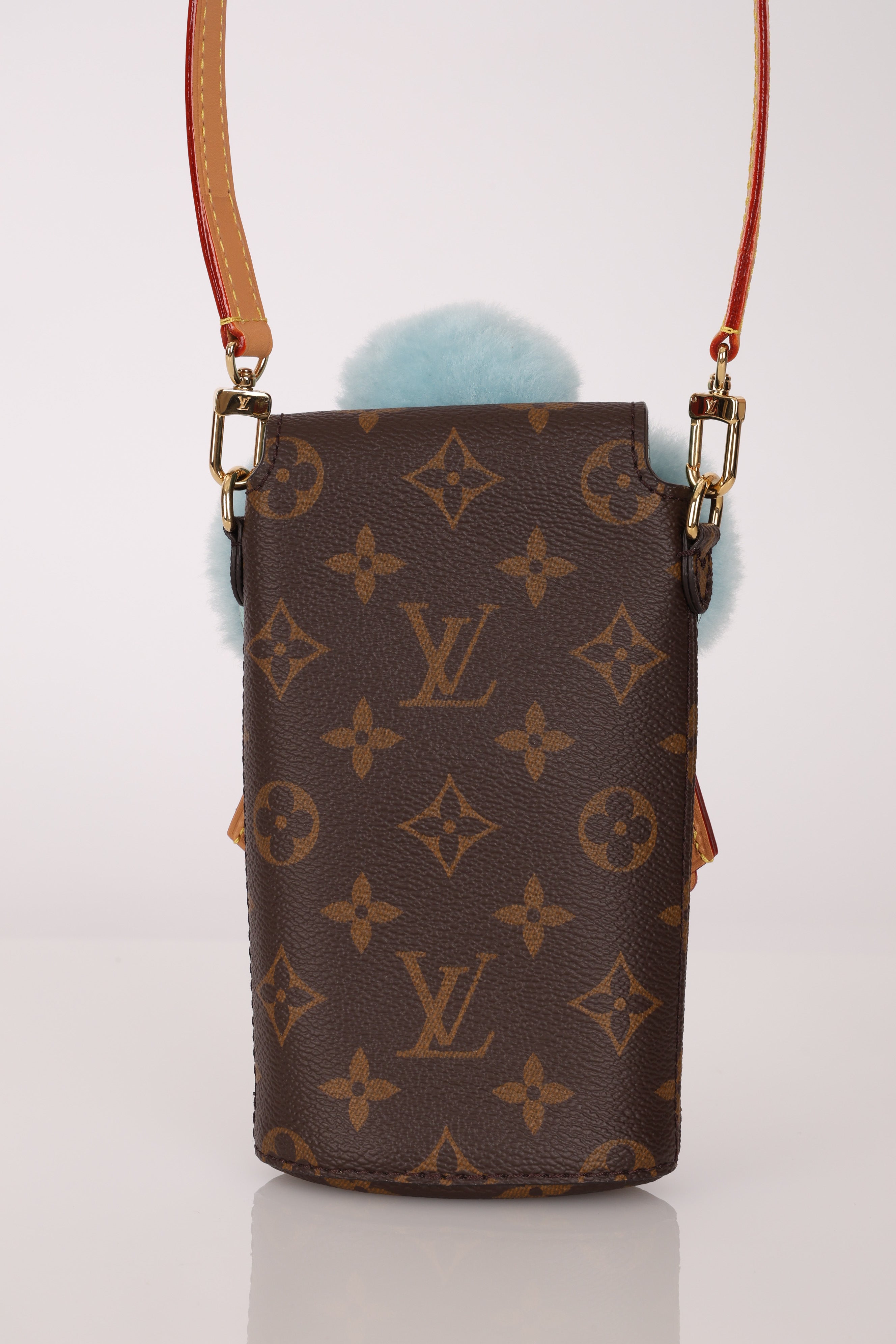 A shearling version of Louis Vuitton's Vivienne mascot sits at the forefront of this versatile mini bag in classic monogram.