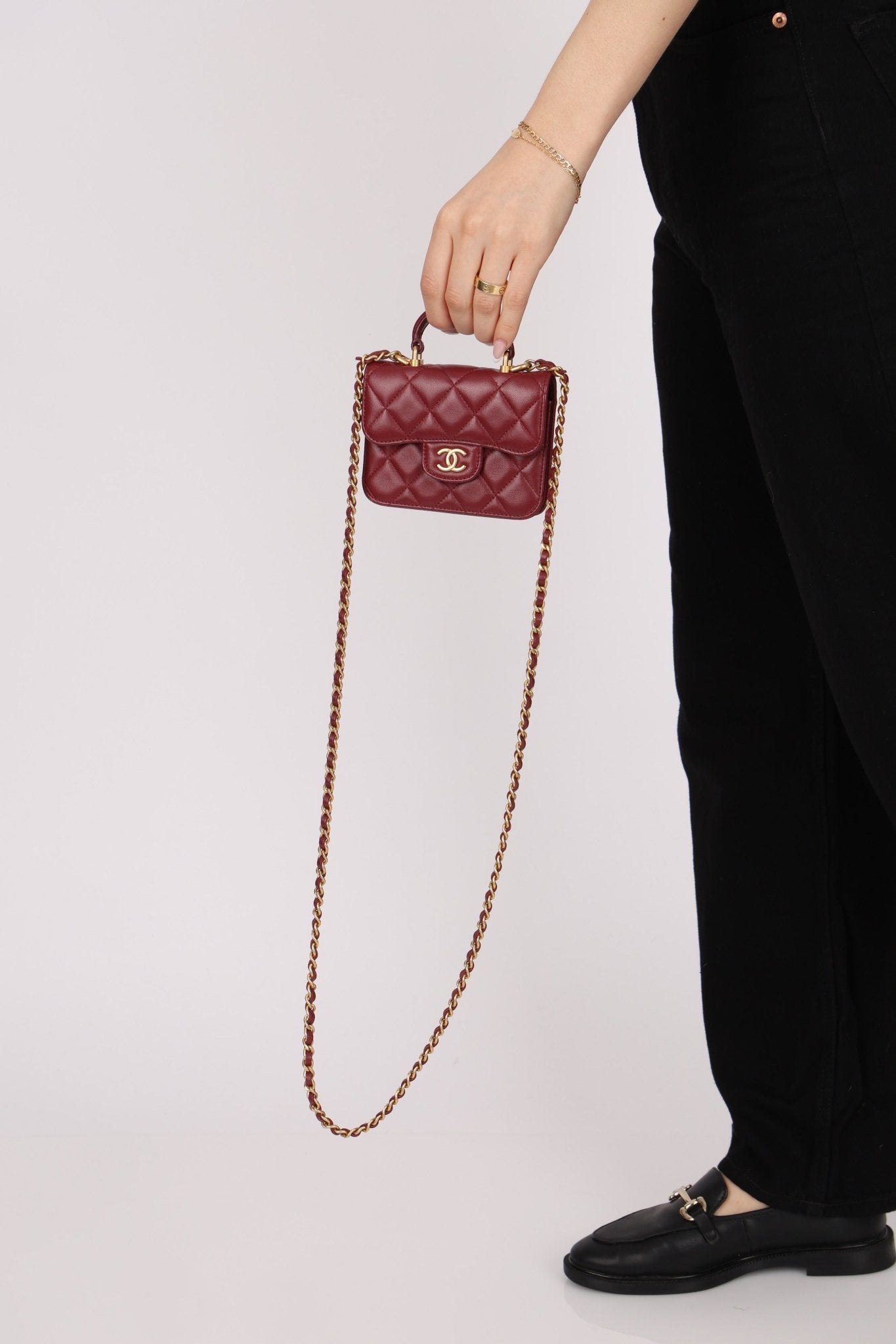 Chanel 2021 Lambskin Mini Top Handle on Chain - FashioNica