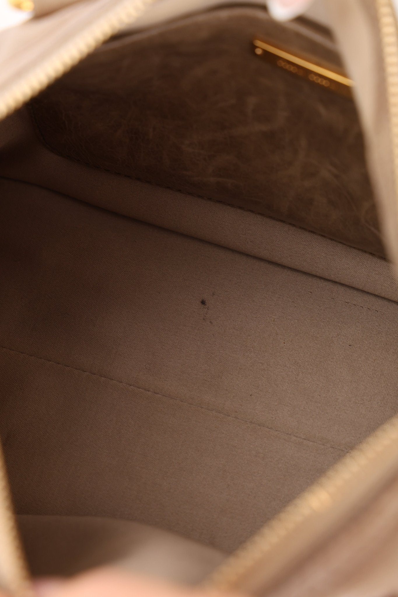Light scratches on hardware. Normal wear throughout leather. Faint corner rubs. Marks on interior & exterior. Wear on handle. Missing long crossbody strap.