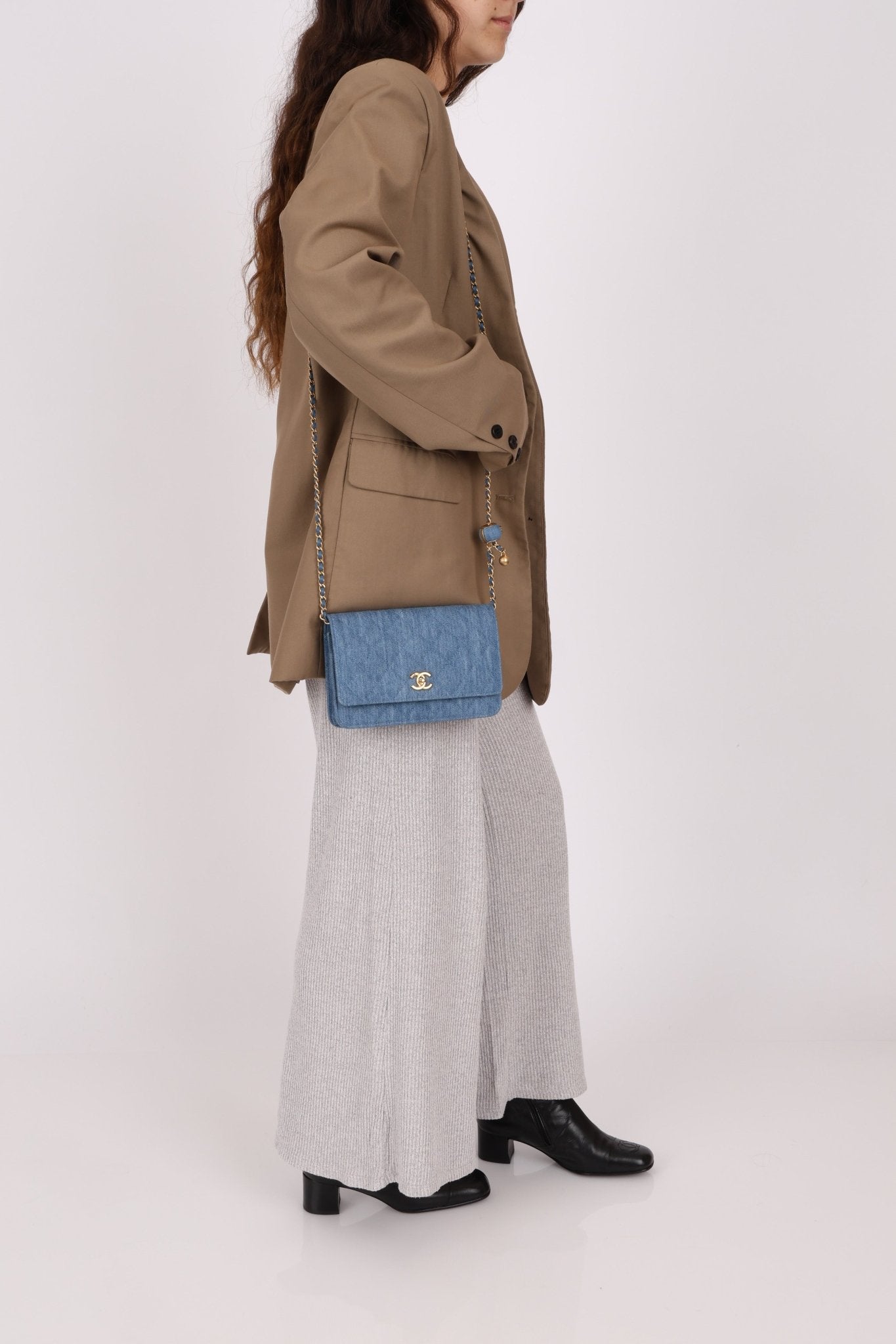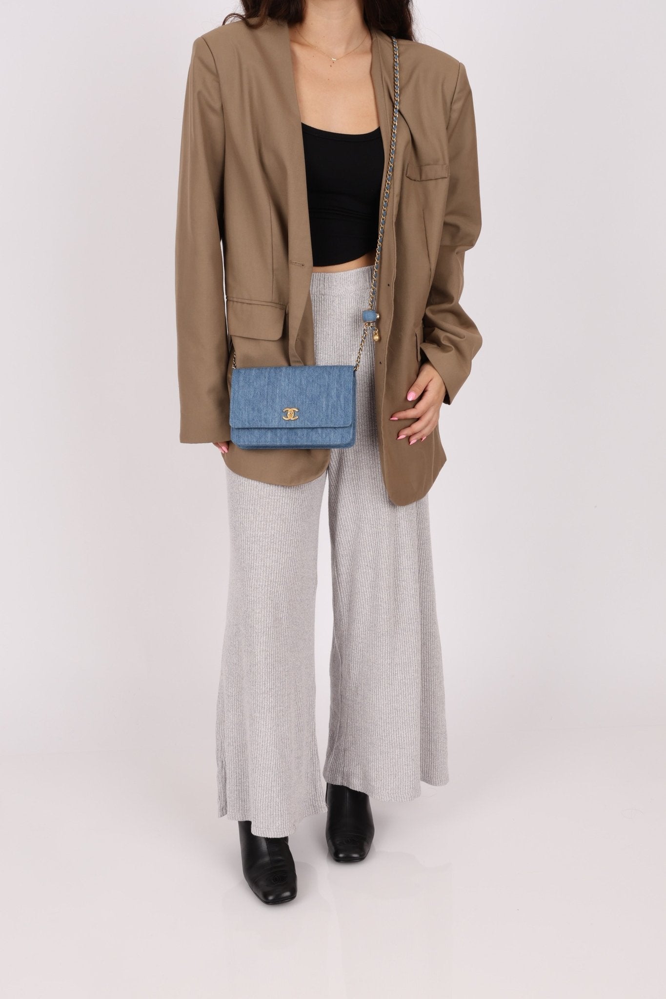 Chanel 2021 Quilted Denim Pearl Crush Wallet On Chain - FashioNica