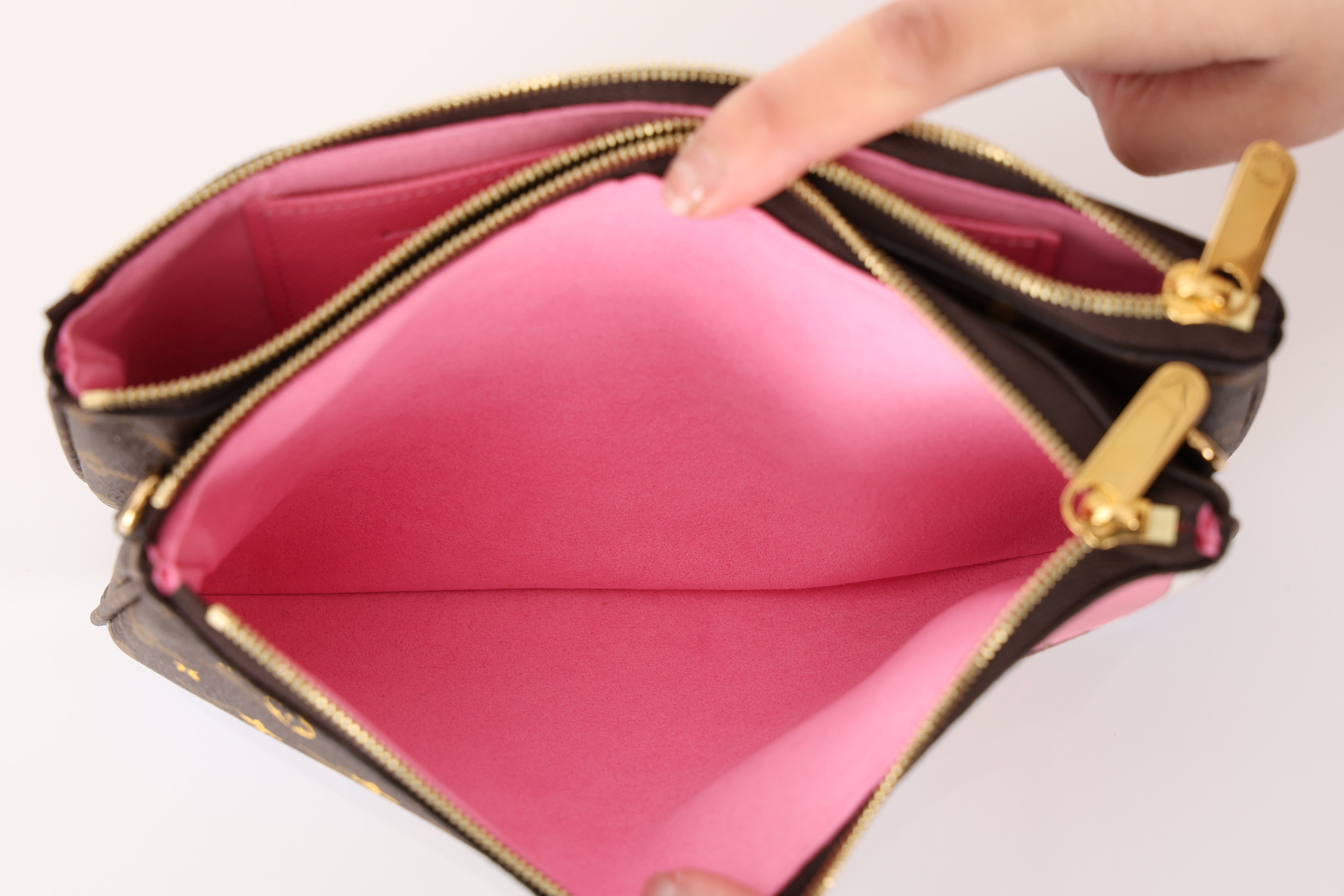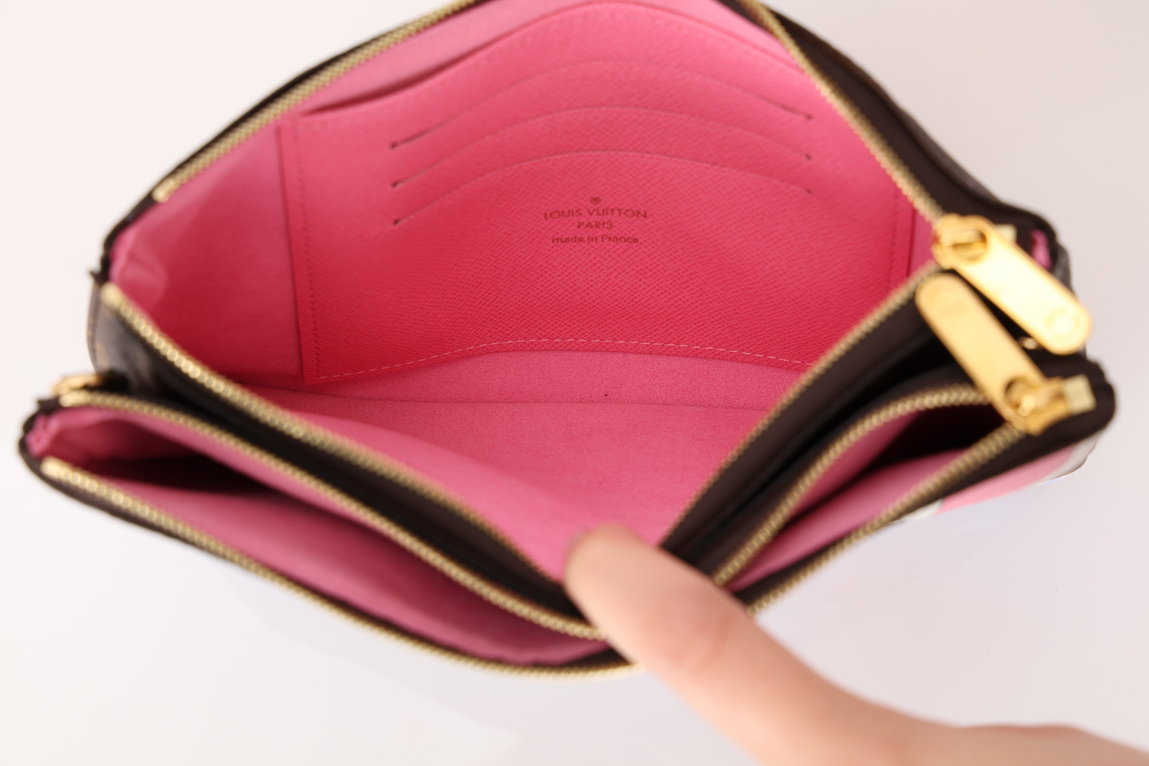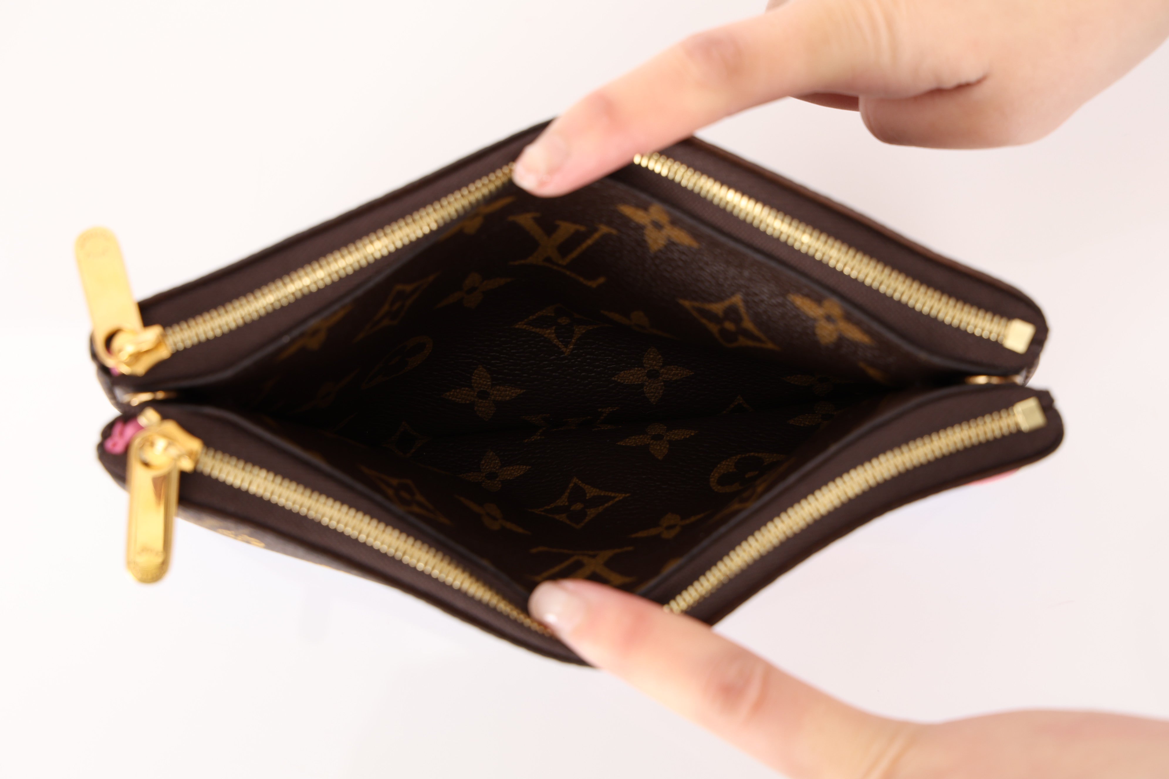 This fun double zip pochette with Vivienne animation on Monogram Canvas was part of the 2019 Limited Edition Holiday collection.