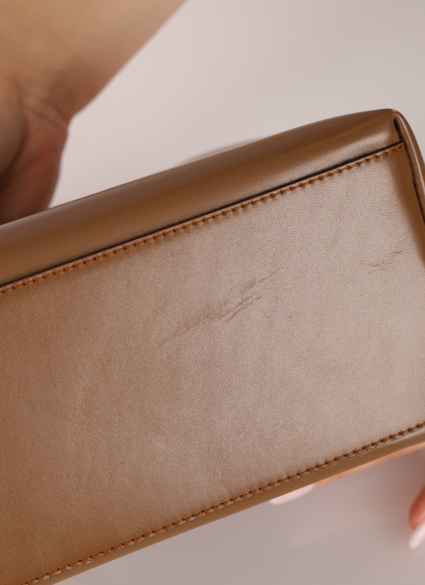 Hairline scratches on hardware. Normal wear throughout leather. Corner rubs.