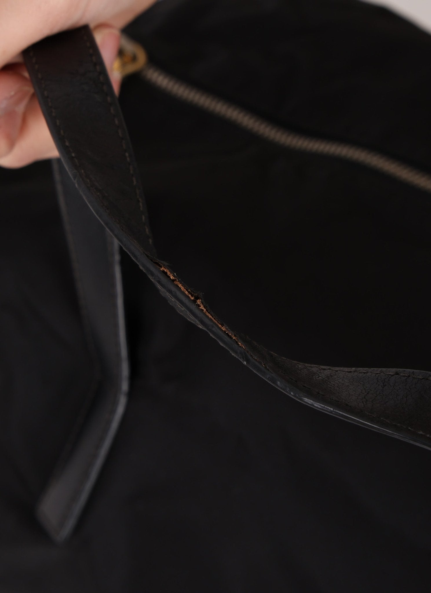 Light tarnishing on hardware. Normal wear on exterior. Light cracking under straps, does not effect integrity of handles.