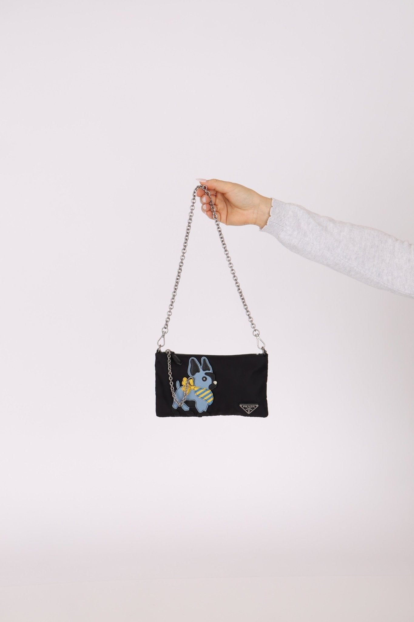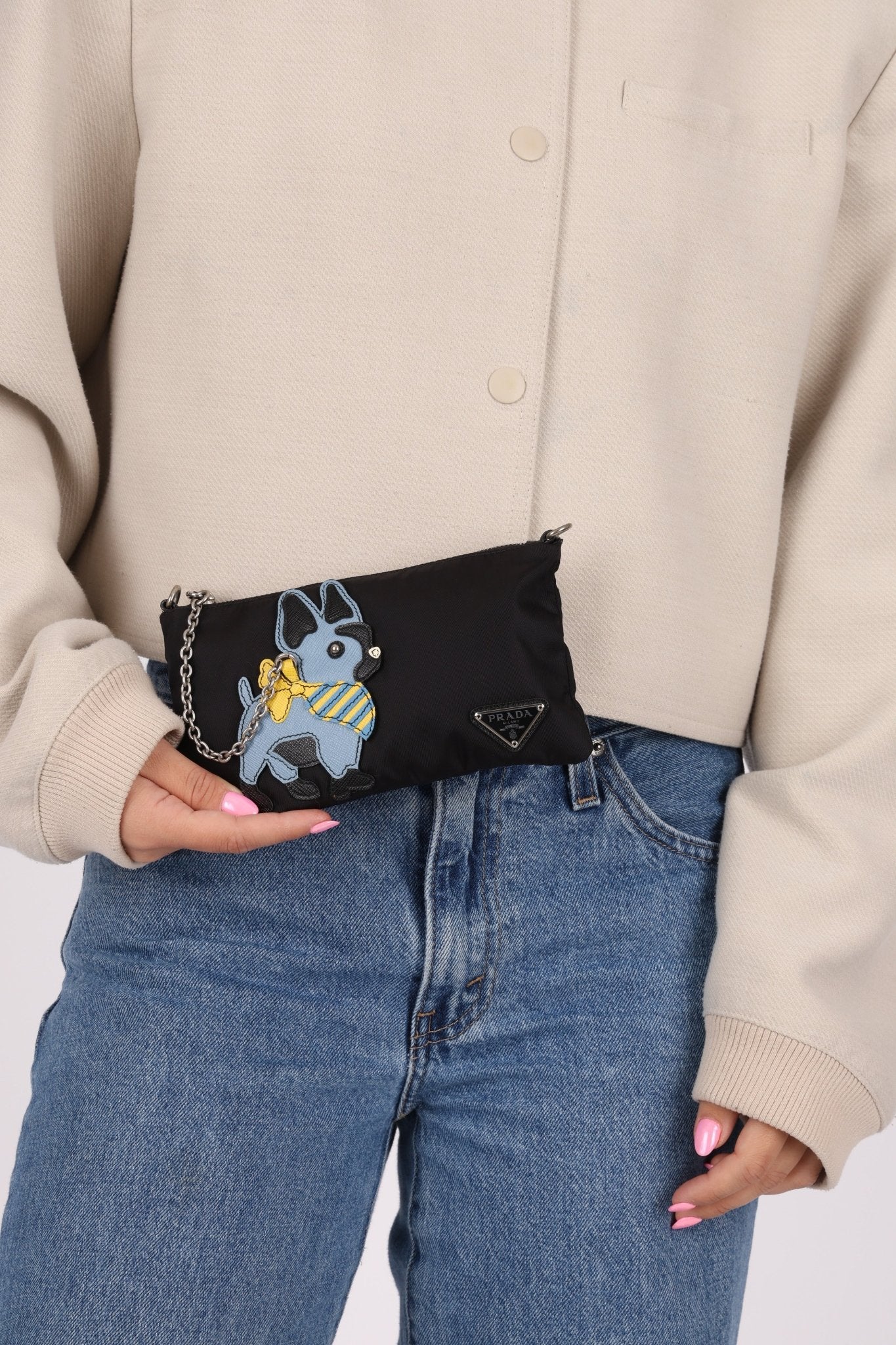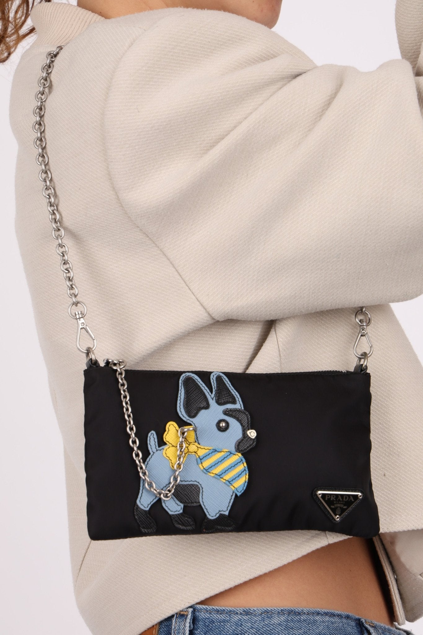 Prada Nylon French Bulldog Chain Pochette - FashioNica
